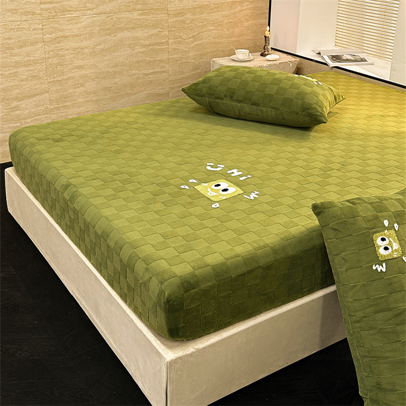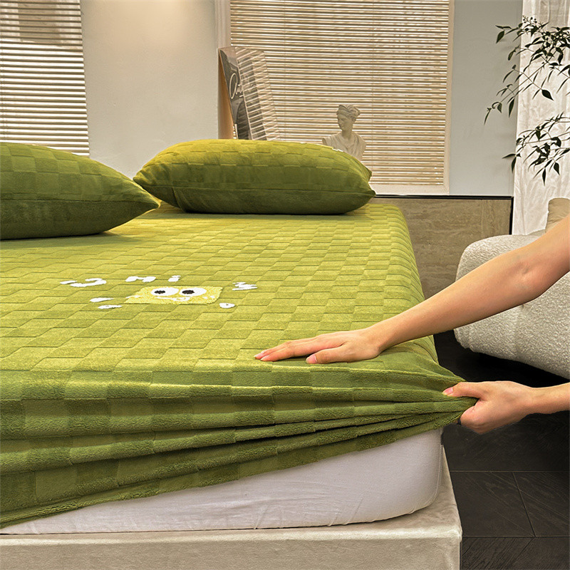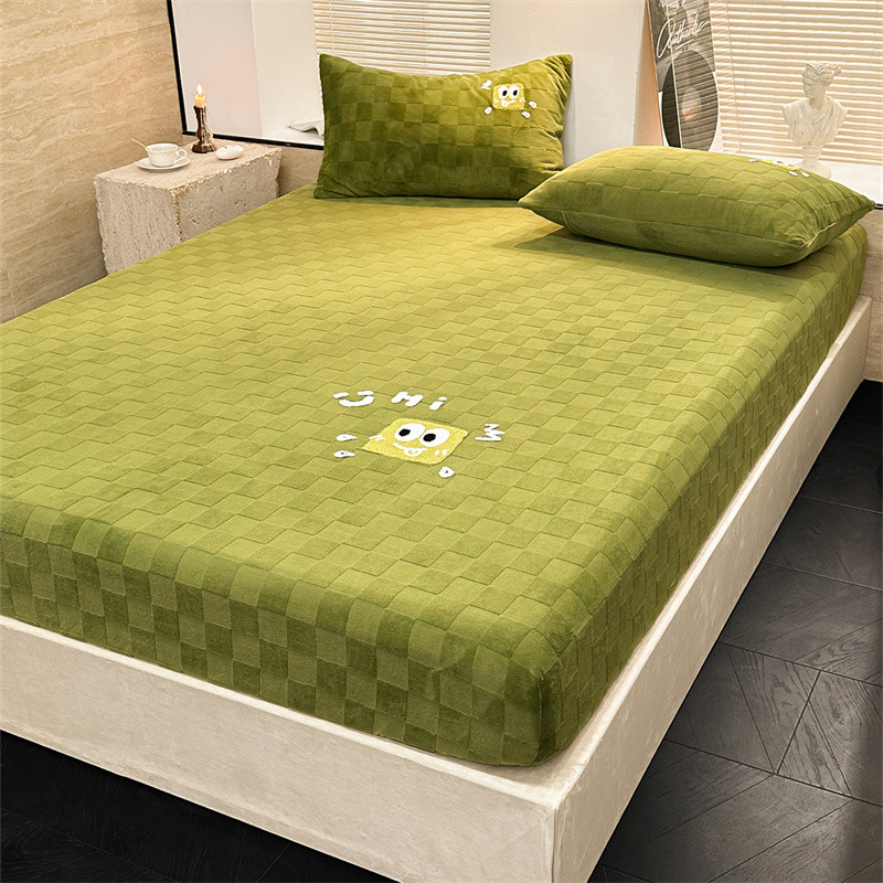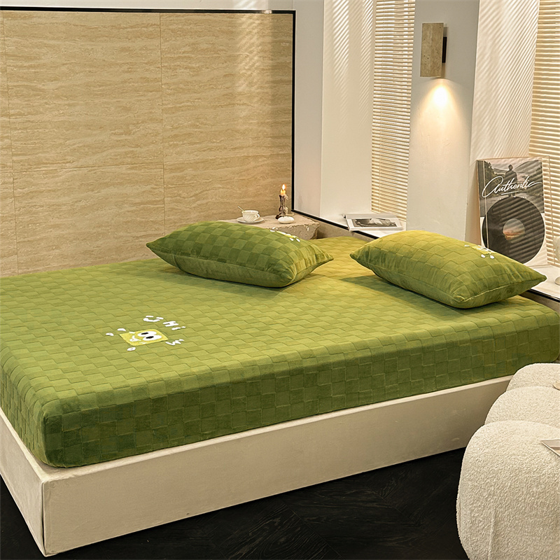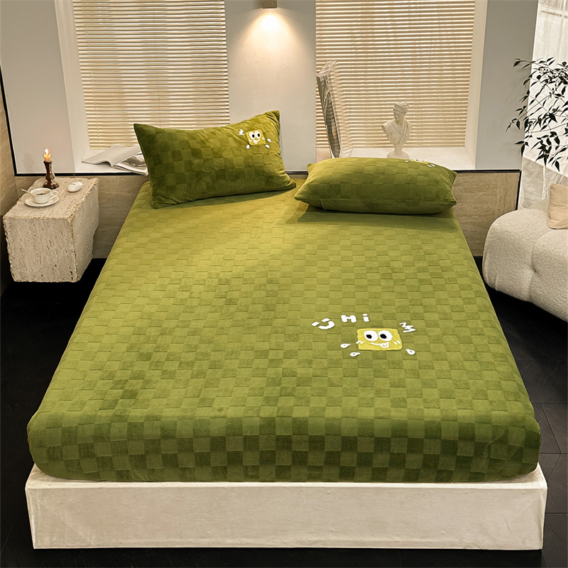 洋铭区(原狠狠爱)2023新款华夫格单品绒床笠 清格 绿