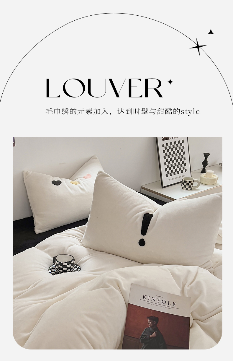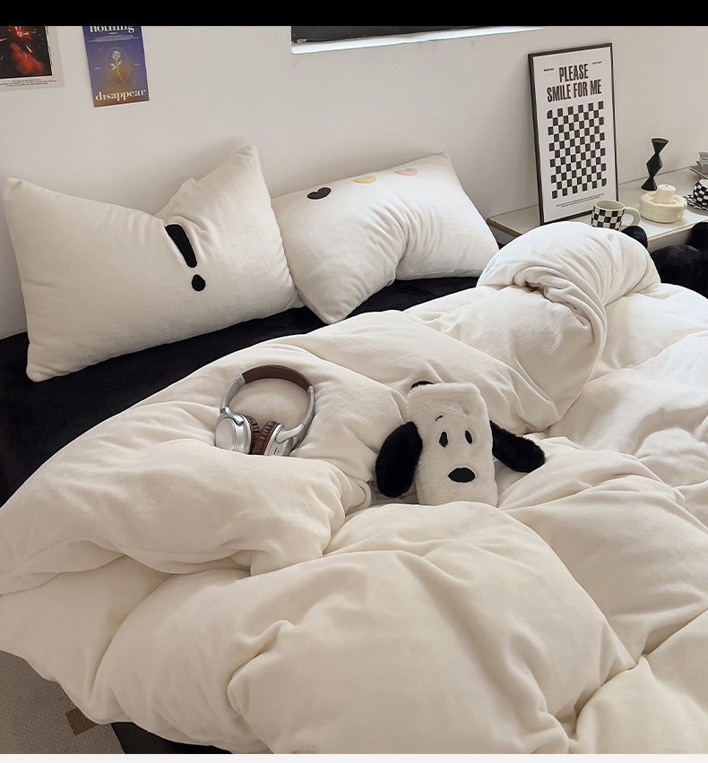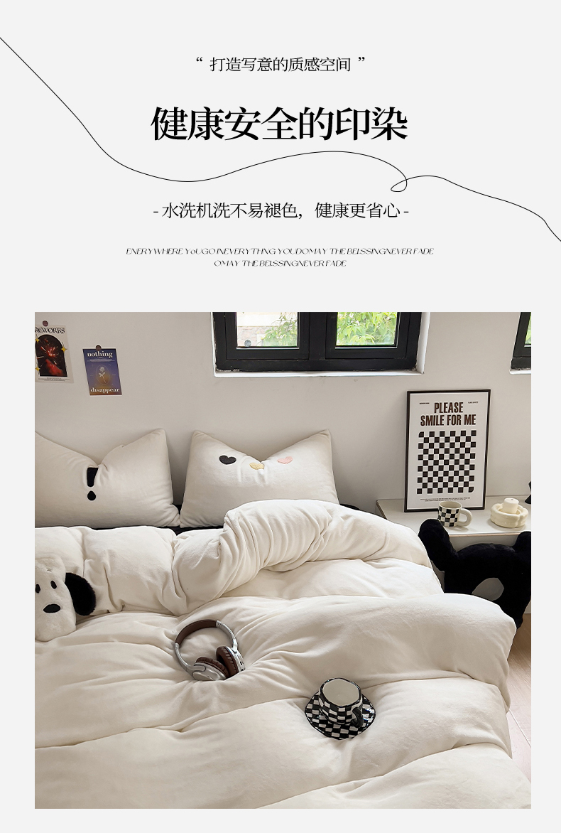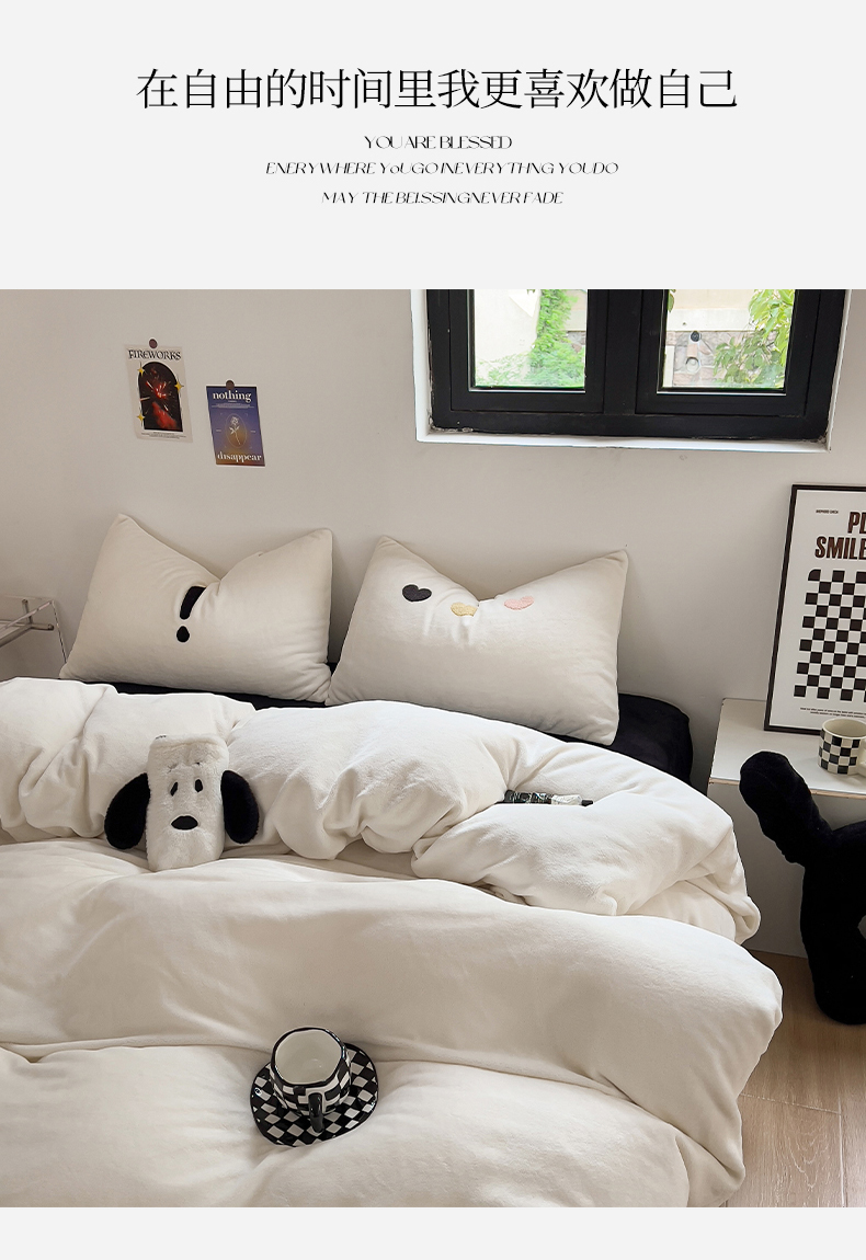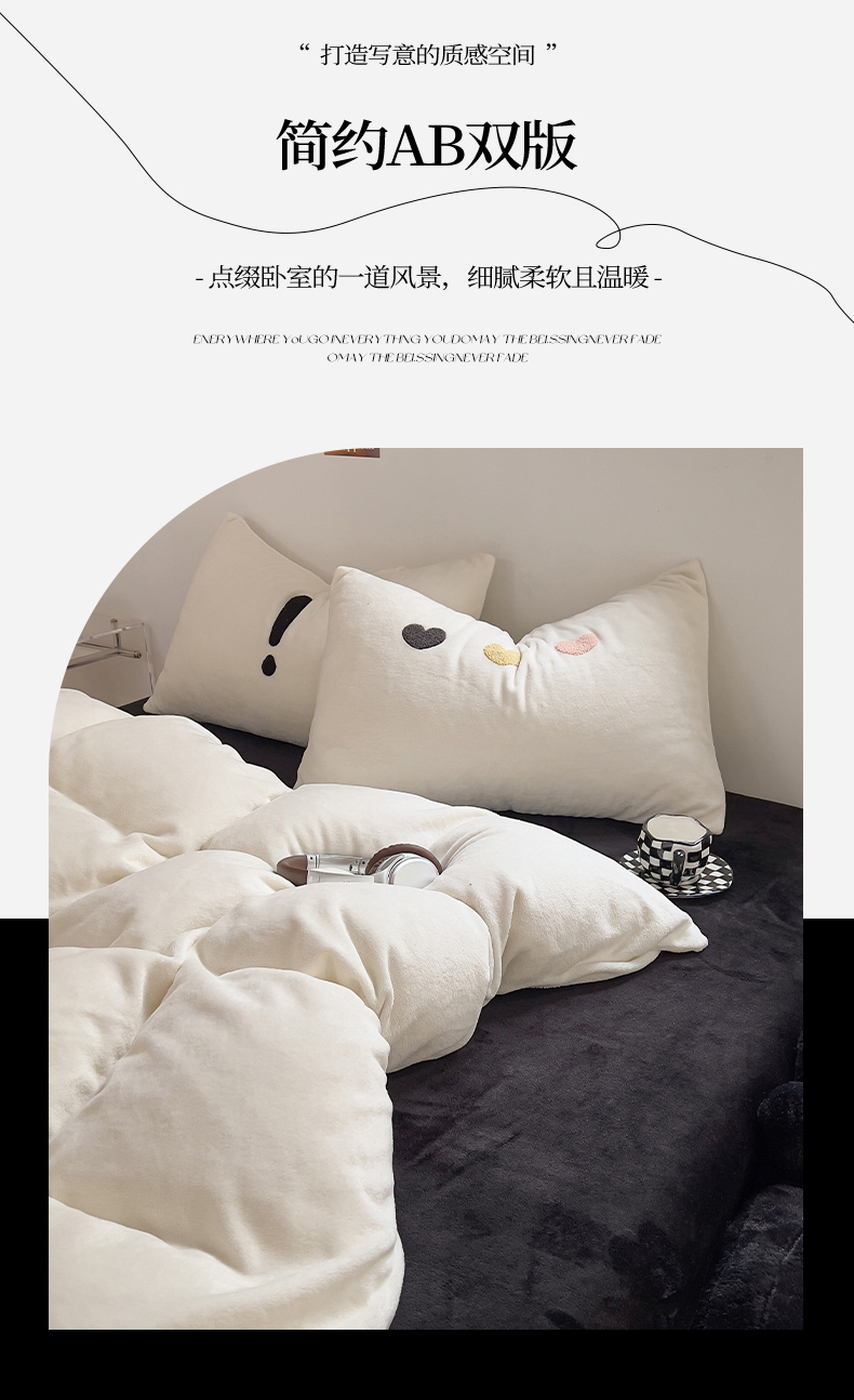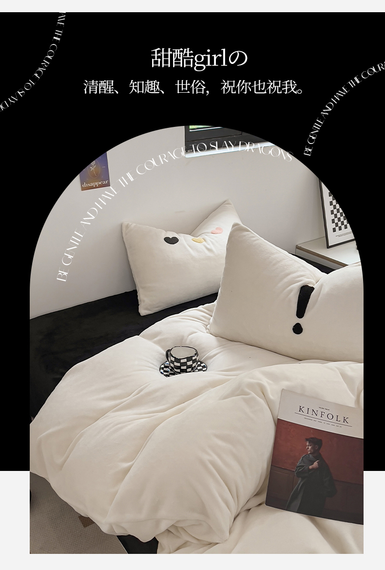 商品名称:山茶家纺 2023新款黑色系毛巾绣纯色牛奶绒四件套 黑色系-白黑