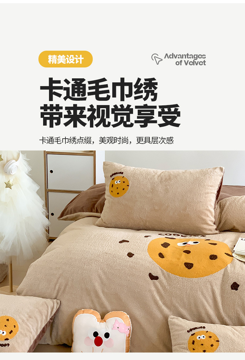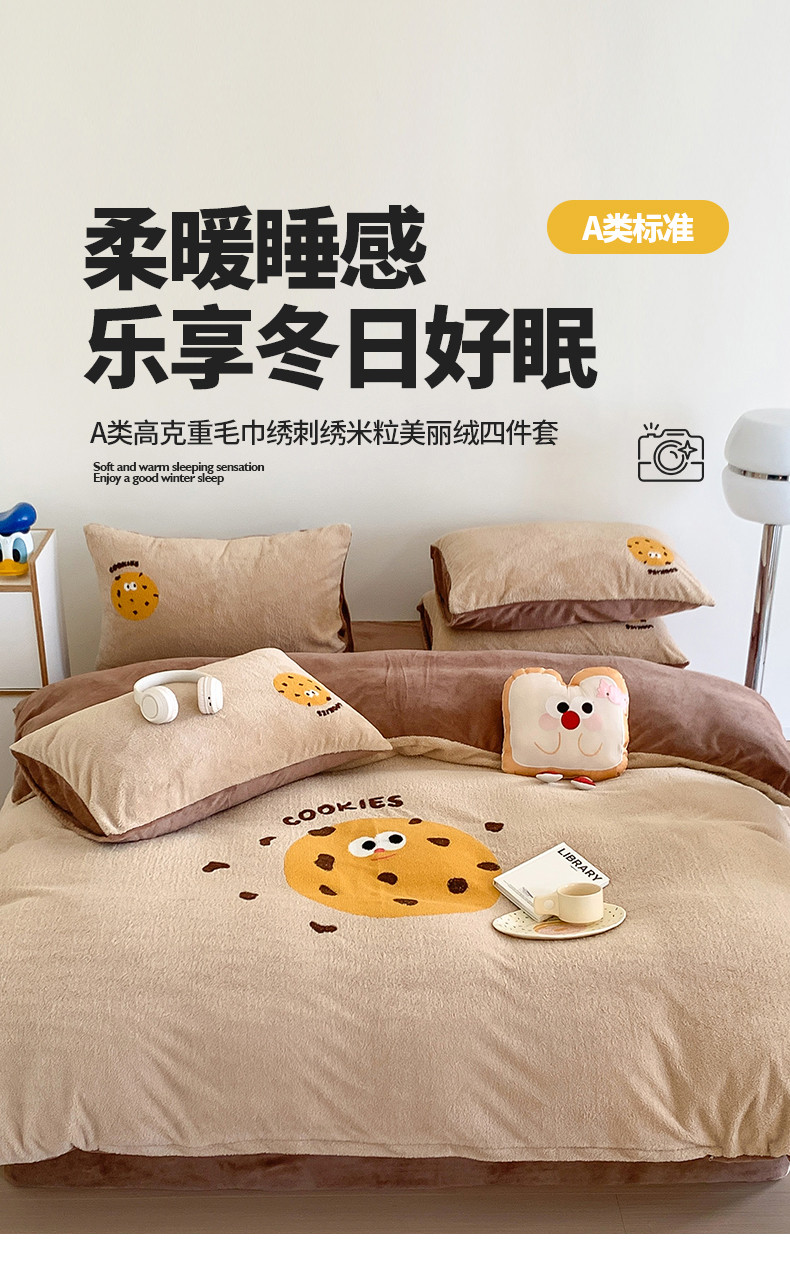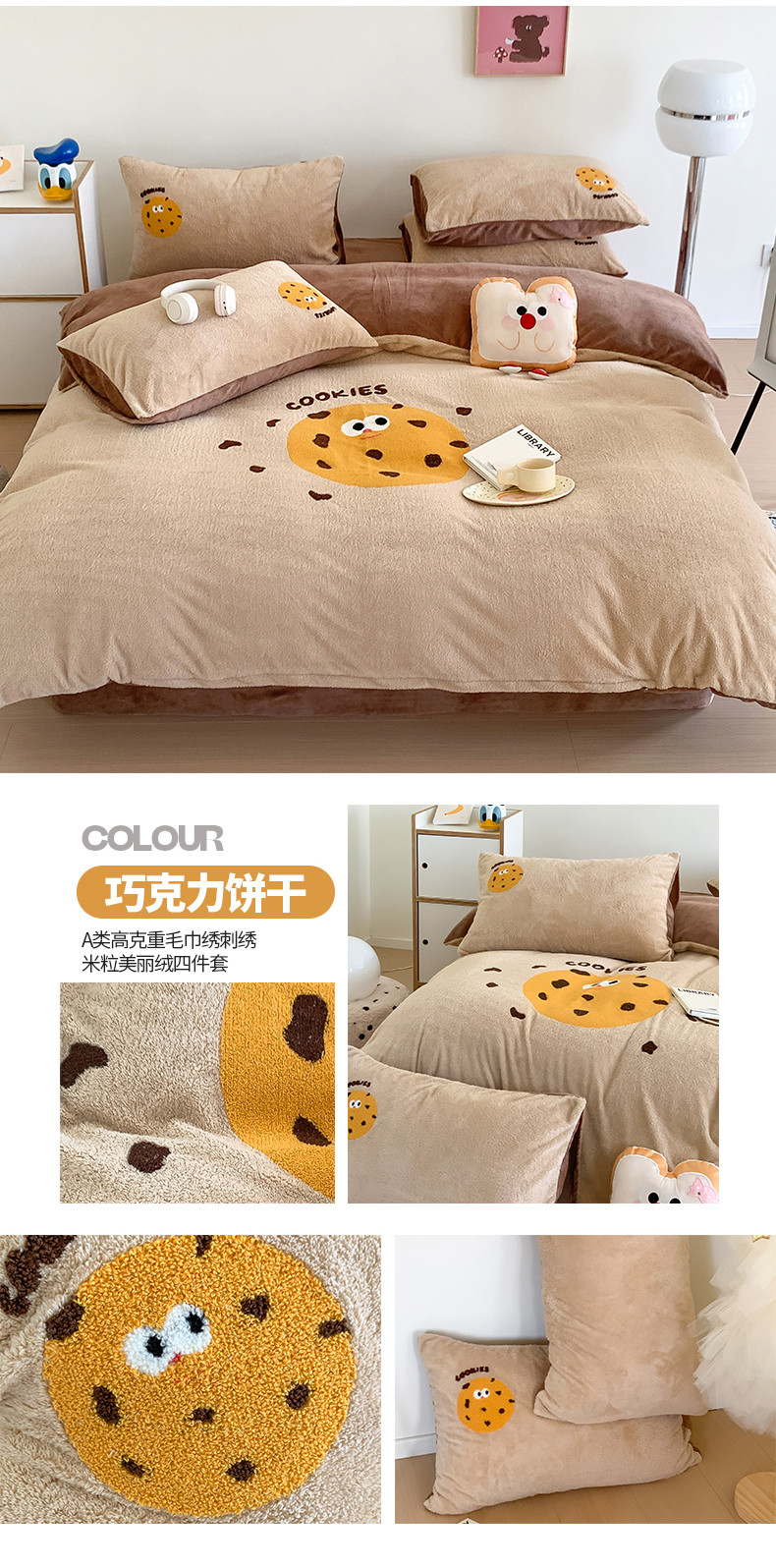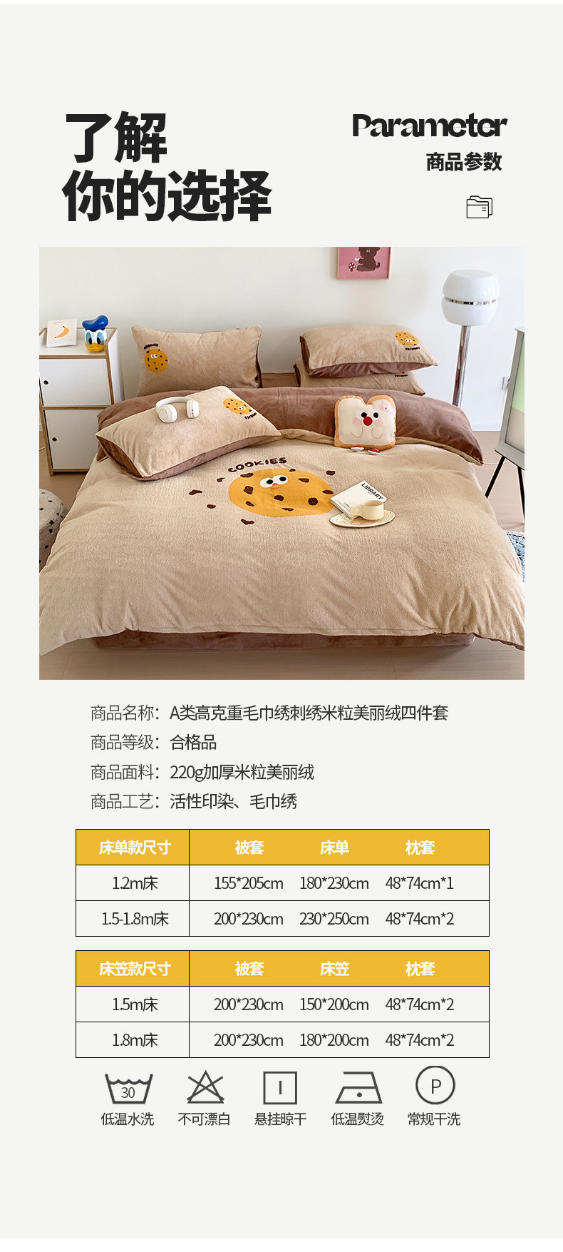 当前位置: 91家纺网 > 商品网购 > 床品套件 > 四件套 > 毛巾绣四件套 > 桃子家居 2023新款A类高克重毛巾绣刺绣米粒美丽绒牛奶绒四件套 绒毛巾绣-巧克力饼干