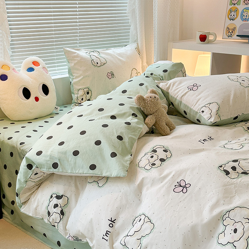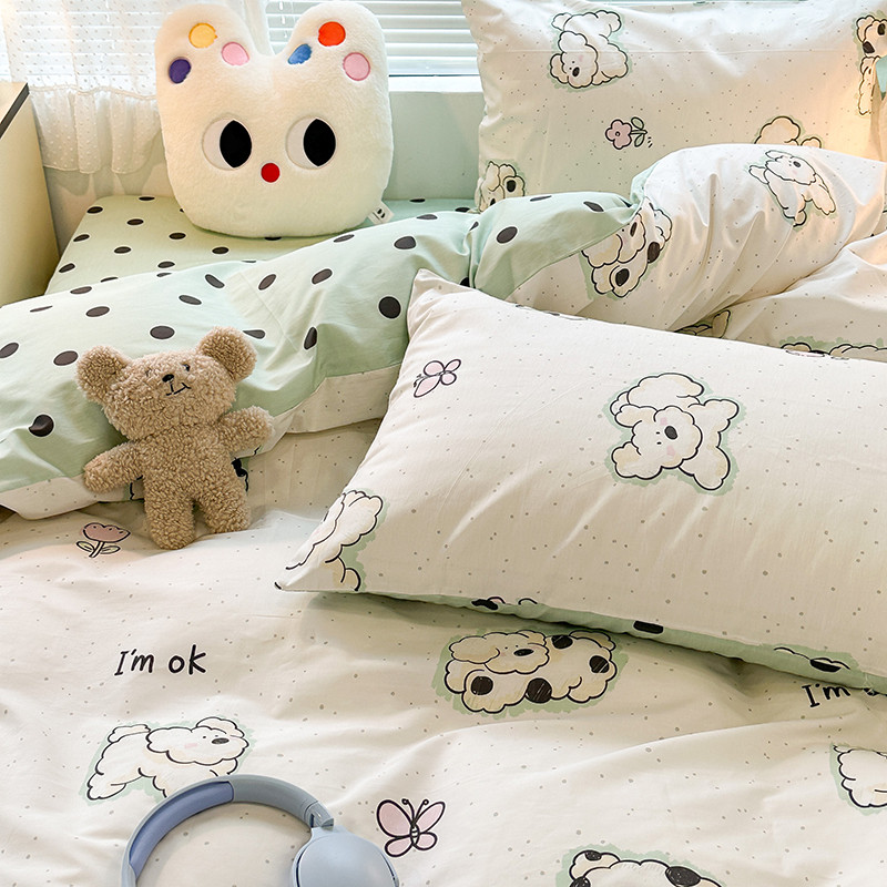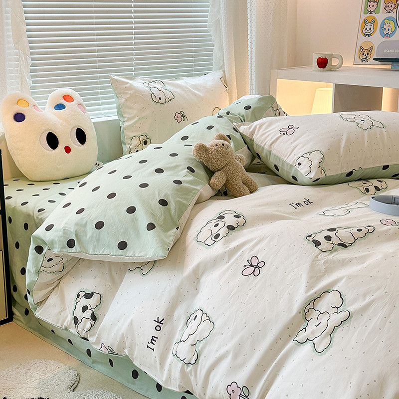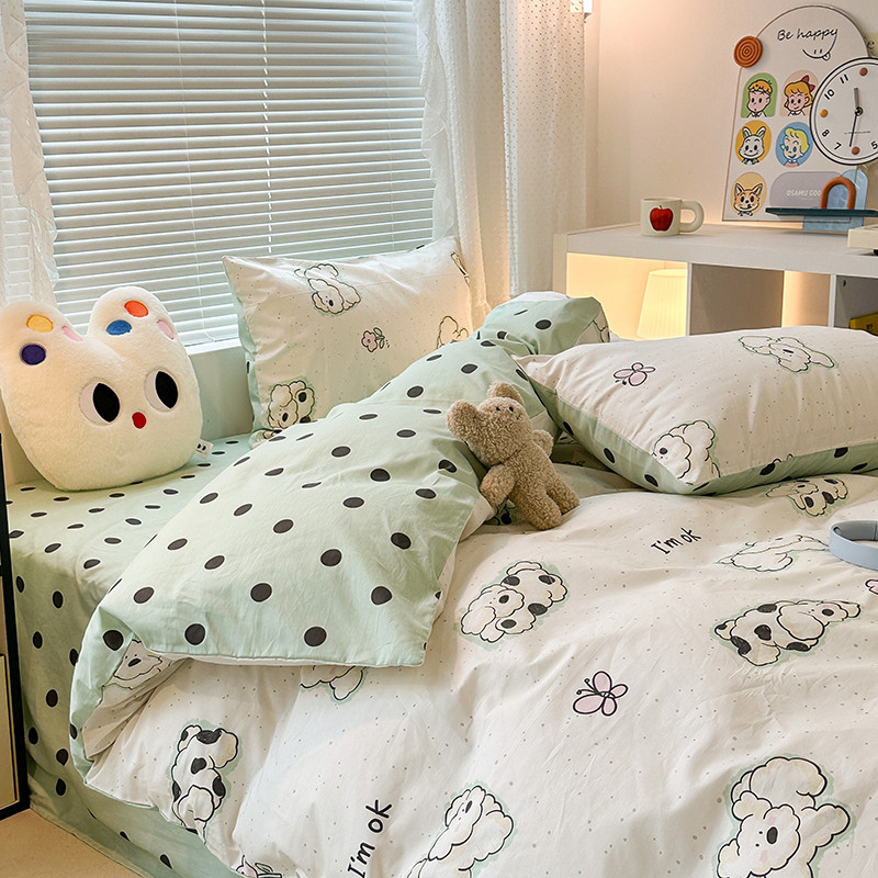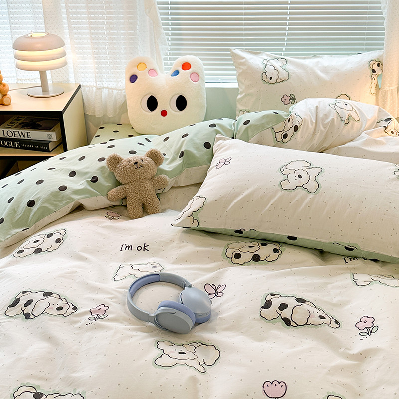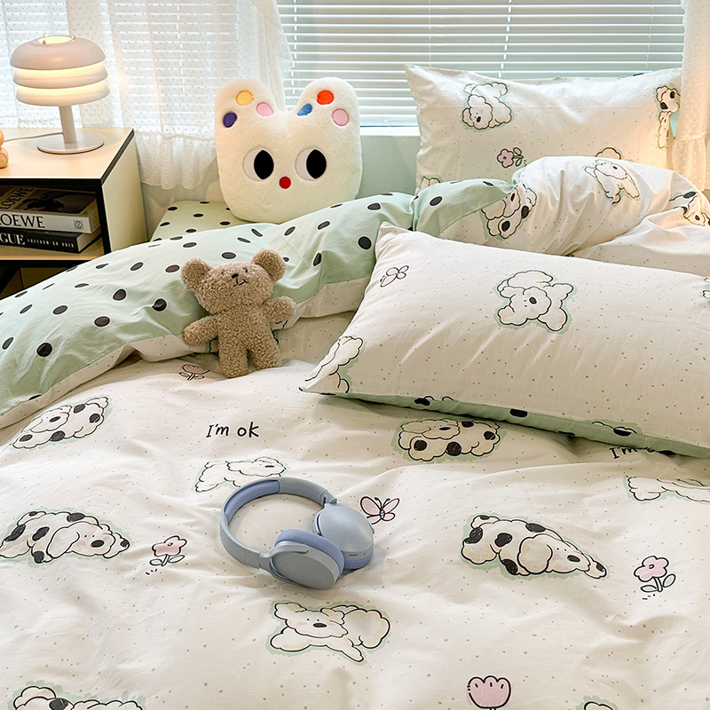 昔可 2023新款全棉萌趣卡通四件套 斑点郁金香狗狗