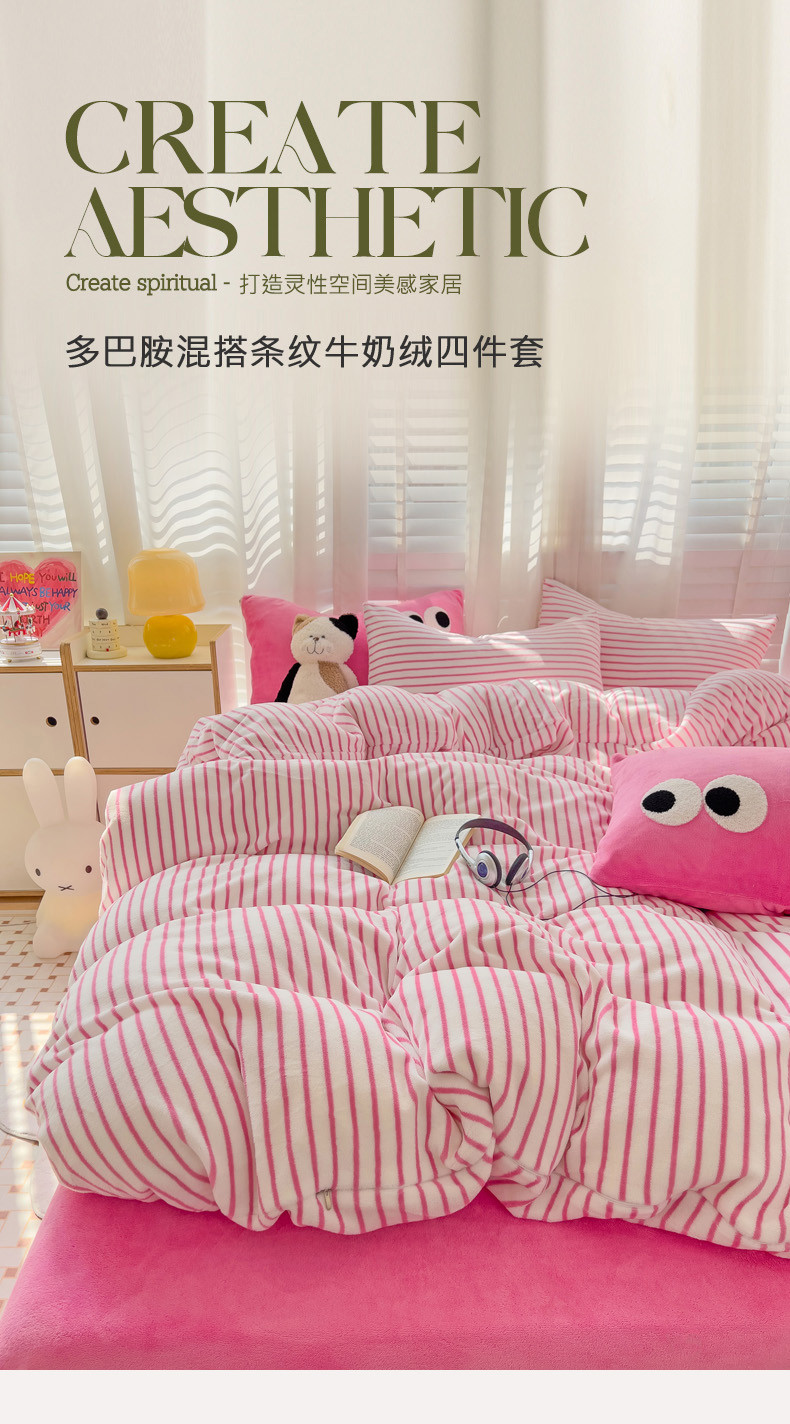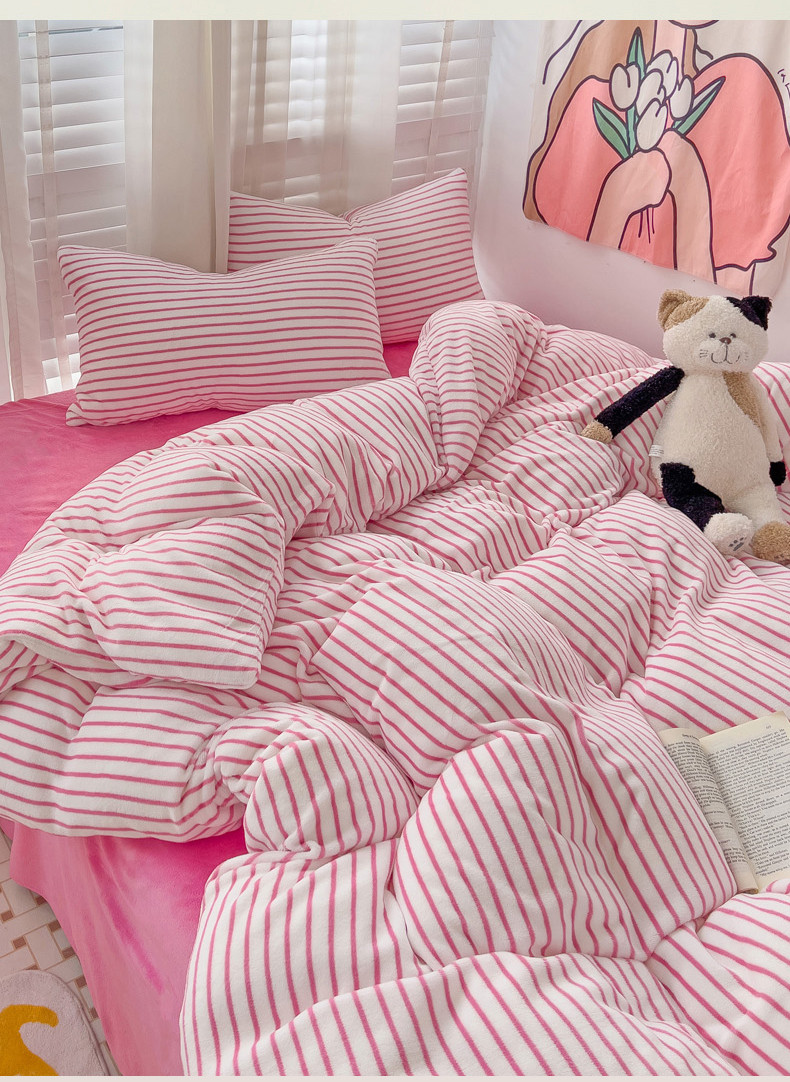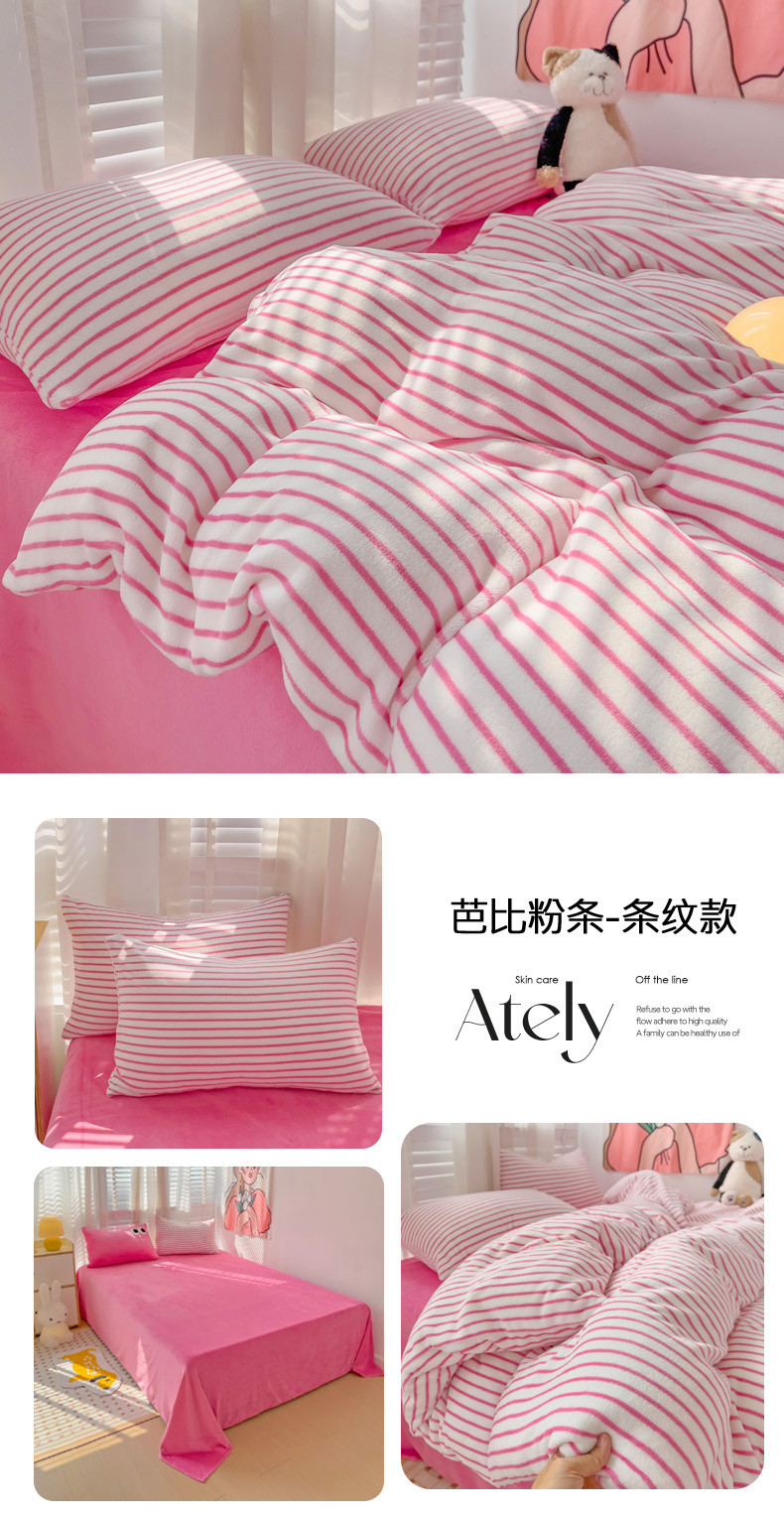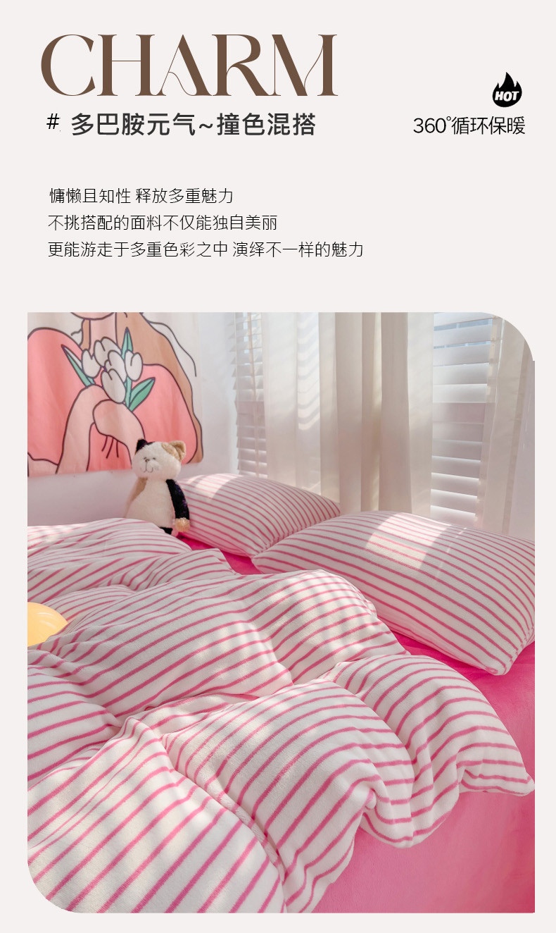 当前位置: 91家纺网 > 商品网购 > 床品套件 > 四件套 > 牛奶绒四件套 > 丽涵 2024秋冬新品牛奶绒博主风多巴胺条纹混搭保暖四件套 芭比粉条-条纹款