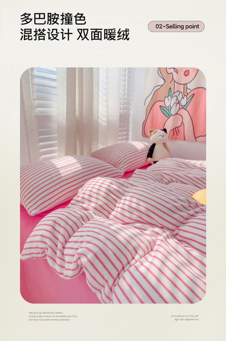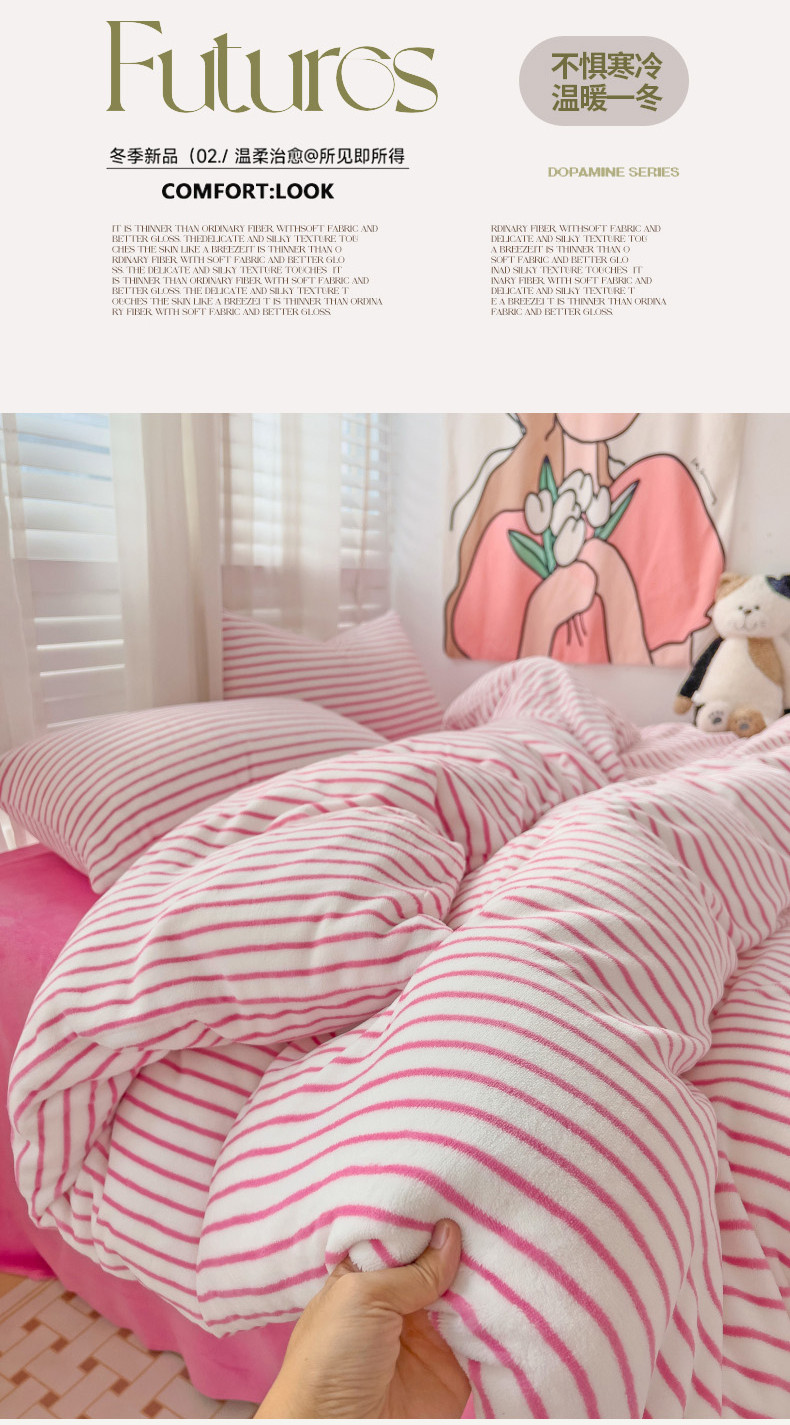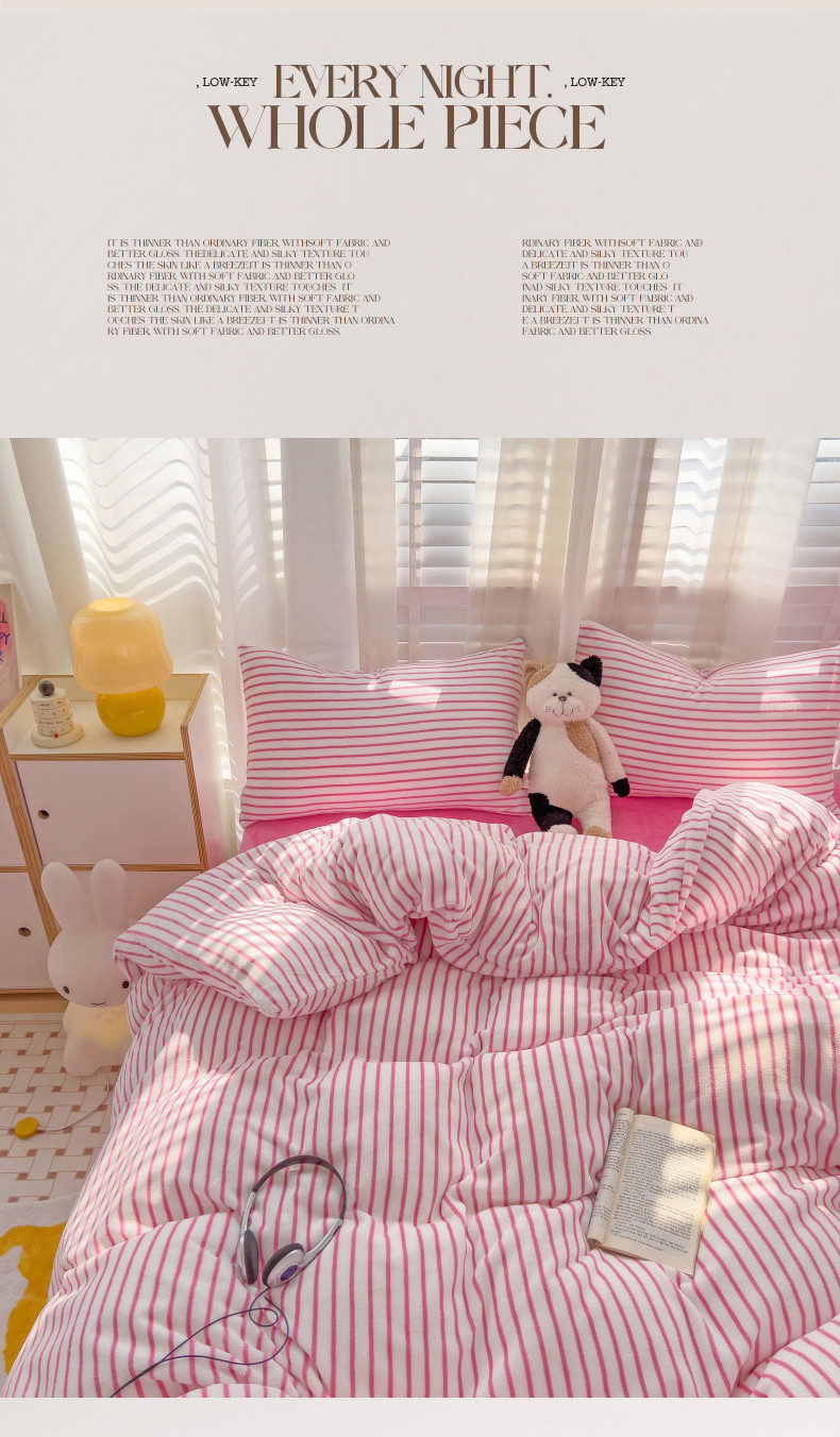 当前位置: 91家纺网 > 商品网购 > 床品套件 > 四件套 > 牛奶绒四件套 > 丽涵 2024秋冬新品牛奶绒博主风多巴胺条纹混搭保暖四件套 芭比粉条-条纹款