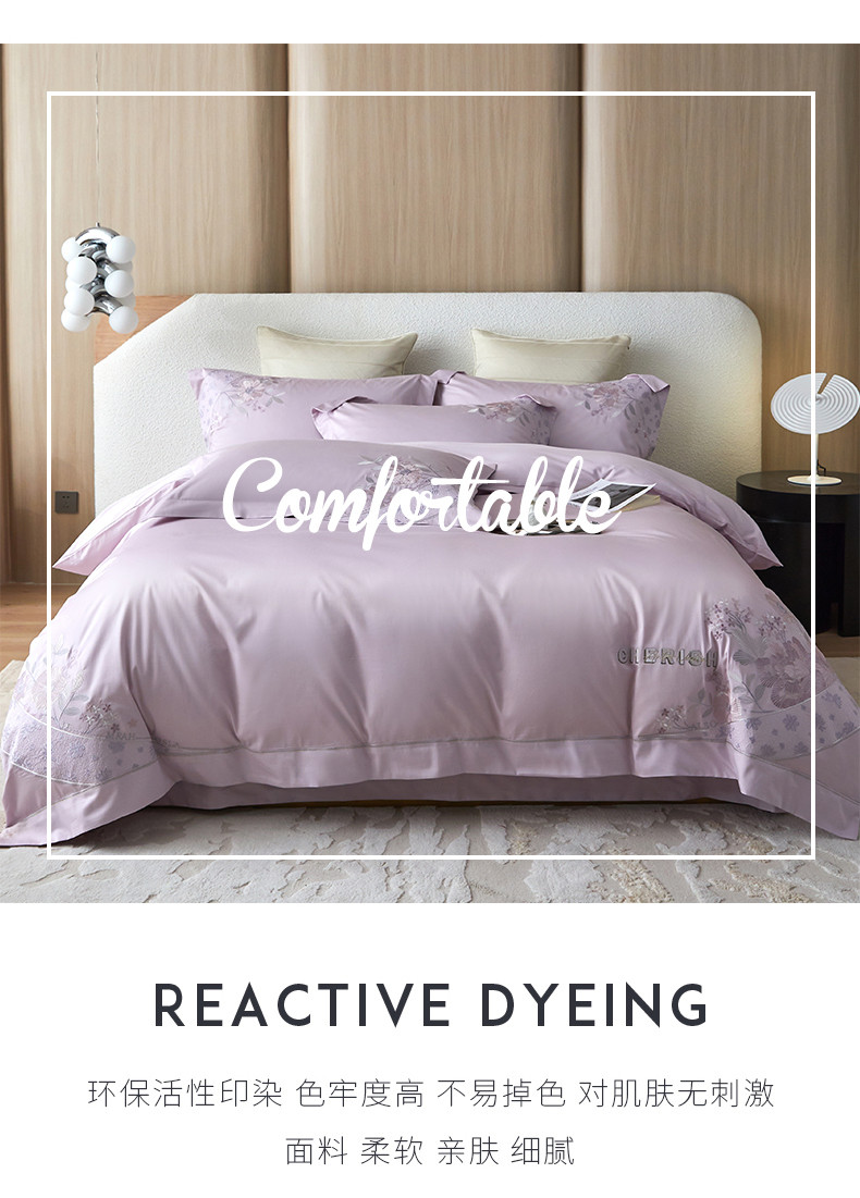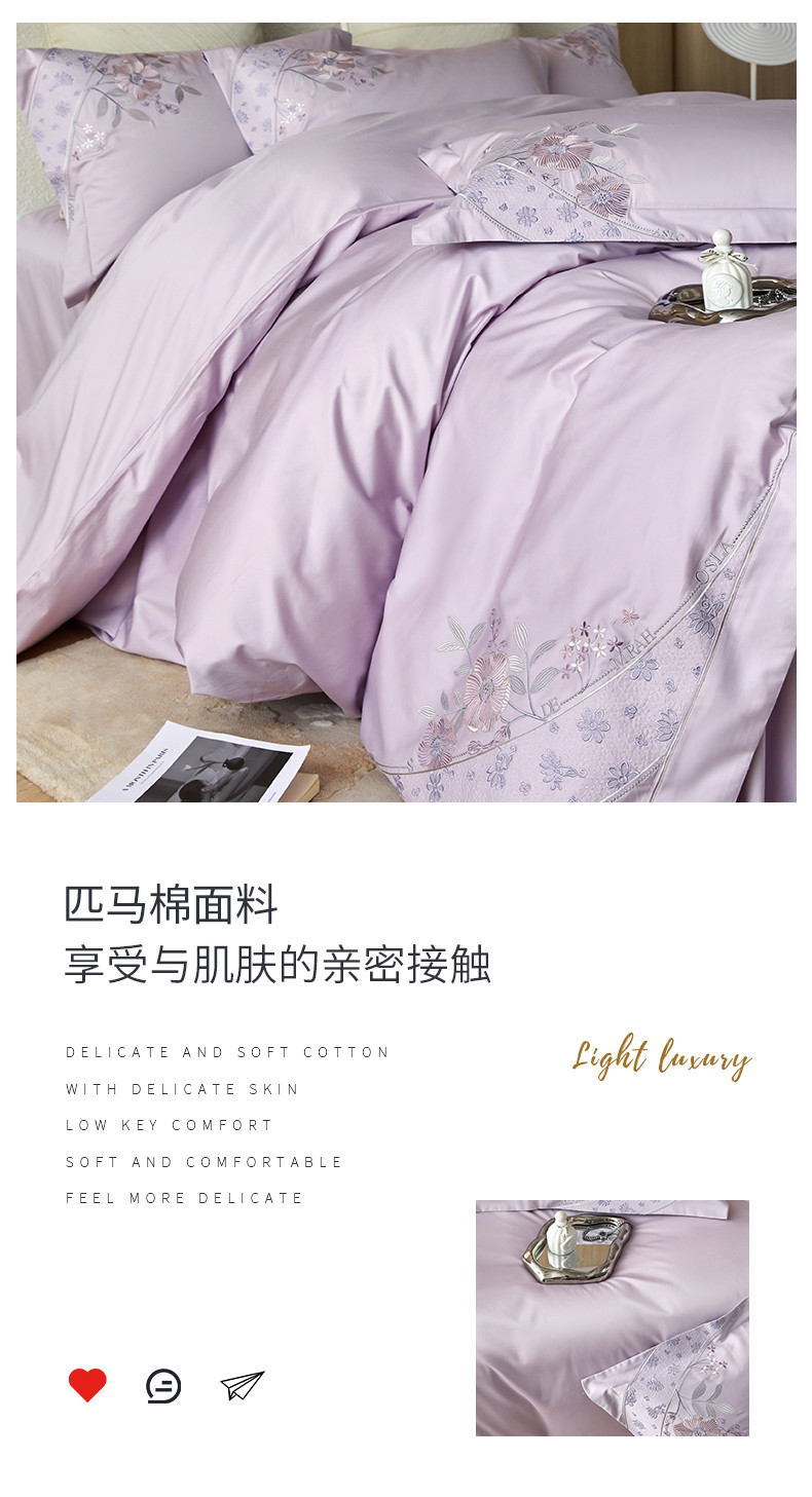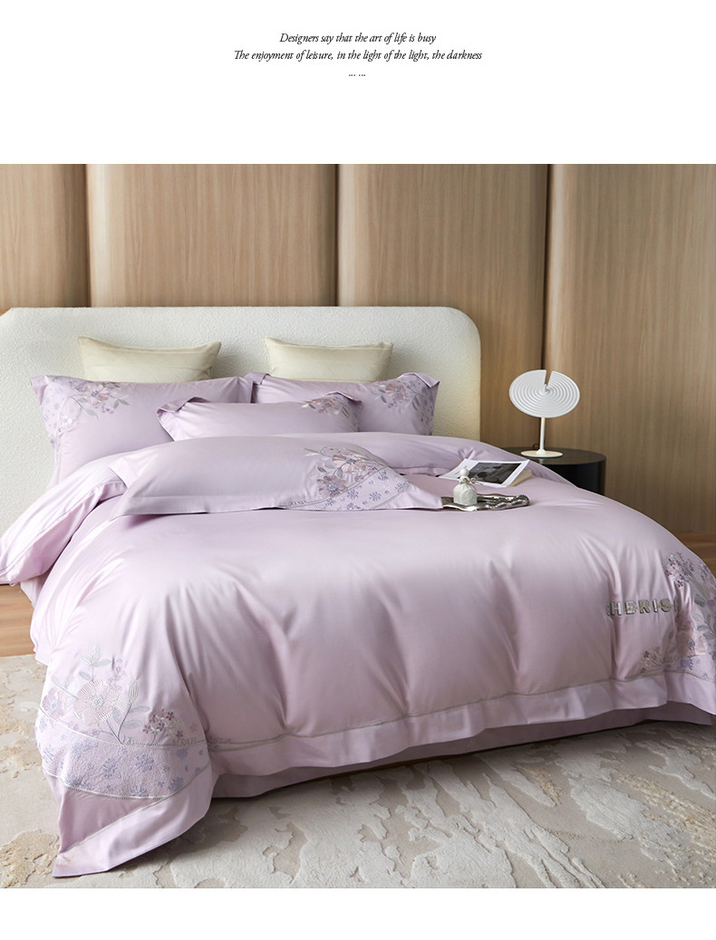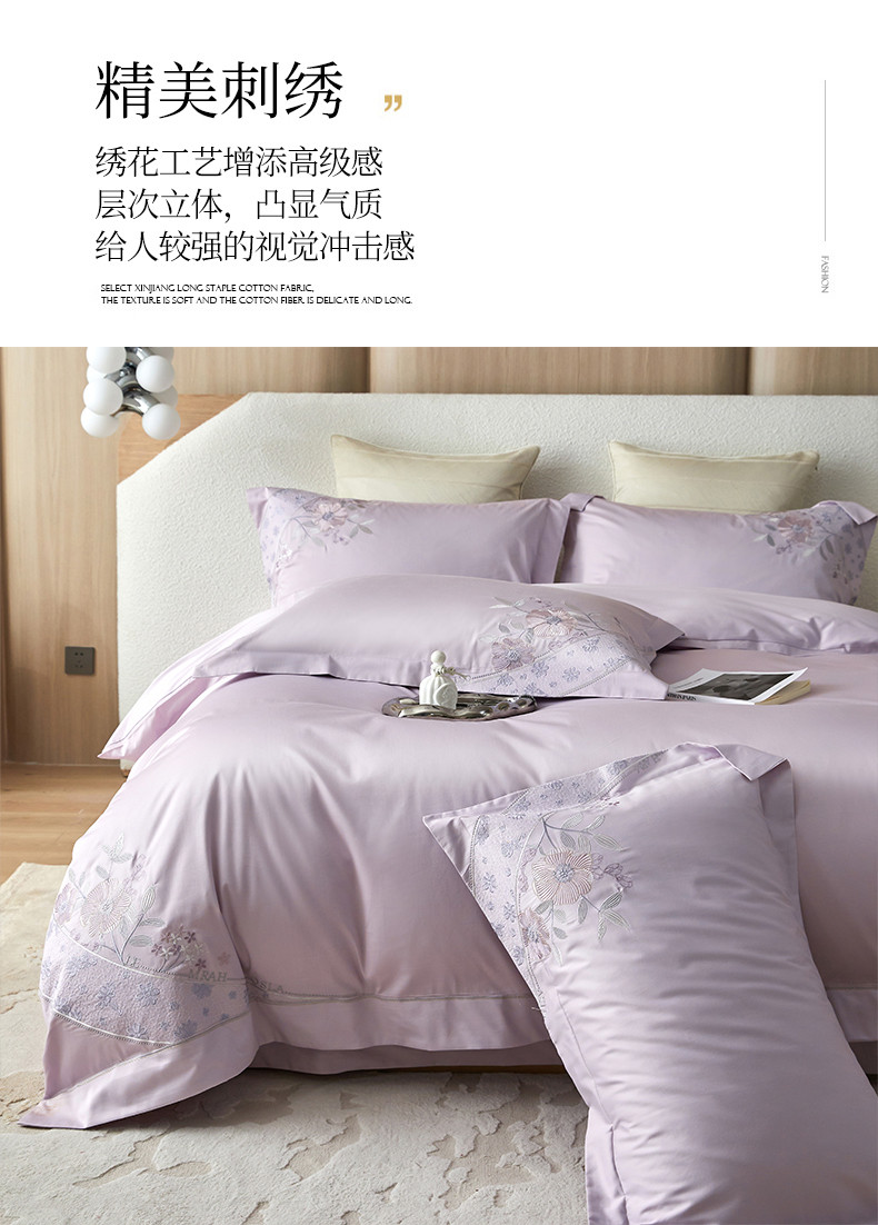 宏羽纺 2023新款高支高密全棉绣花四件套--花间意境 海葵紫