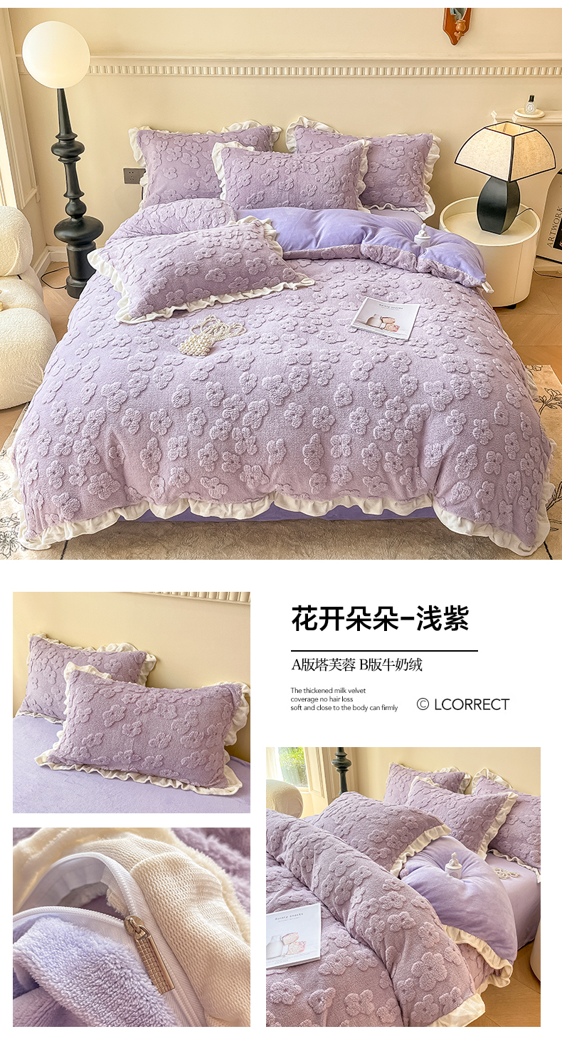 沐辰 2023新款塔芙绒提花四件套-花开朵朵 花开朵朵-浅紫