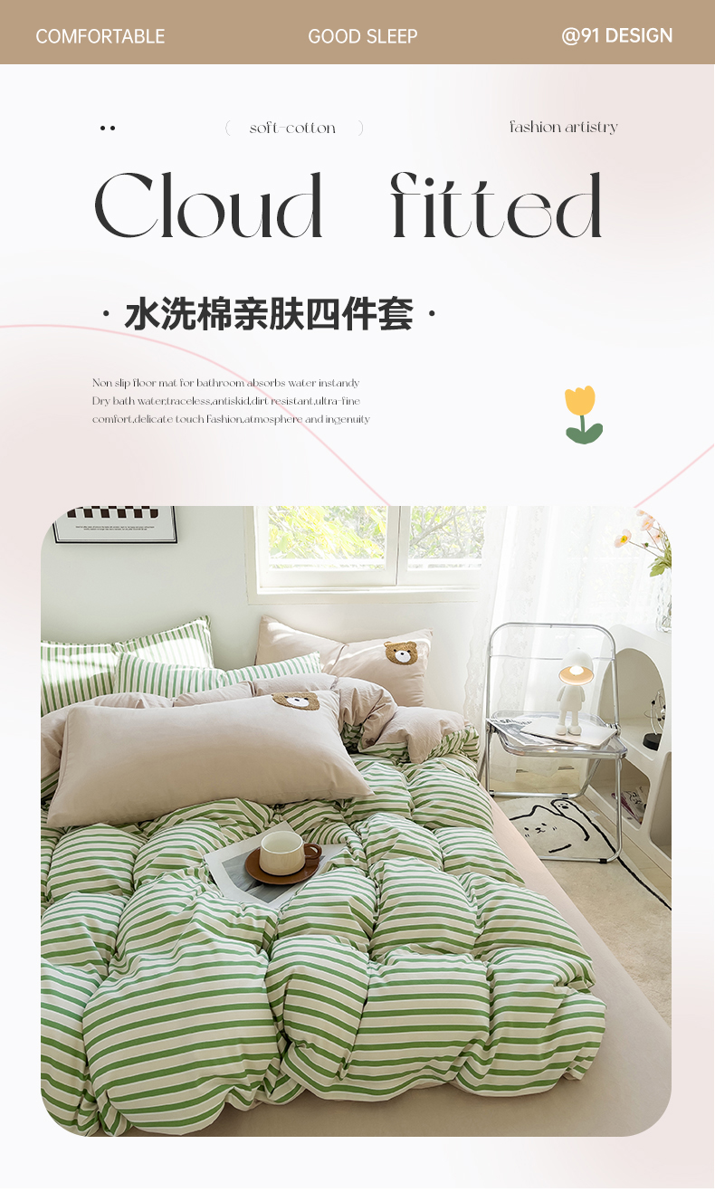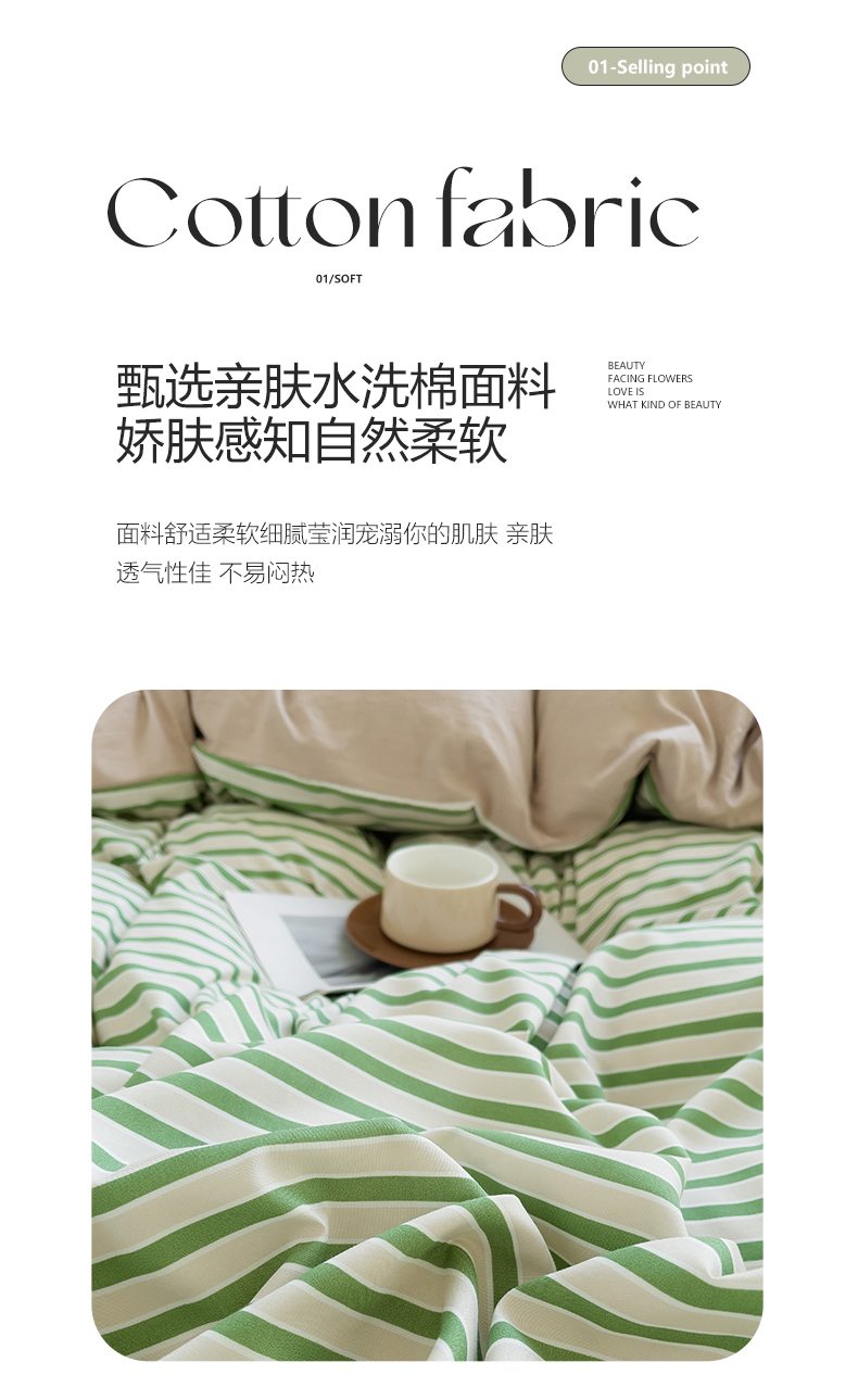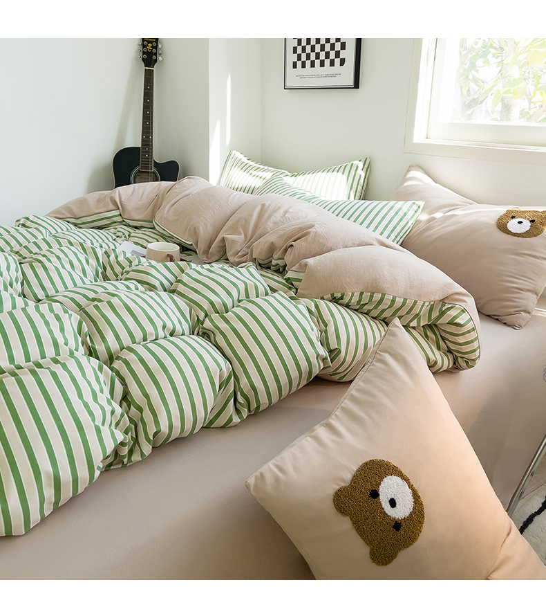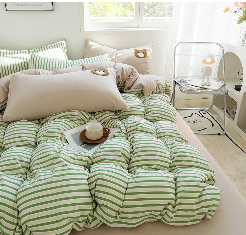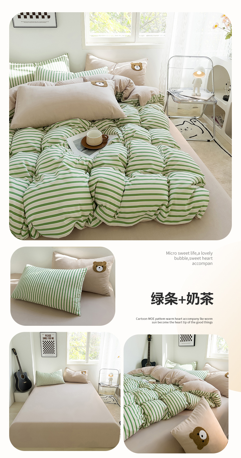 当前位置: 91家纺网 > 商品网购 > 床品套件 > 四件套 > 水洗棉四件套 > 梦嘉居 2024新款 直播热款A类ins风超柔亲肤磨毛水洗棉条纹毛巾绣被套,床笠,三件套四件套 绿条+奶茶