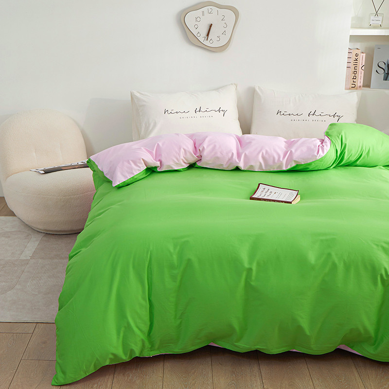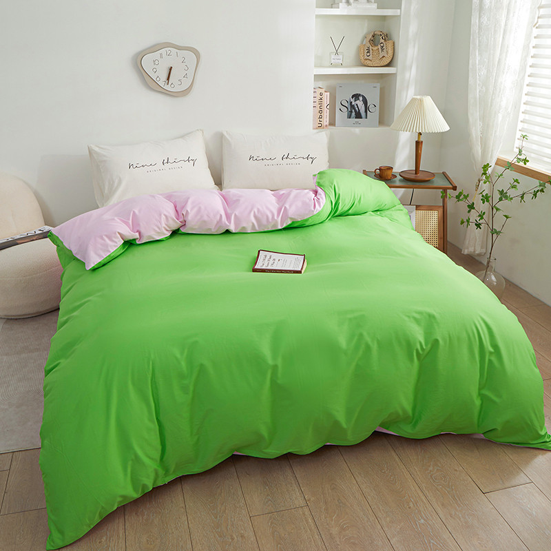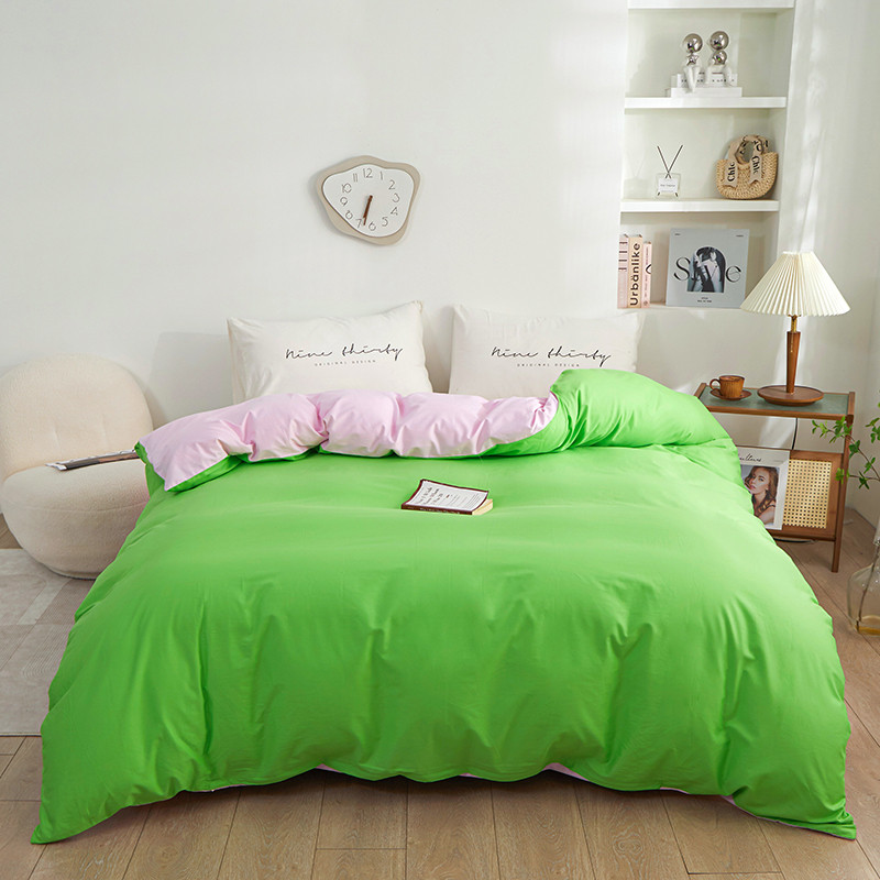 商品名称:钰伶 2025新款纯色被套13372斜纹喷气纯棉单品被套 荧光绿浅粉