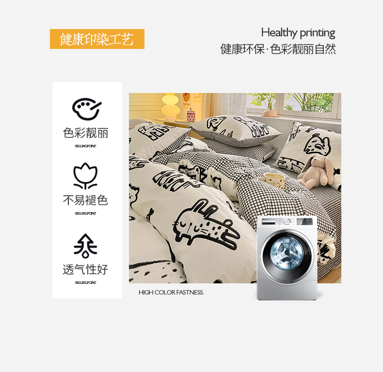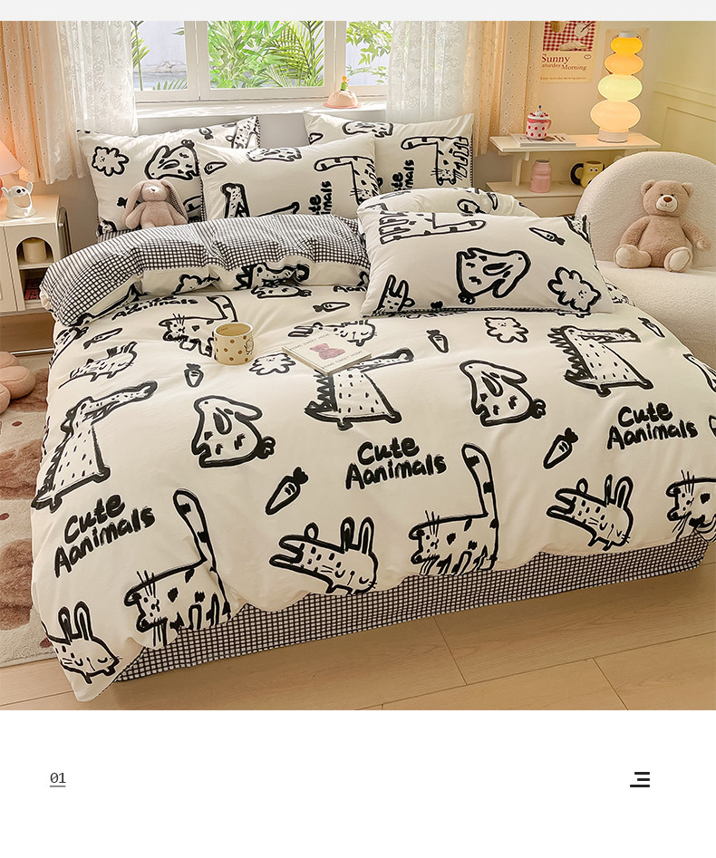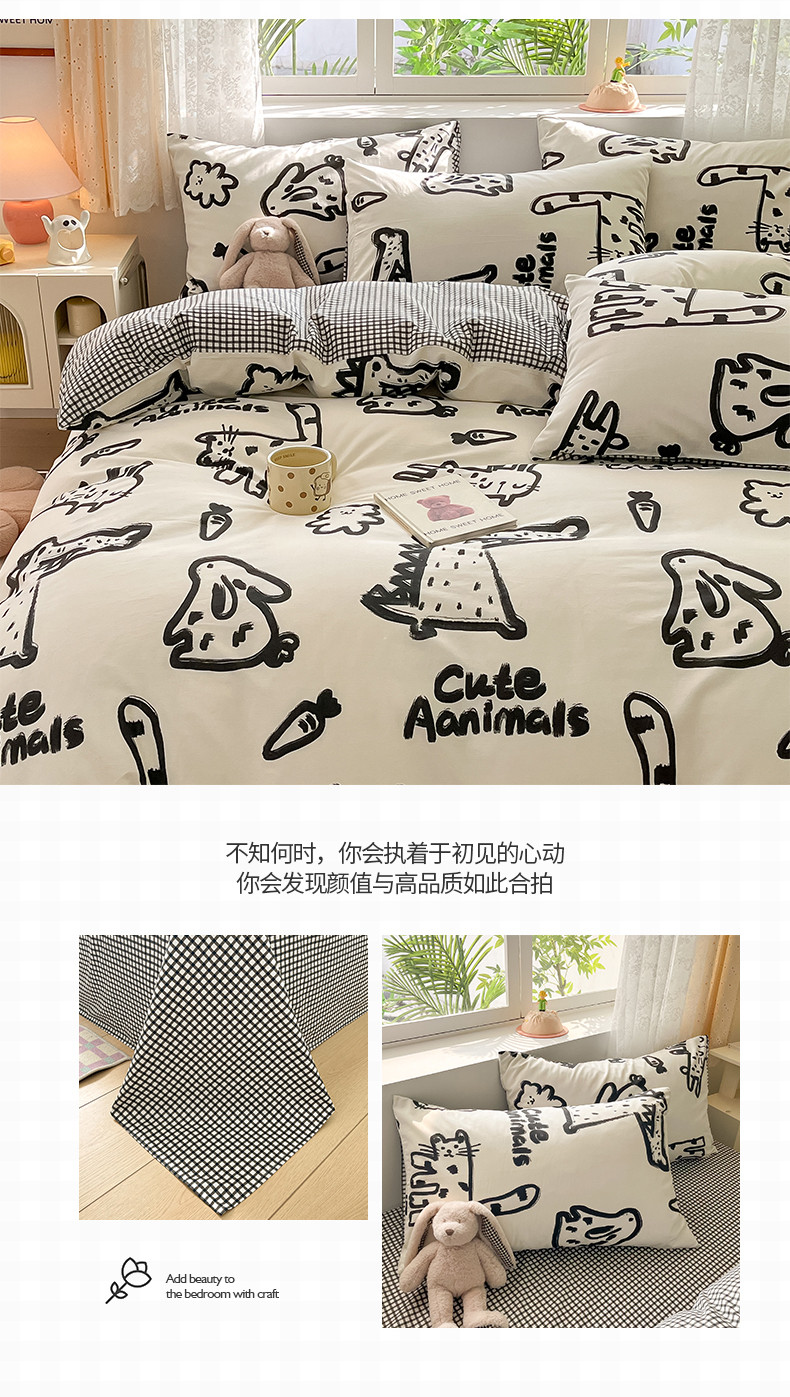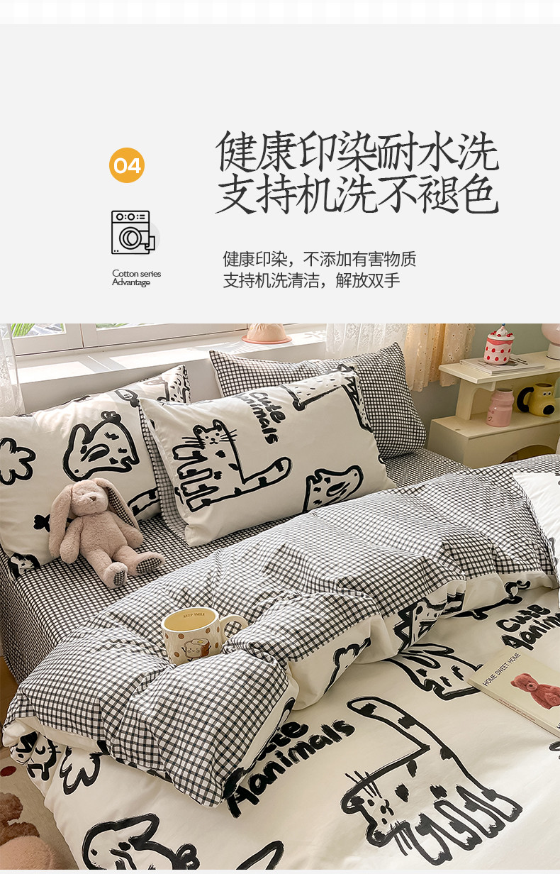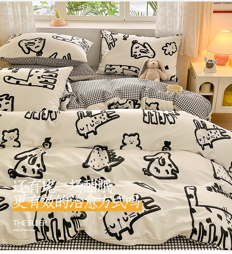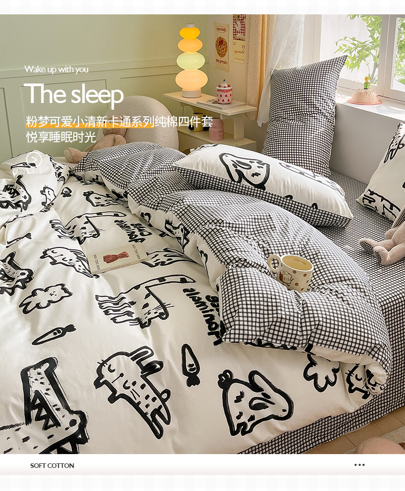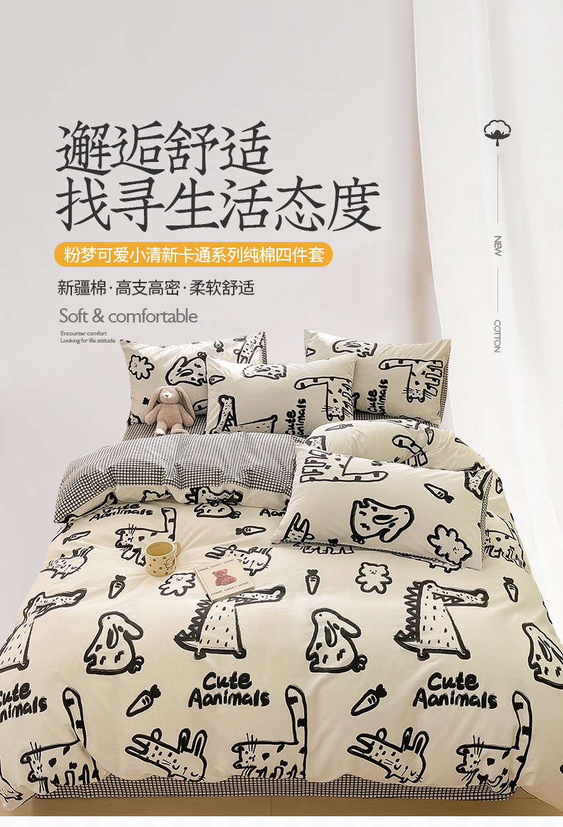 商品名称:桃子家居 2024新款纯棉13372粉梦可爱小清新卡通系列四件套 棉-小涂鸦乐园