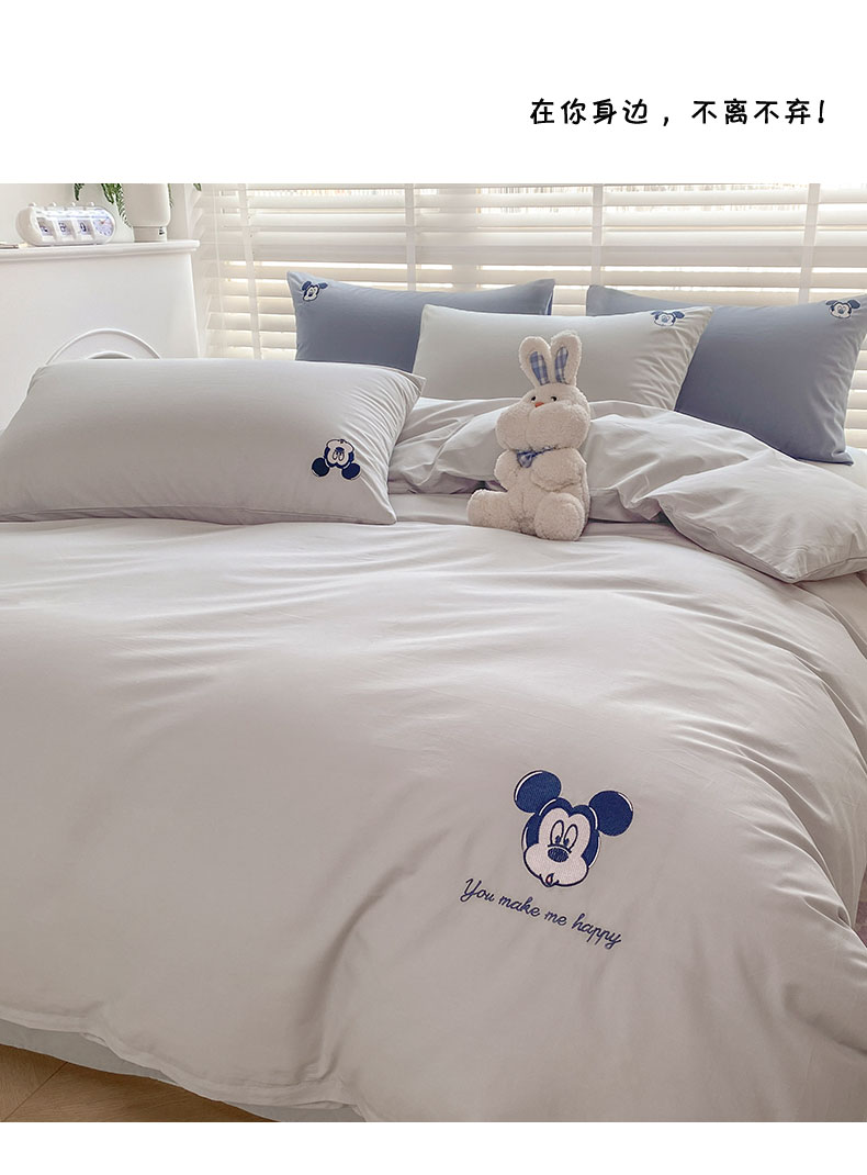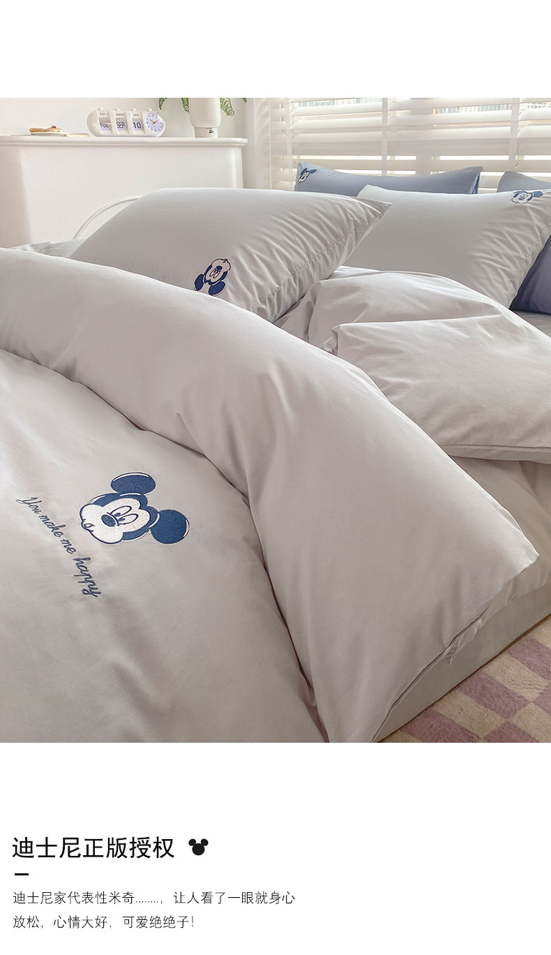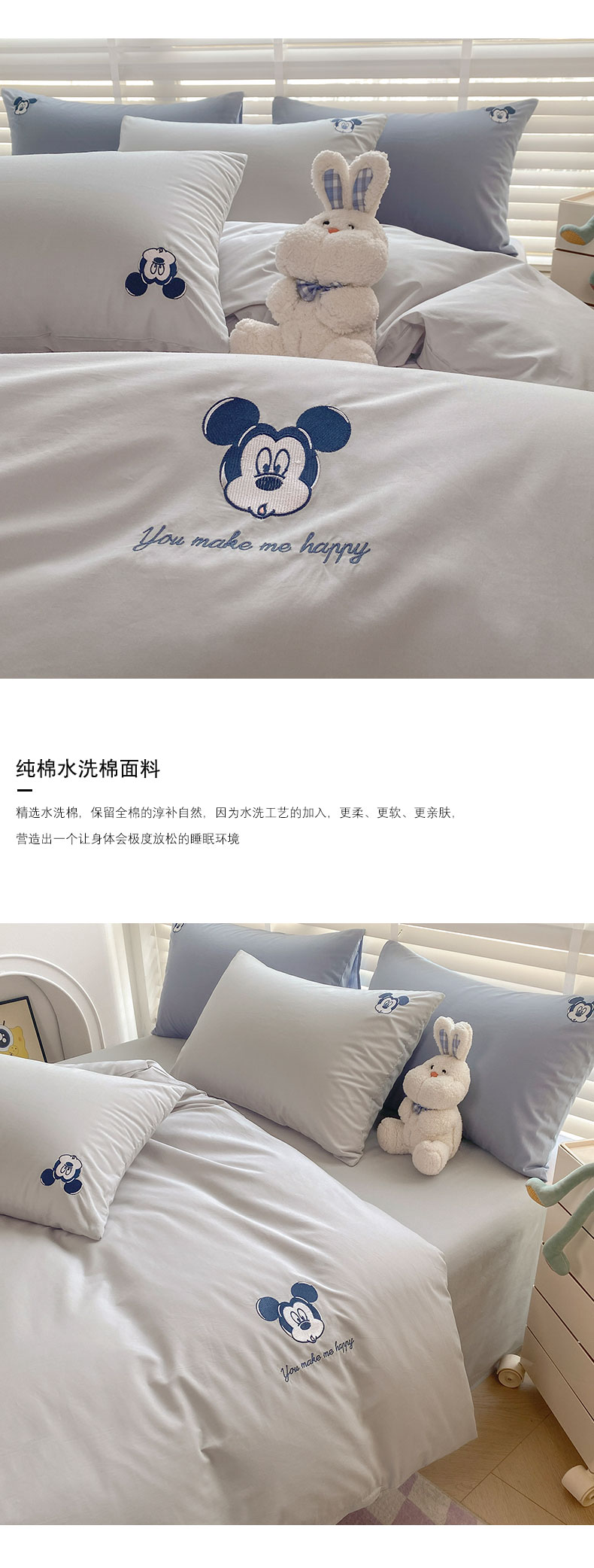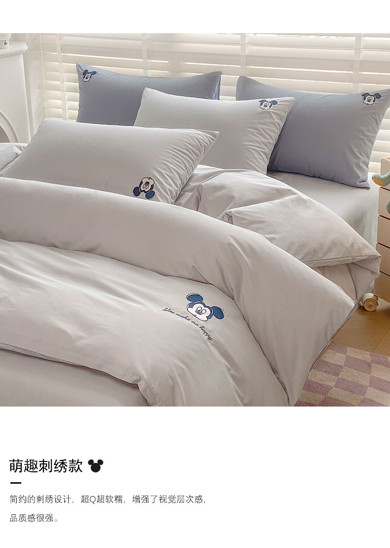 商品名称:猪先生 2024新款迪士尼全棉40支水洗棉绣花四件套 米奇浅灰