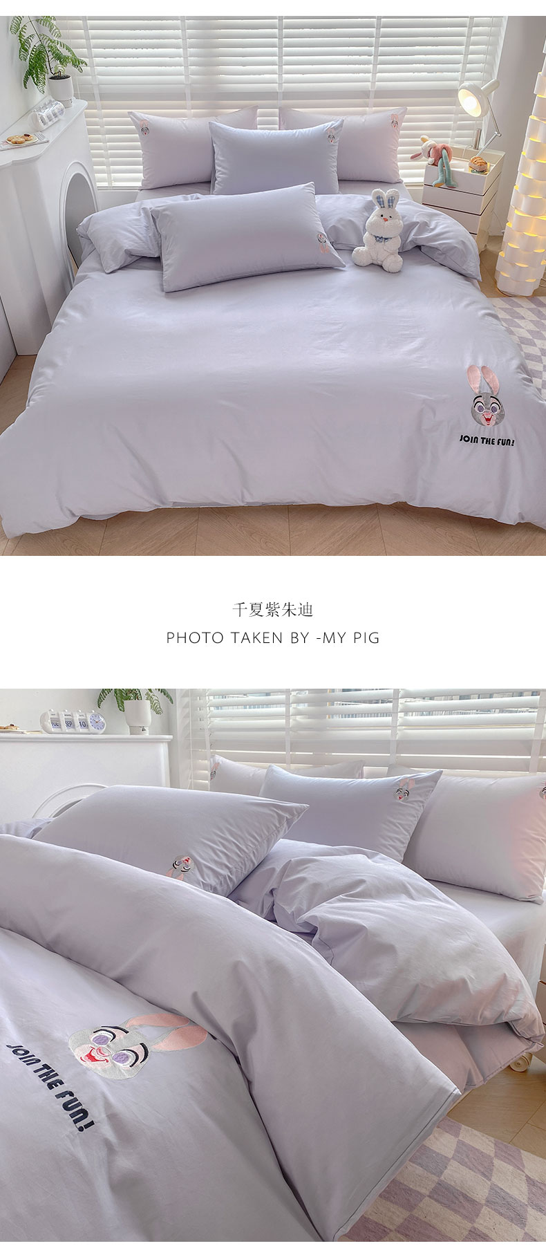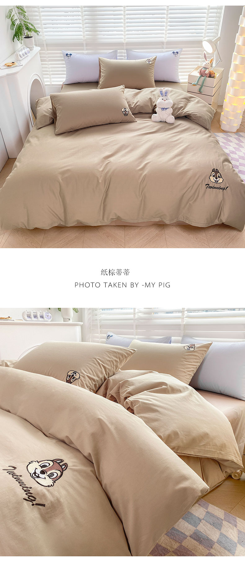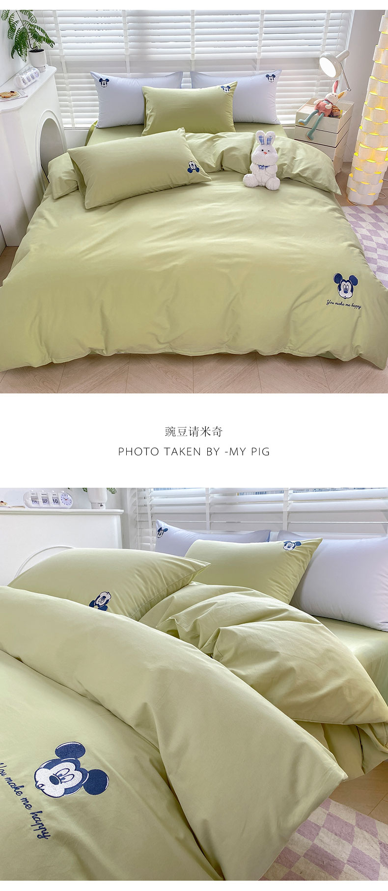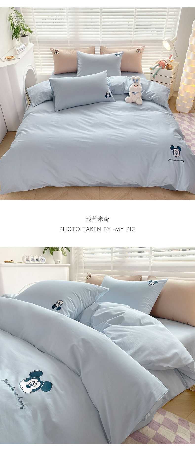 商品名称:猪先生 2024新款迪士尼全棉40支水洗棉绣花四件套 米奇浅灰