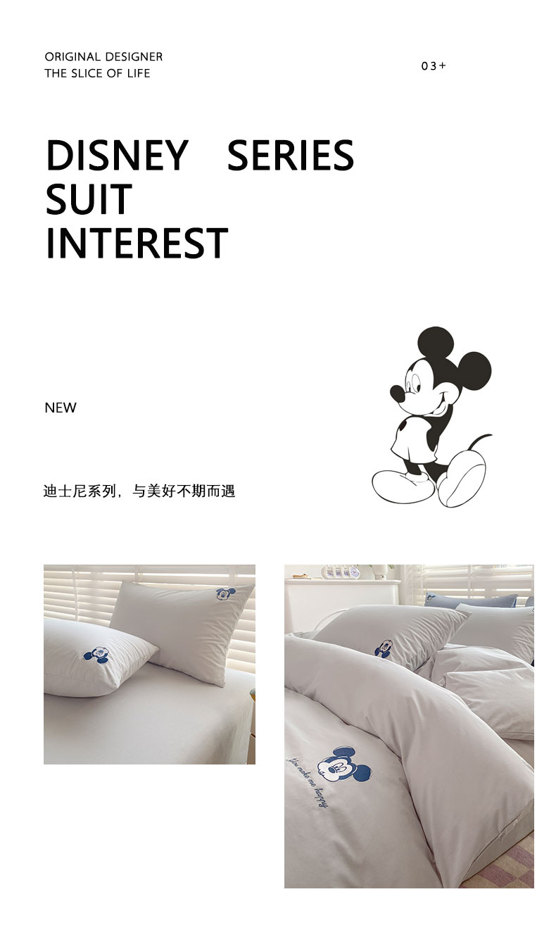 猪先生 2024新款迪士尼全棉40支水洗棉绣花四件套 米奇浅灰