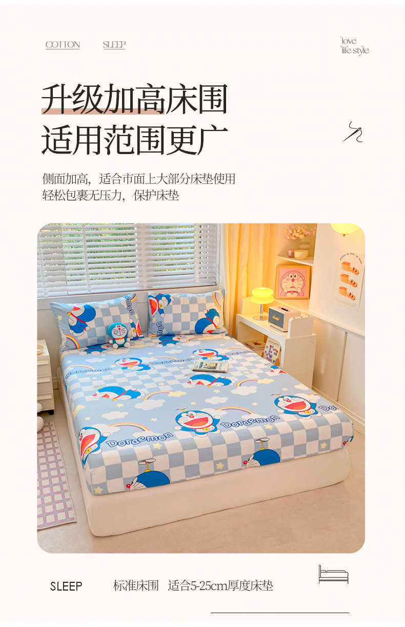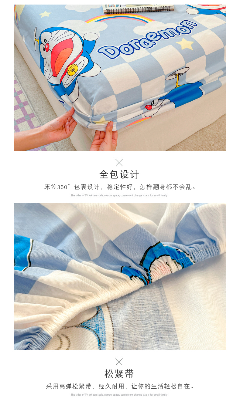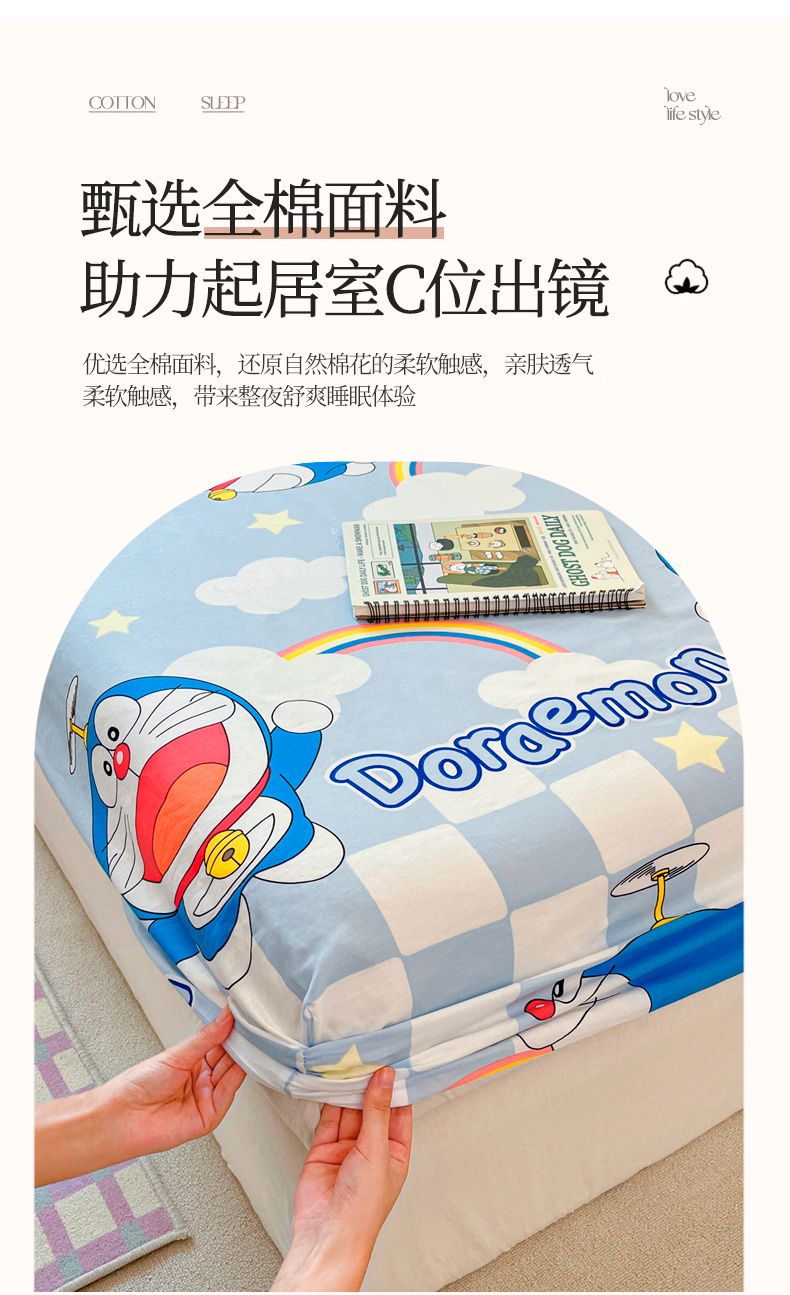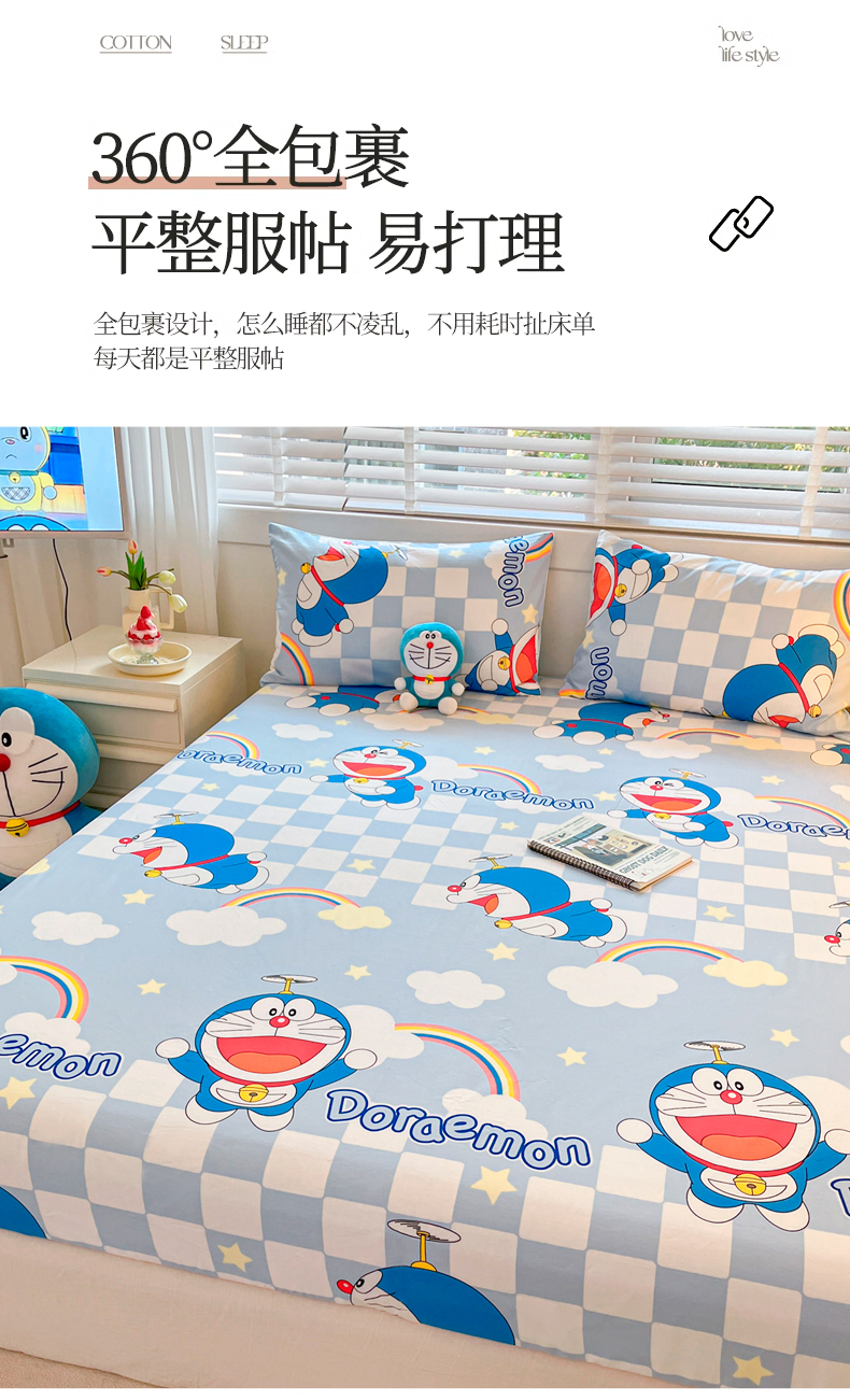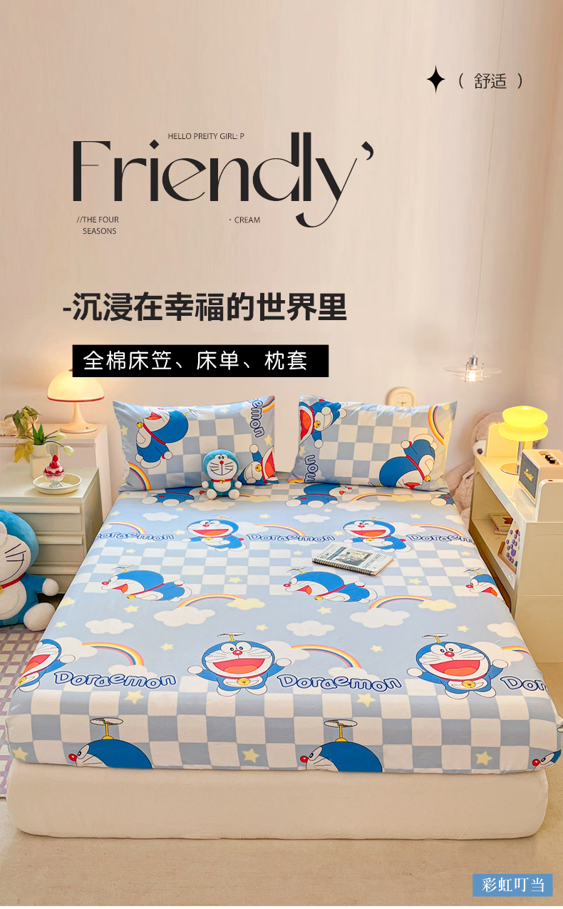 商品名称:桃子家居 2024新款哆啦A梦叮当猫纯棉单品单床笠 单品-彩虹叮当