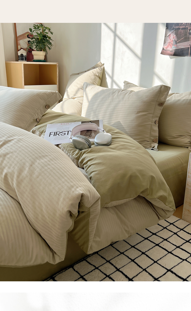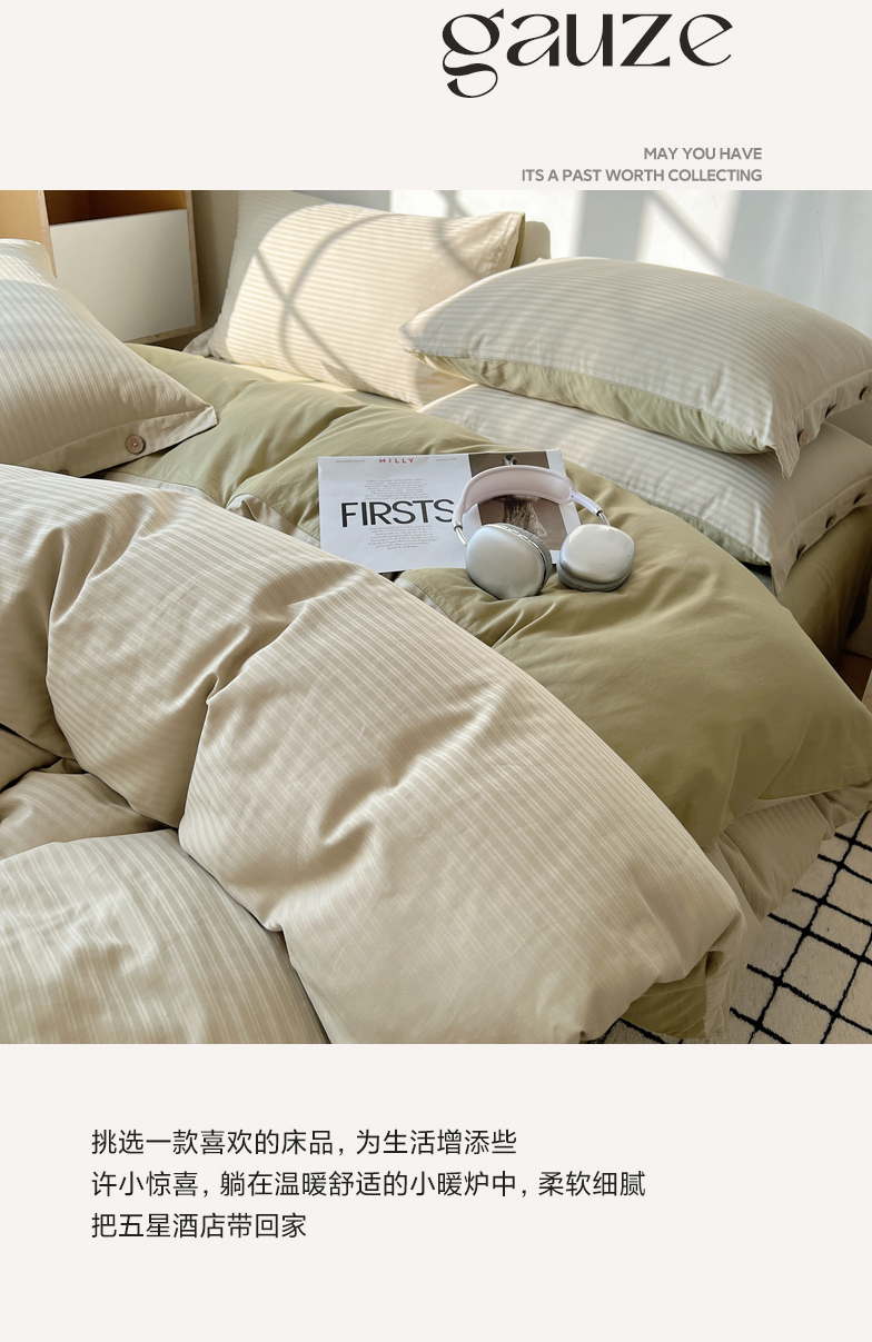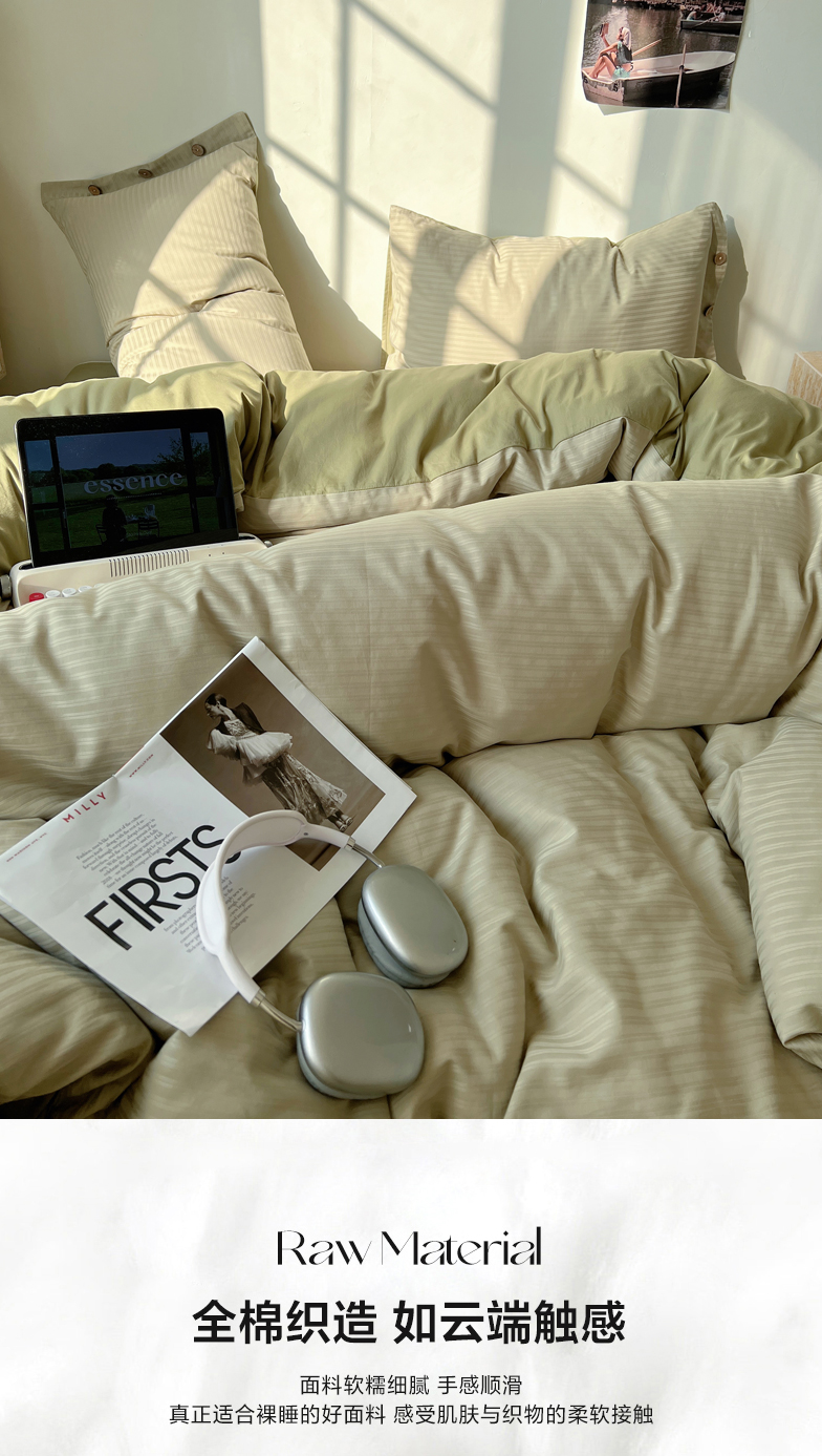 当前位置: 91家纺网 > 商品网购 > 床品套件 > 四件套 > 长绒棉四件套 > 三朵家纺 2024新款春夏无印侘寂风提花长绒棉四件套 灰豆绿+豆蔻
