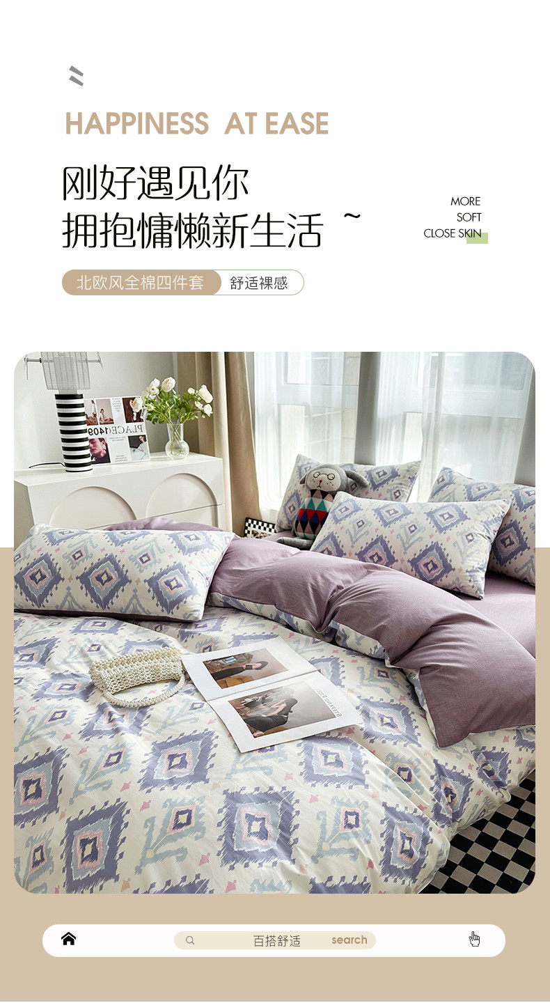小懒猪 2024春夏新款北欧风13372全棉四件套-拍摄风格2 布鲁可
