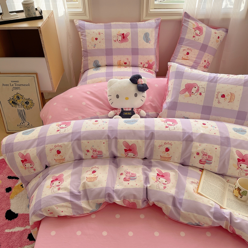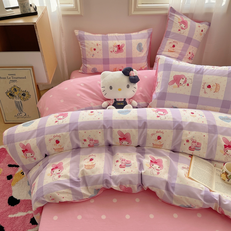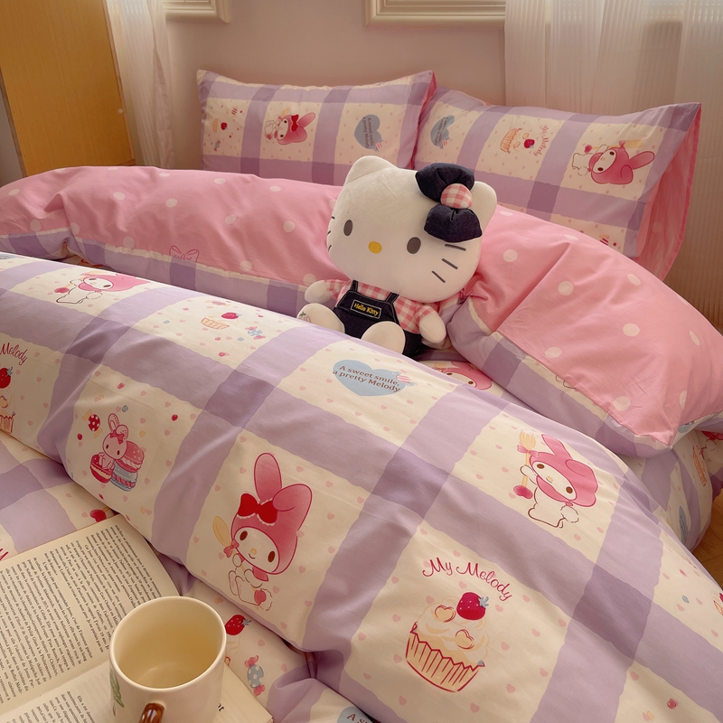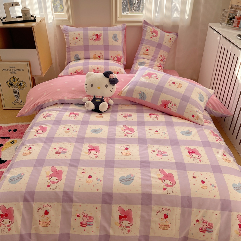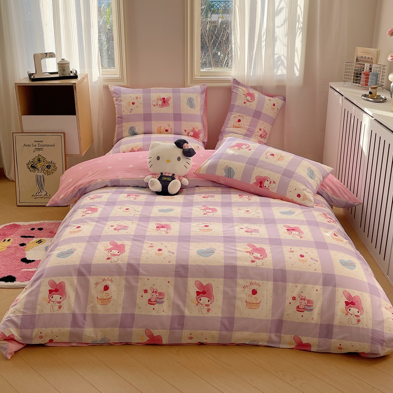 桃喜 2024新款三丽鸥40支13372全棉四件套-库洛米 格子美乐蒂