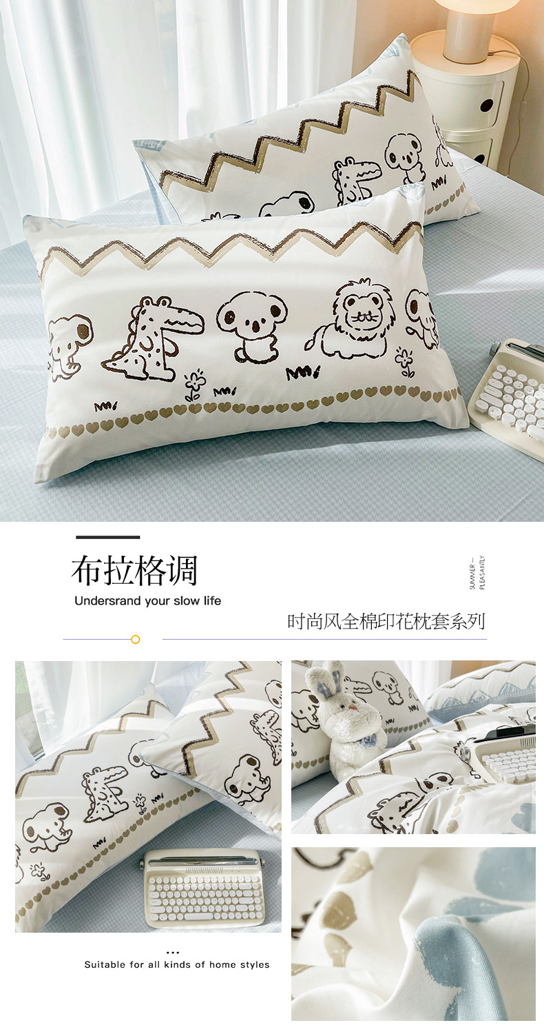 商品名称:倾慕家纺 2024新款时尚风全棉13070亲肤印花系列单枕套 布拉格调