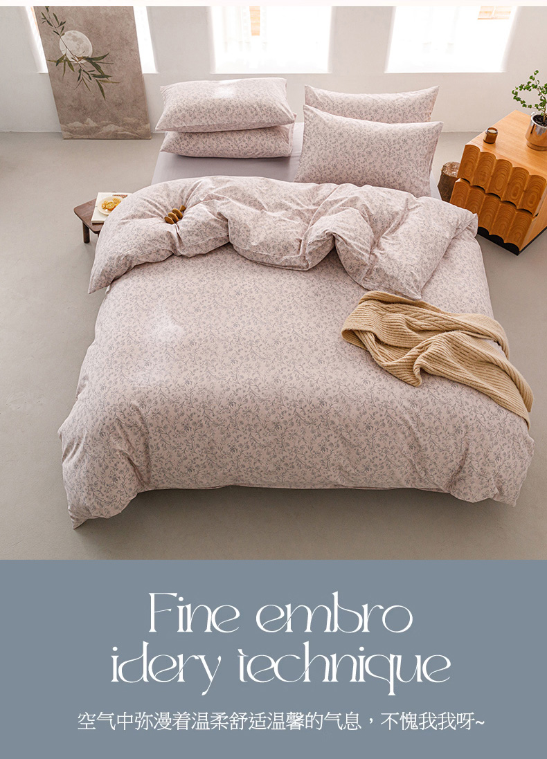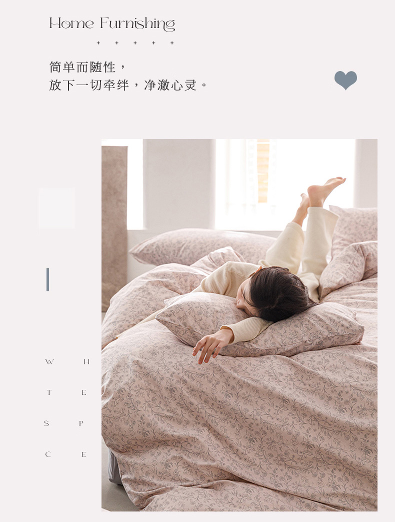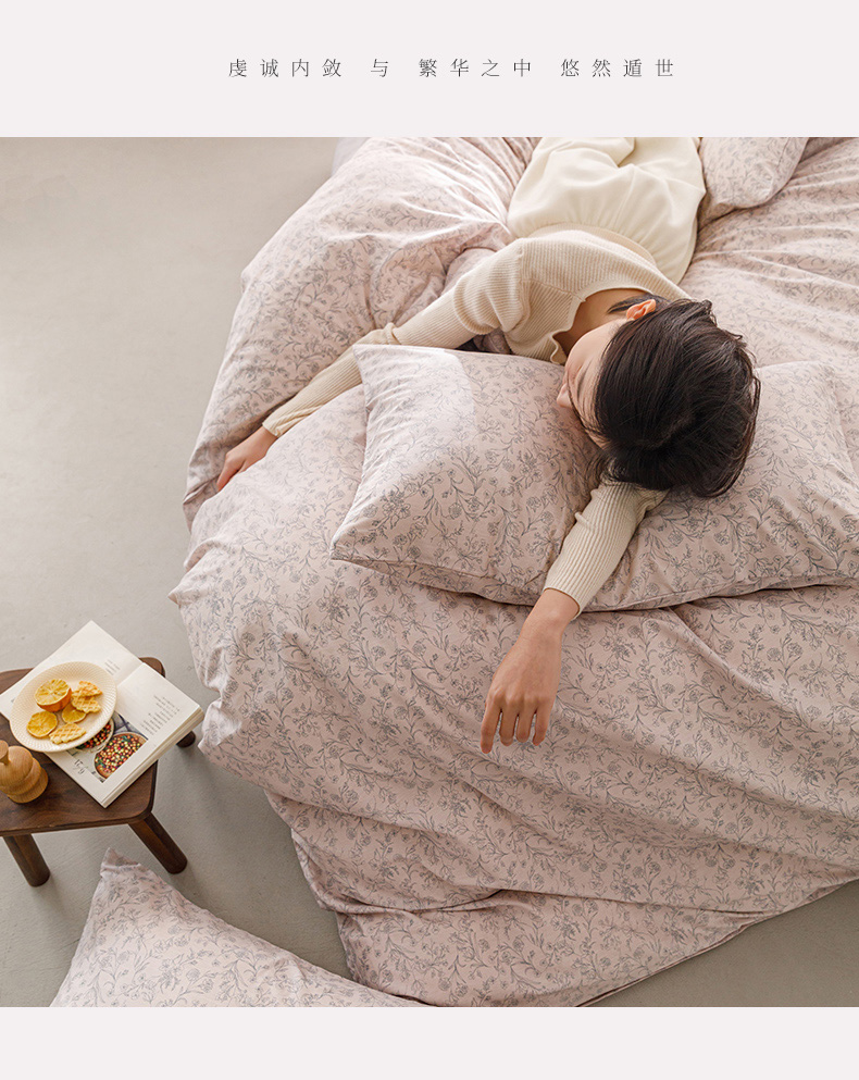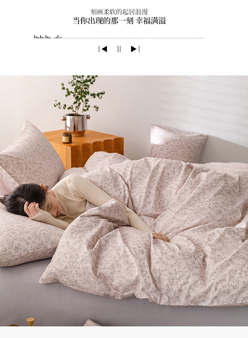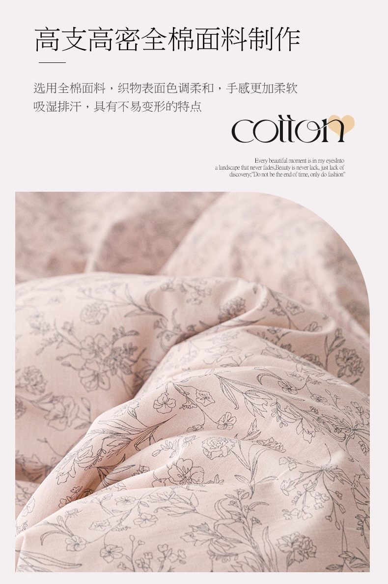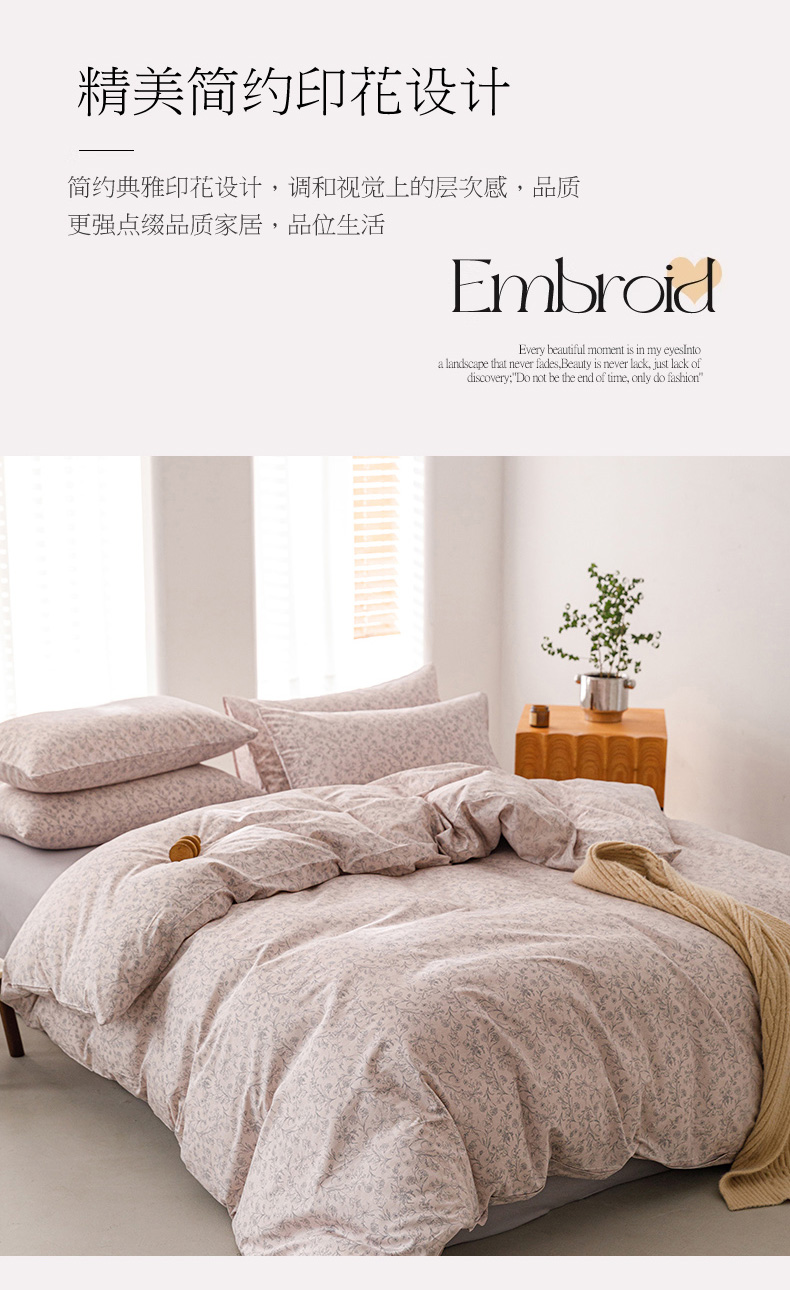 商品名称:倾慕家纺 2024新款典雅风全棉13370简约印花系列四件套 雾里花粉