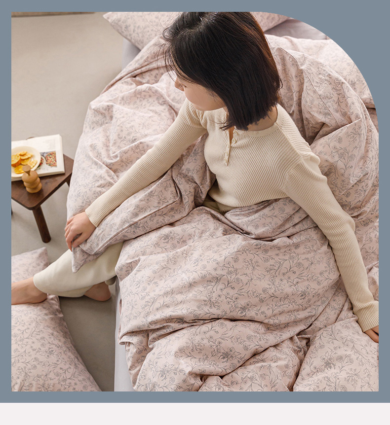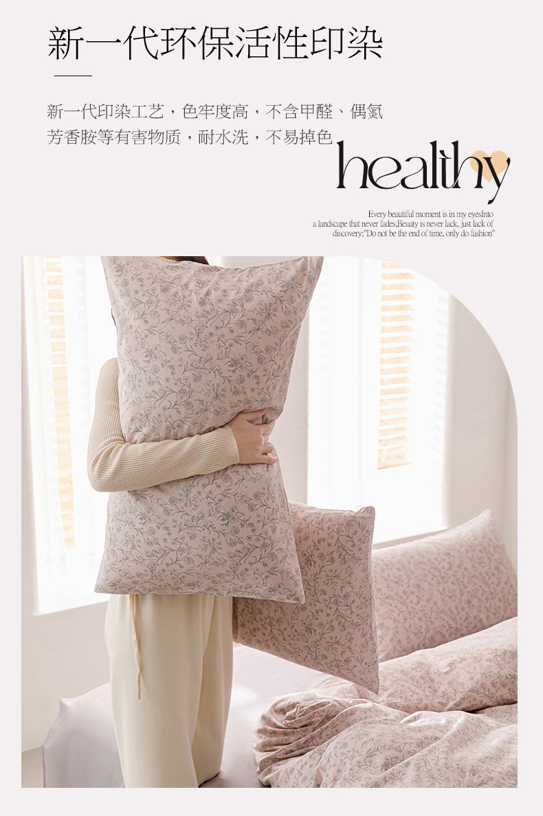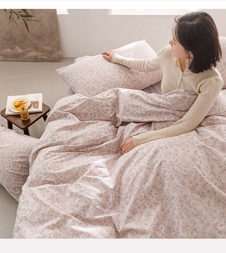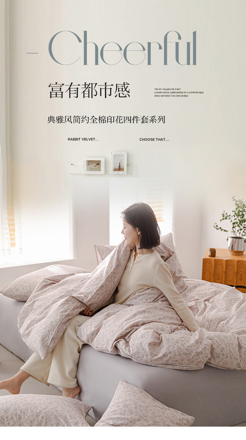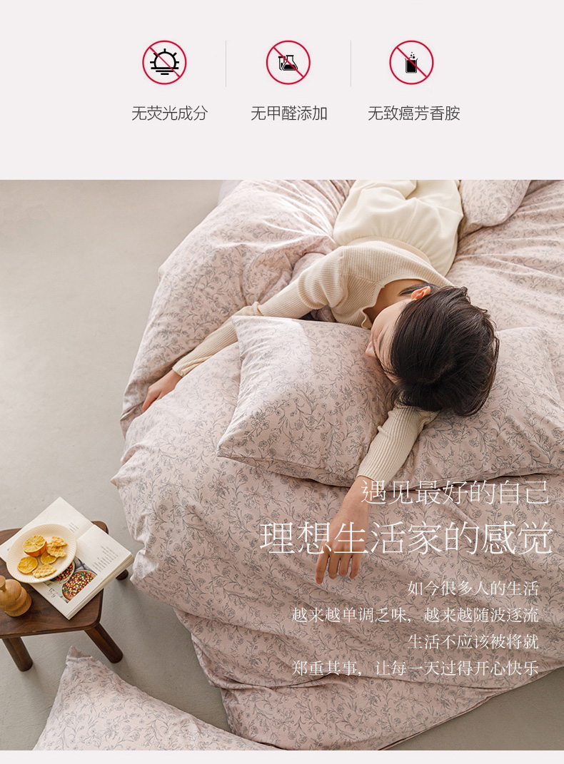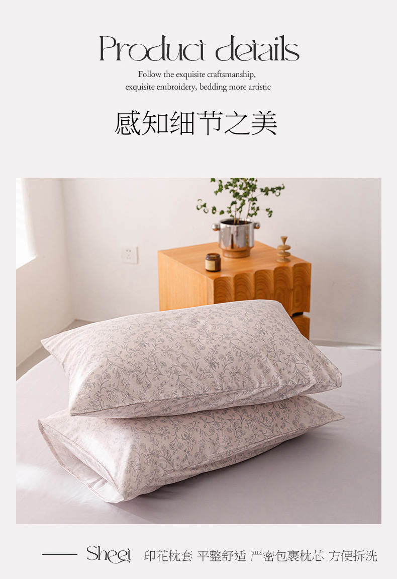 商品名称:倾慕家纺 2024新款典雅风全棉13370简约印花系列四件套 雾里花粉
