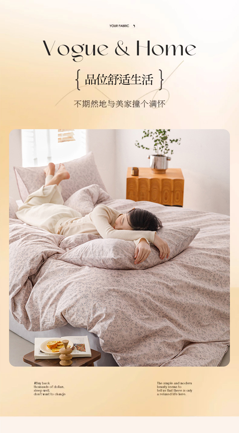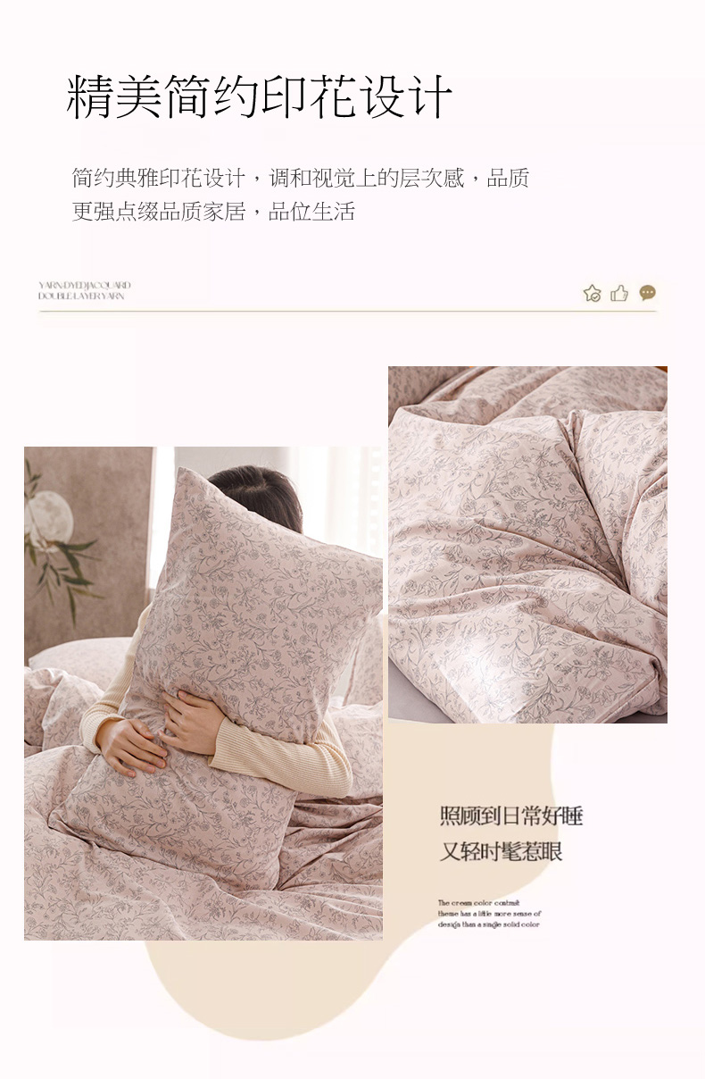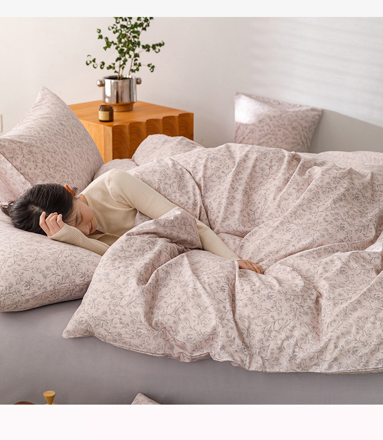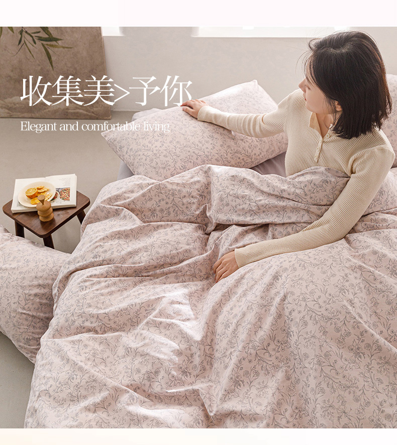 商品名称:倾慕家纺 2024新款典雅风全棉13370简约印花系列单被套 雾里花粉