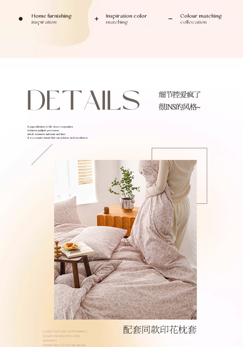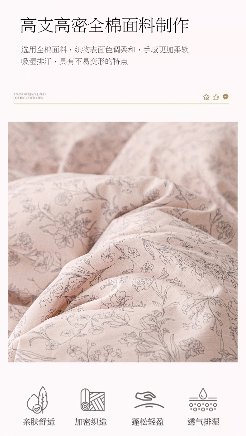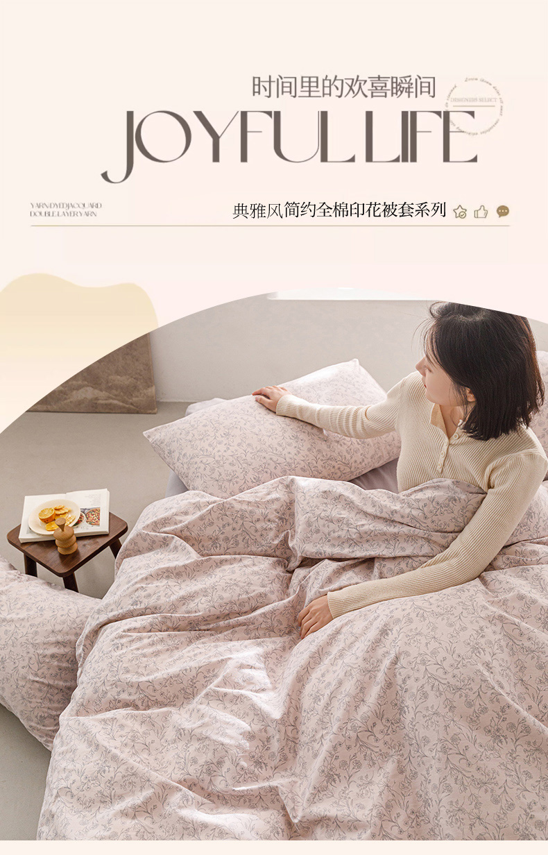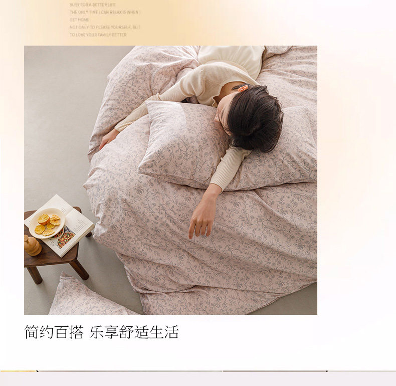 商品名称:倾慕家纺 2024新款典雅风全棉13370简约印花系列单被套 雾里花粉