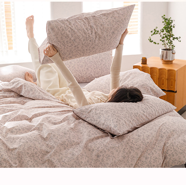 倾慕家纺 2024新款典雅风全棉13370简约印花系列单被套 雾里花粉