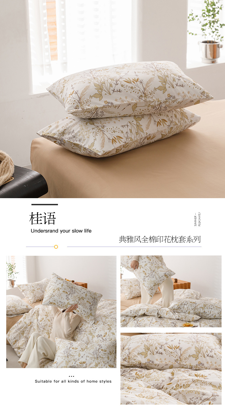倾慕家纺 2024新款典雅风全棉13370简约印花系列单枕套 桂语