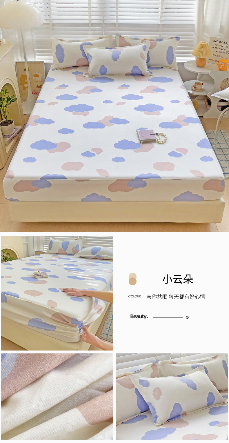 楠沐家纺 2024新款印花亲肤芦荟棉水洗棉床笠 小云朵