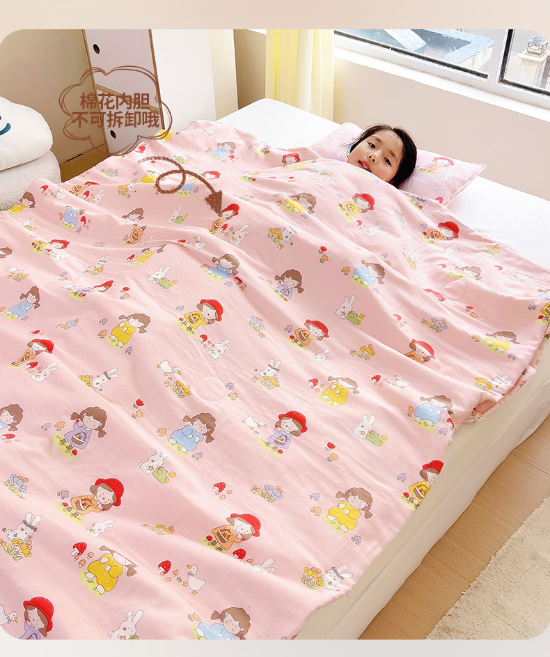 A类夏季纯棉睡袋双层纱棉花薄款春秋宝宝中大童儿童防踢被神器可爱女孩