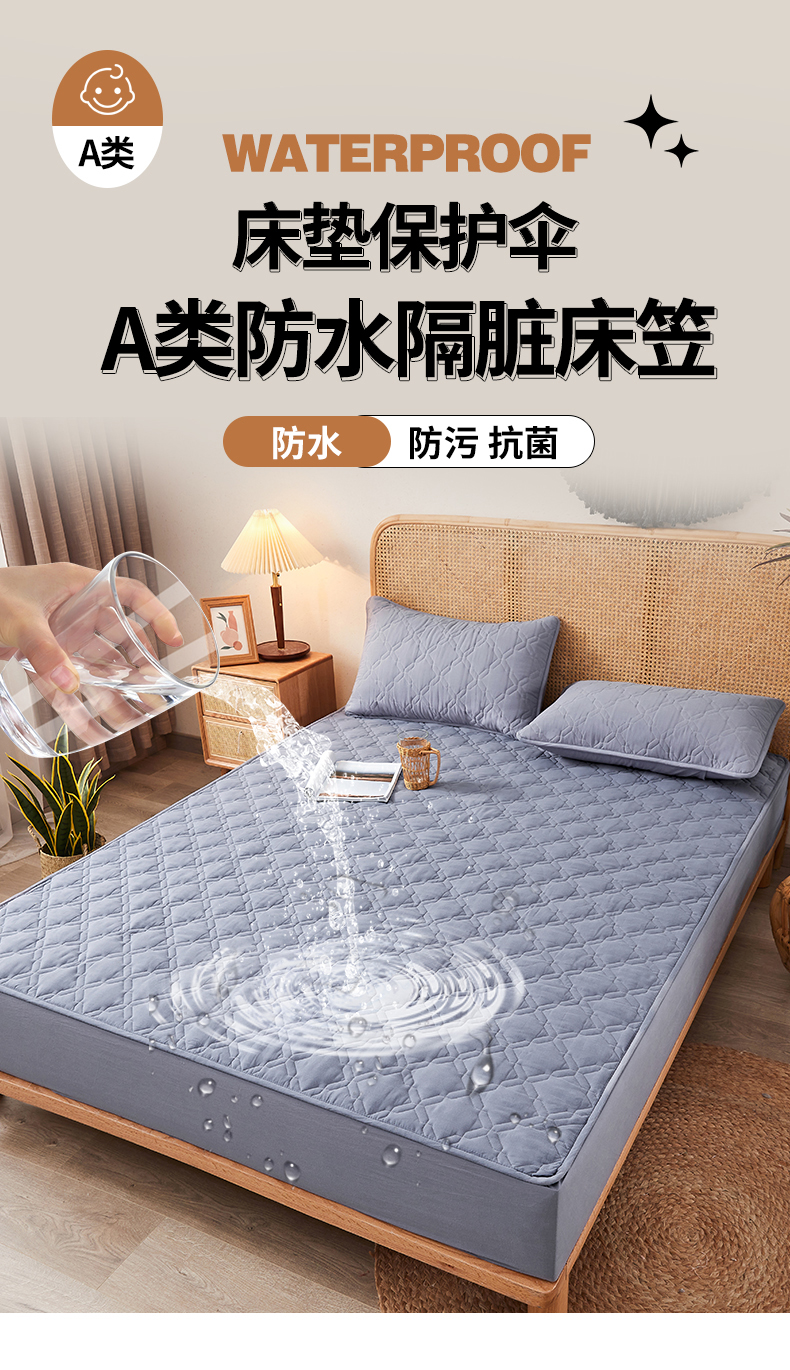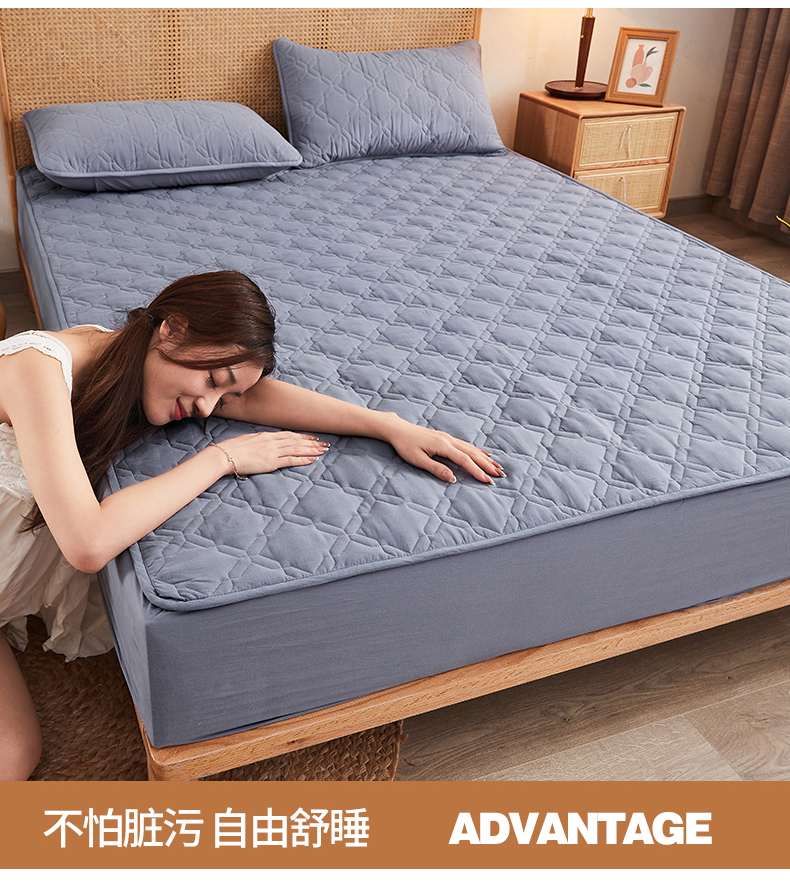 • 91家纺网 家纺一手货源 找家纺 3C 2024新款抗菌防螨透气防水夹棉床笠 蓝灰色