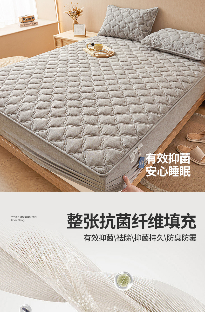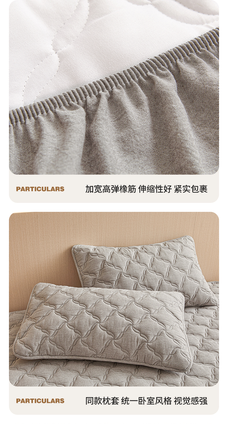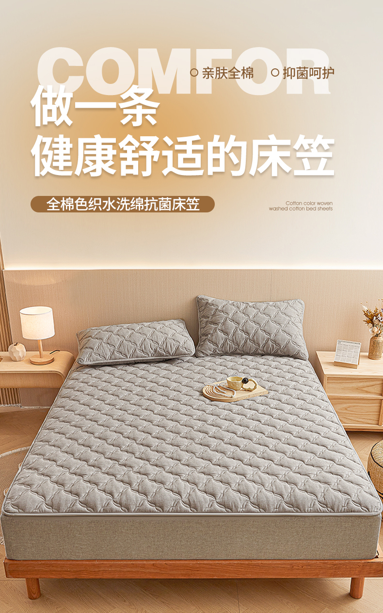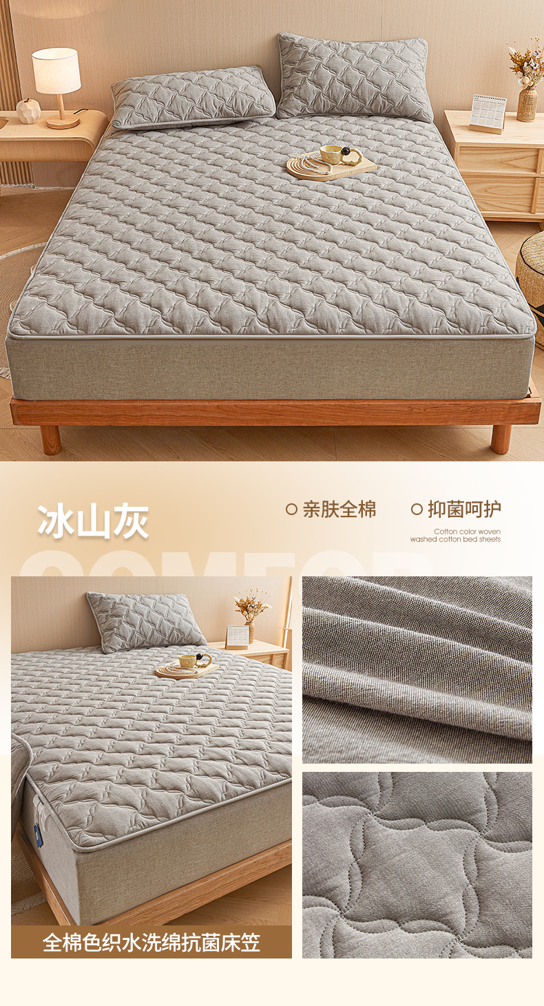 • 91家纺网 家纺一手货源 找家纺 3C 2024新款全棉色织水洗绵抗菌床笠 冰山灰