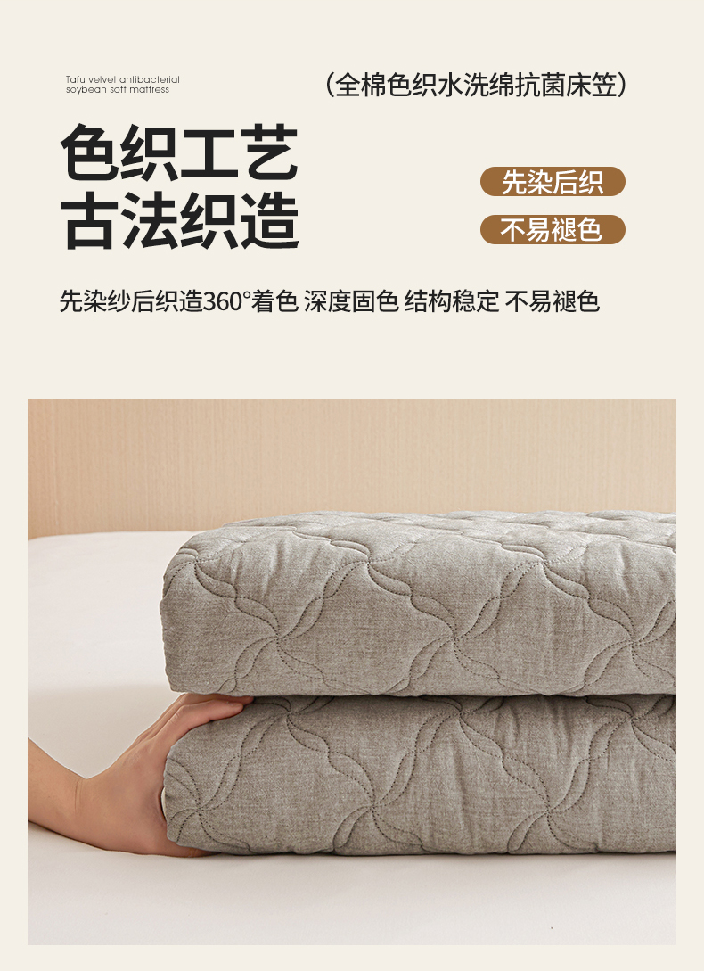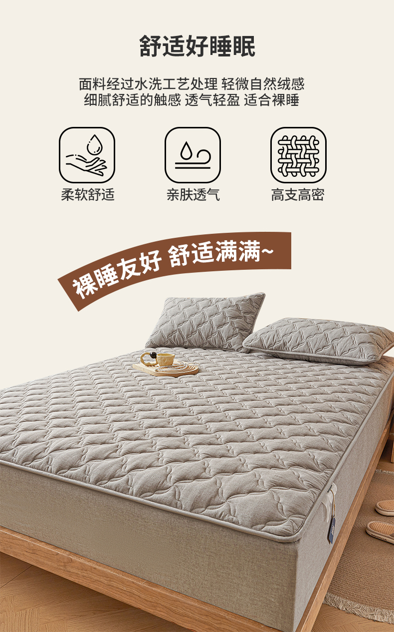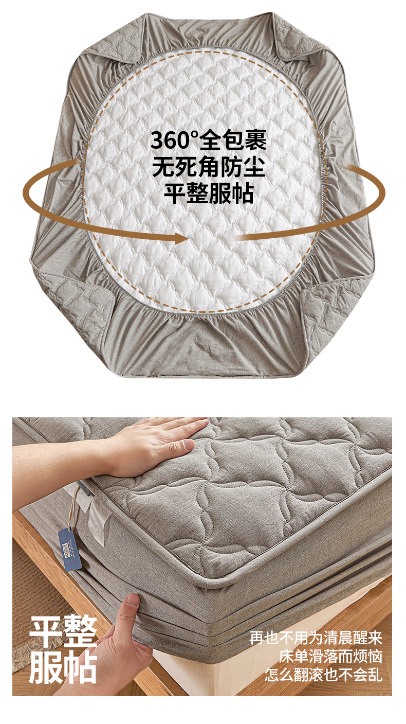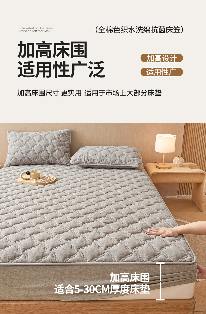 • 91家纺网 家纺一手货源 找家纺 3C 2024新款全棉色织水洗绵抗菌床笠 冰山灰