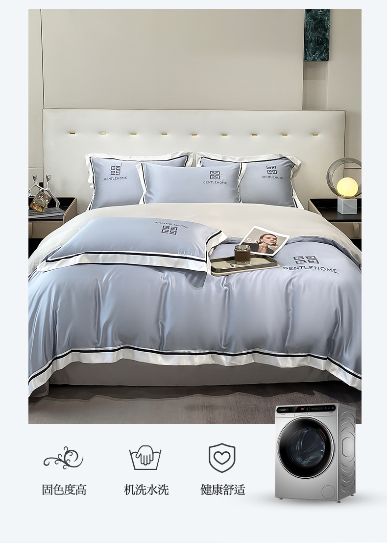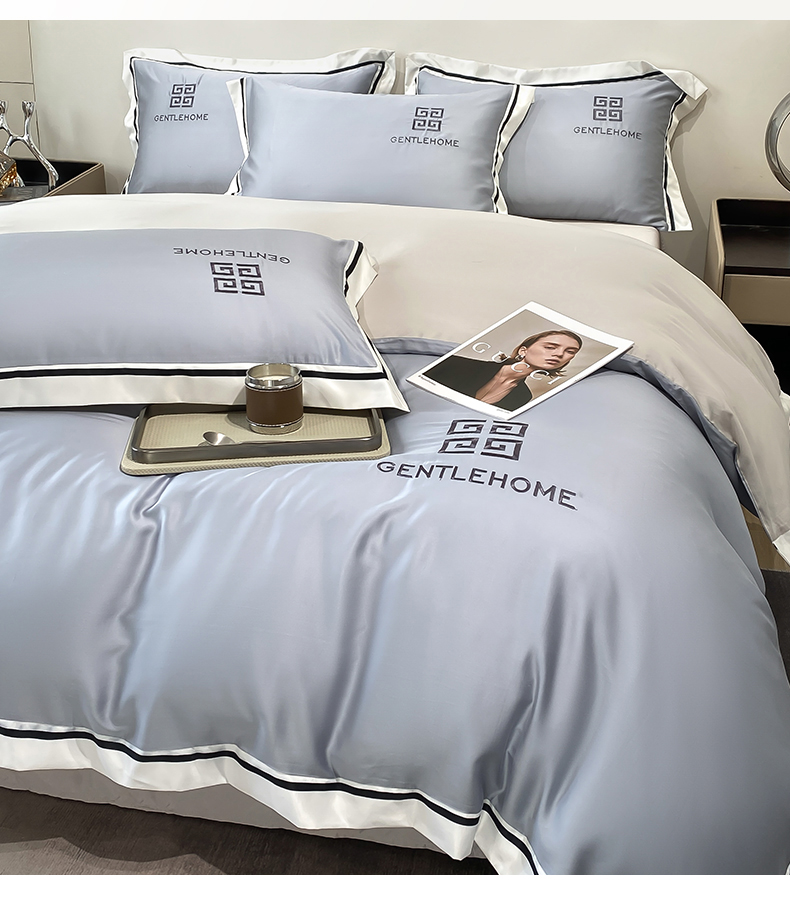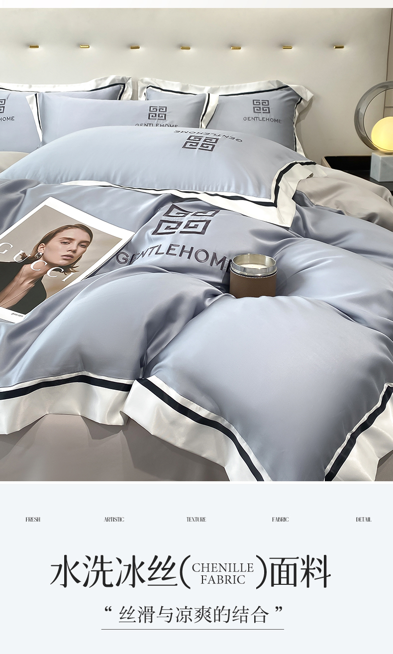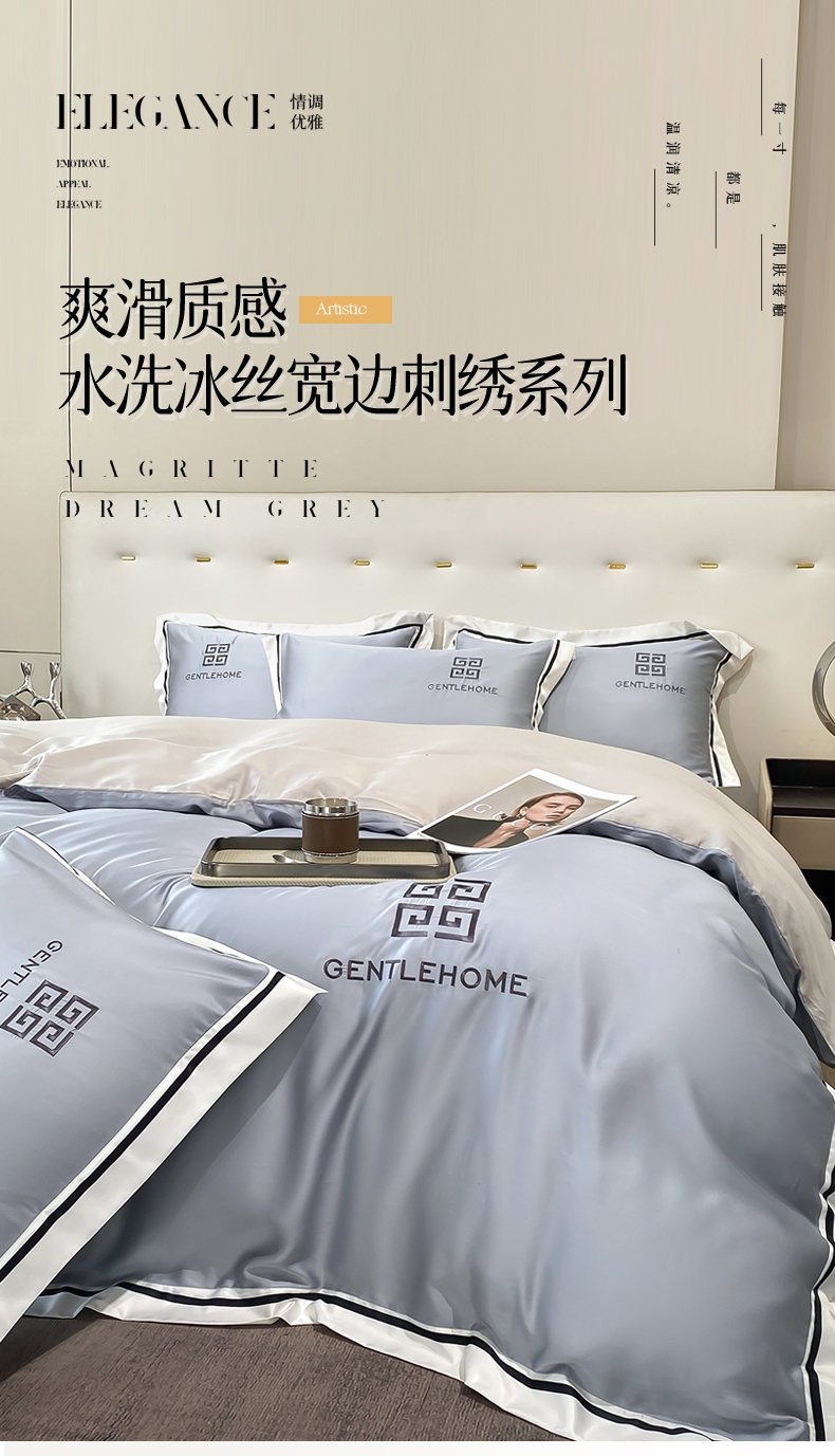 当前位置: 91家纺网 > 商品网购 > 床品套件 > 四件套 > 水洗真丝四件套 > 笙意家纺 2025新款水洗真丝宽边四件套-挪威系列 挪威-海清+山灰