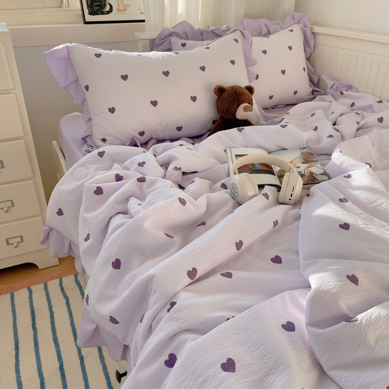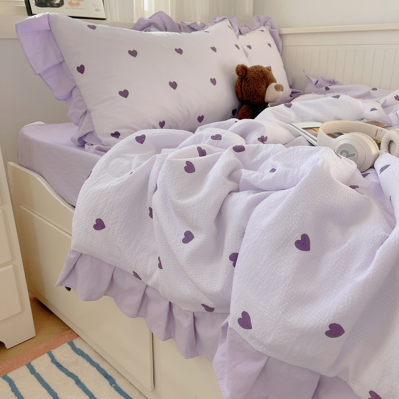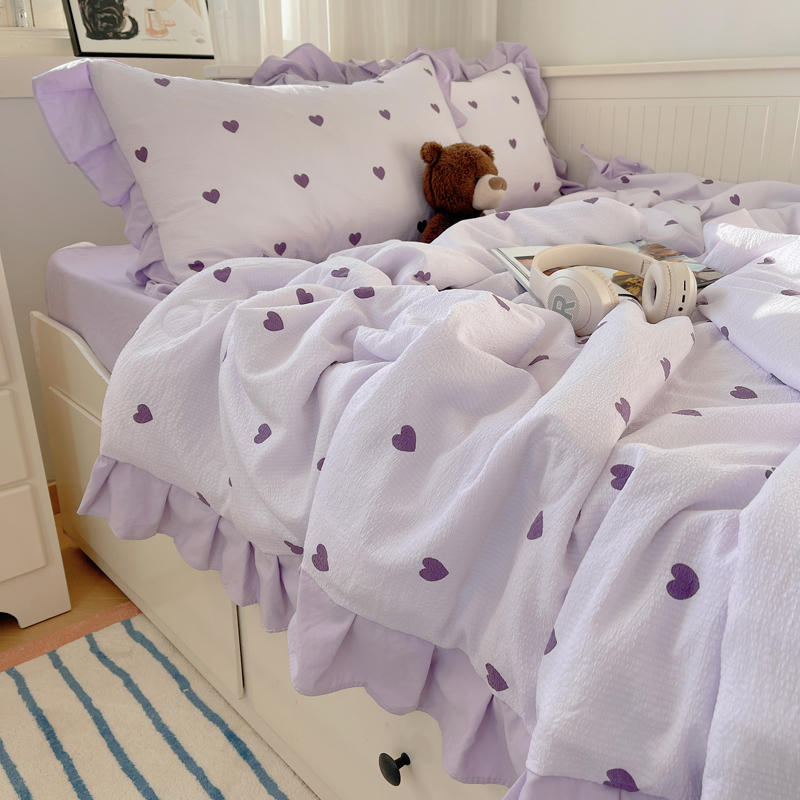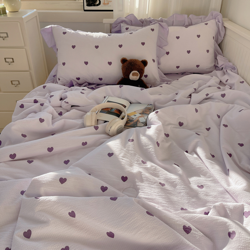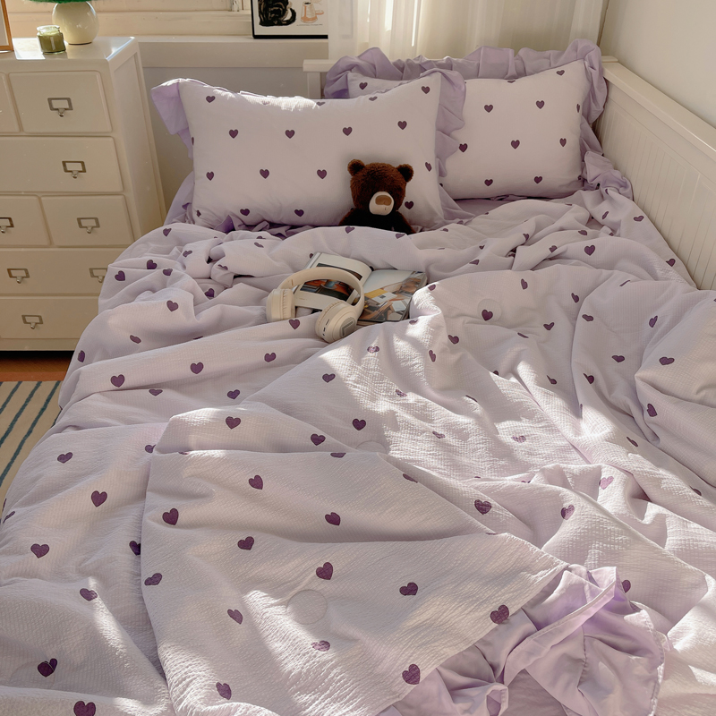 商品名称:顾里家纺 2024新款韩系治愈小清新花边氧气泡泡棉夏被四件套 紫爱心