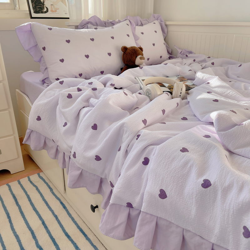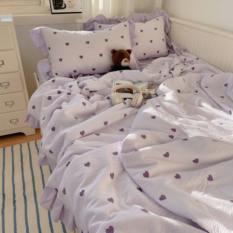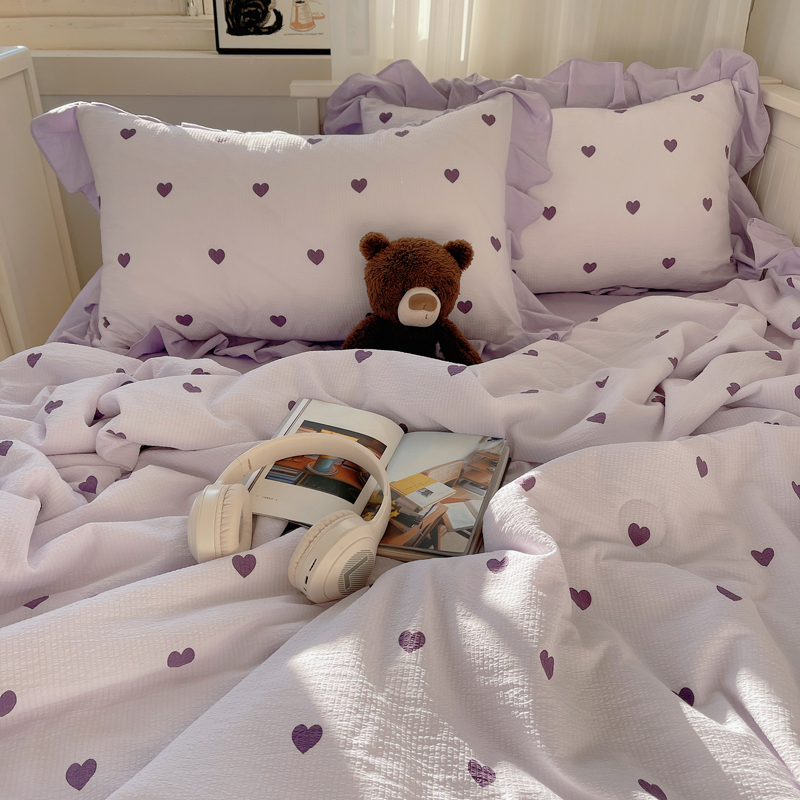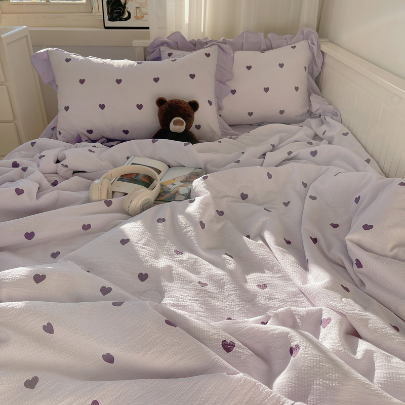 顾里家纺 2024新款韩系治愈小清新花边氧气泡泡棉夏被四件套 紫爱心