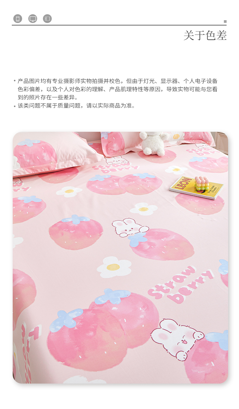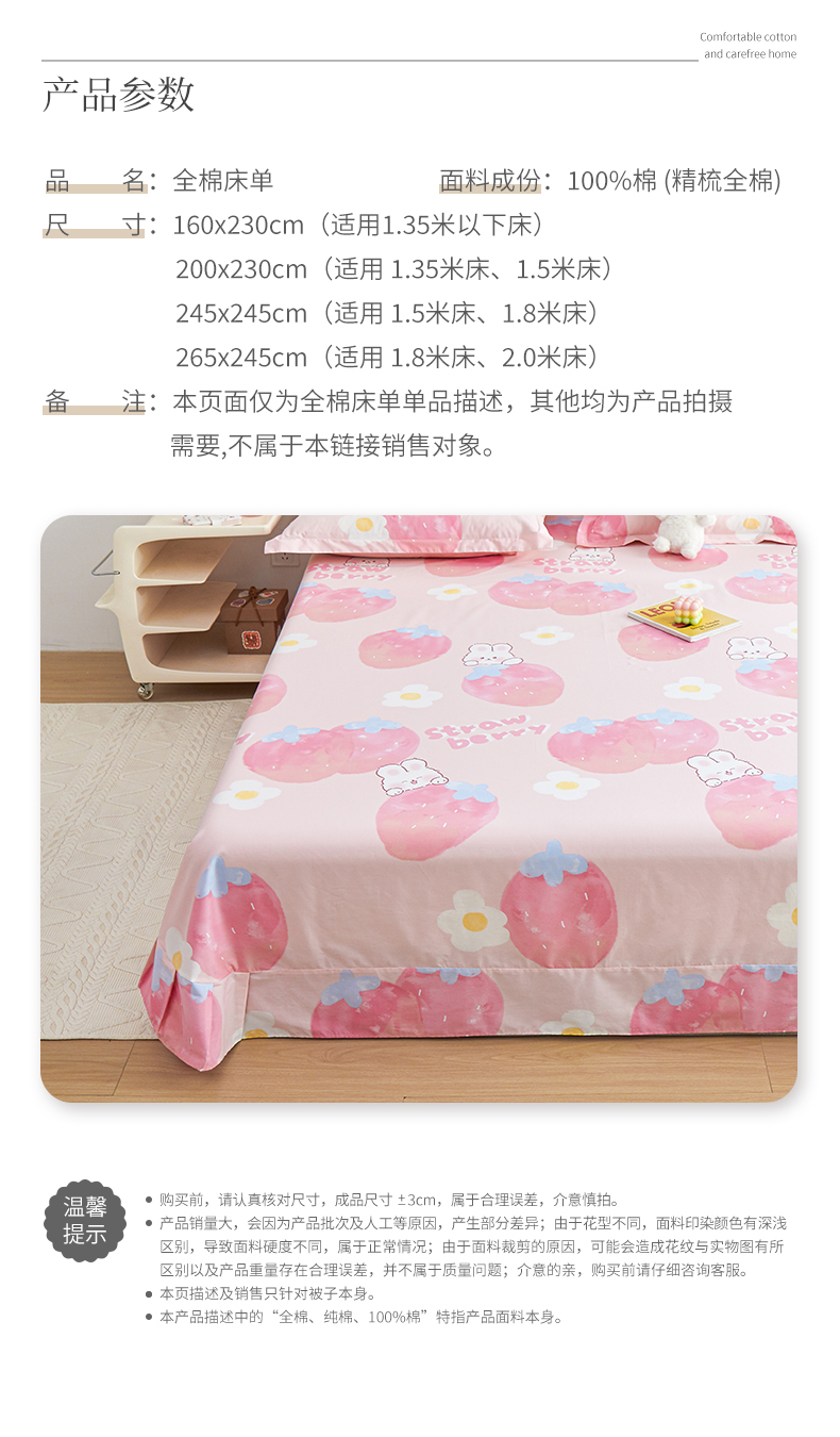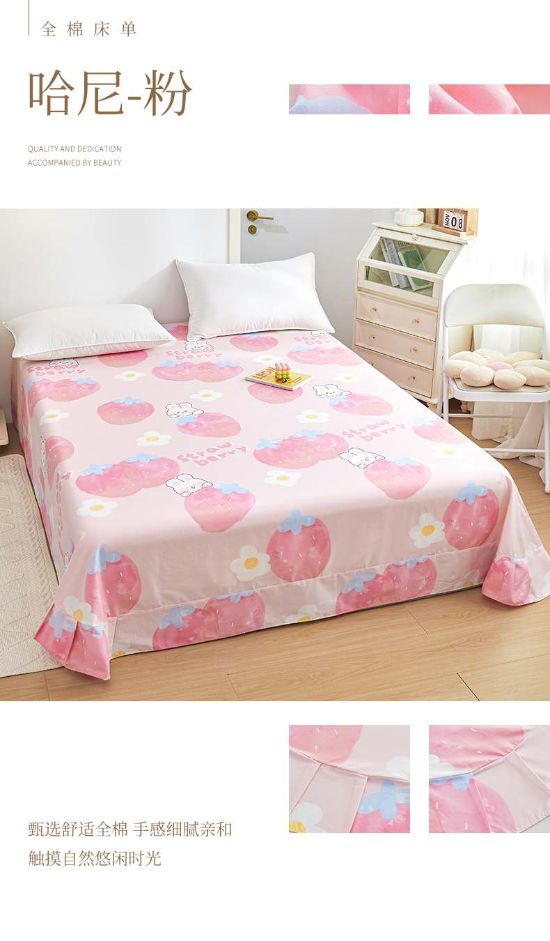 商品名称:元元被芯 2024新款小清新全棉套件单品-单床单 哈尼-粉