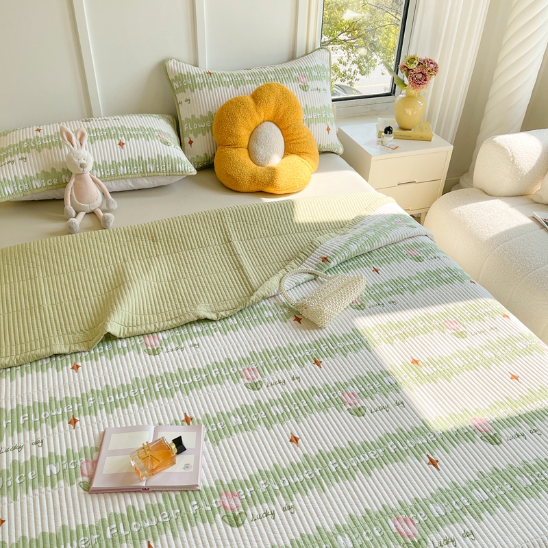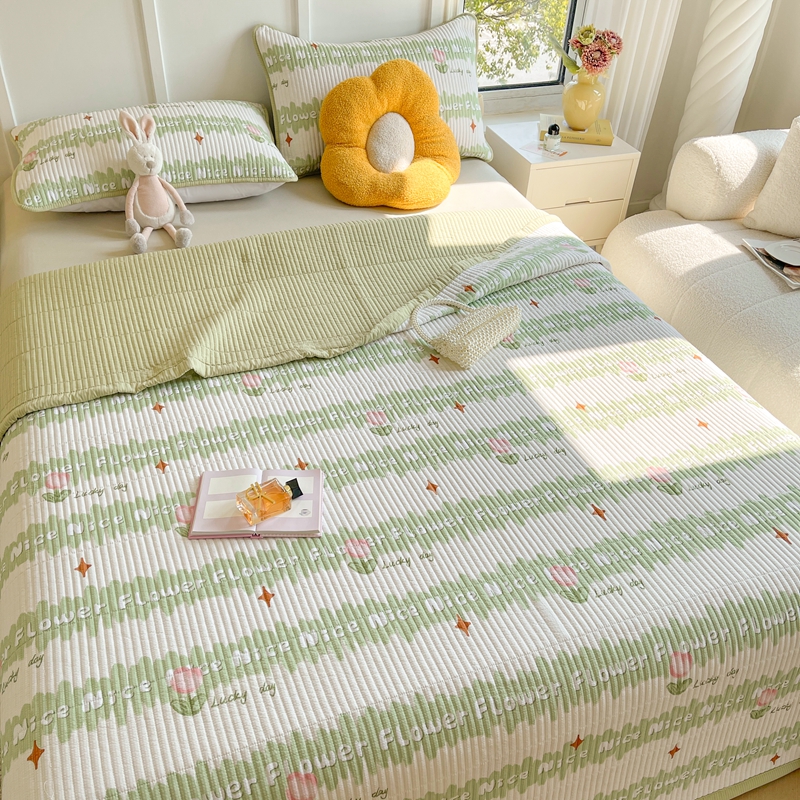 梵朴 2025新款A类安抚颗粒泡泡棉夹棉床盖 幸运郁金香