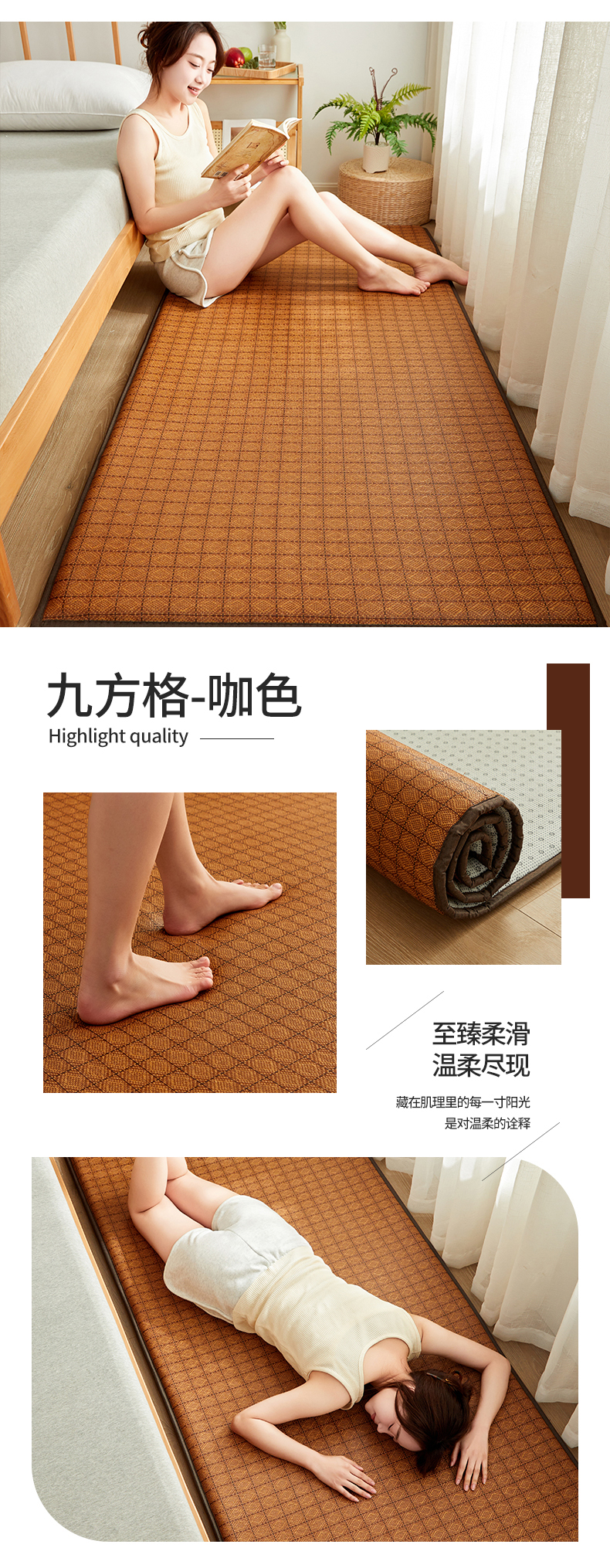 当前位置: 91家纺网 > 商品网购 > 床垫/床褥 > 榻榻米床垫 > 祁恋婷家居 2024新款日式榻榻米冰藤午睡垫-小床 九方格-咖色