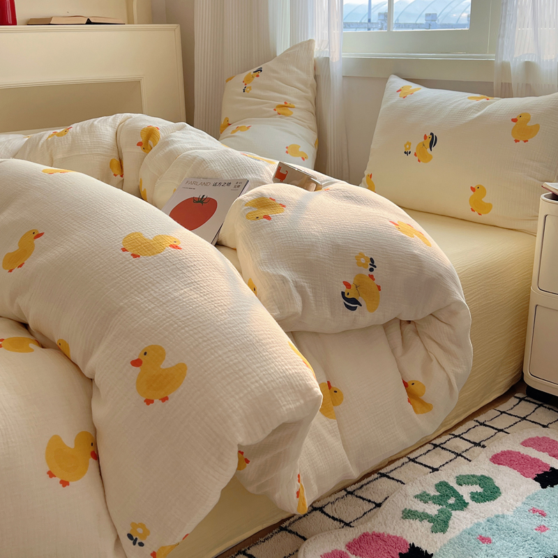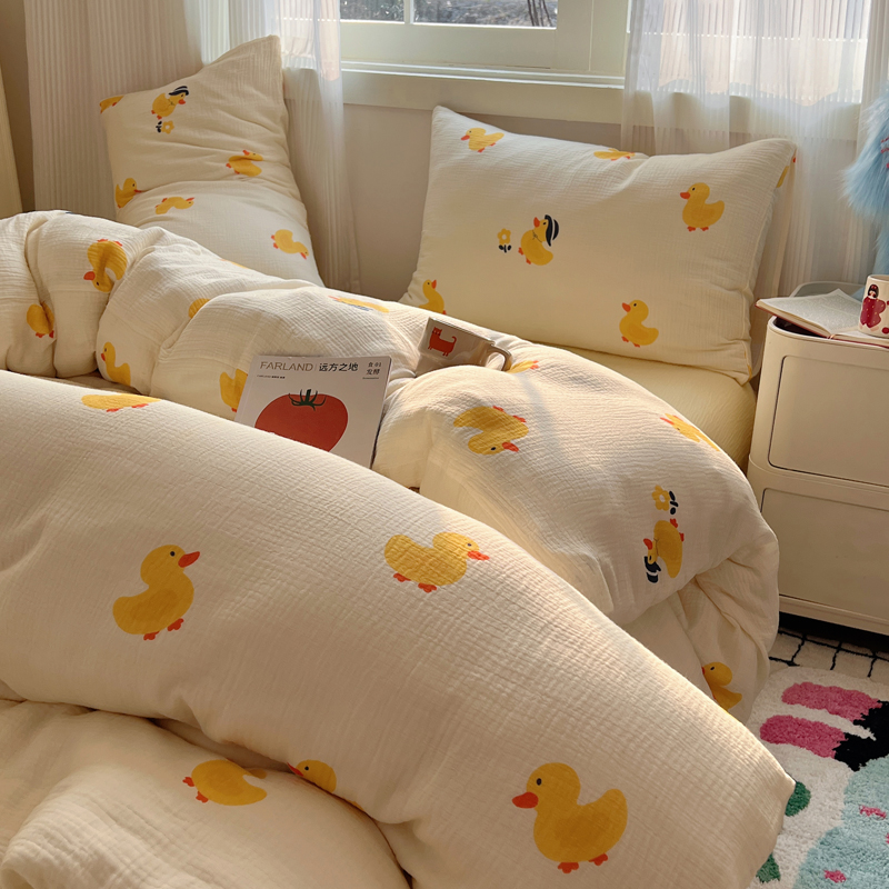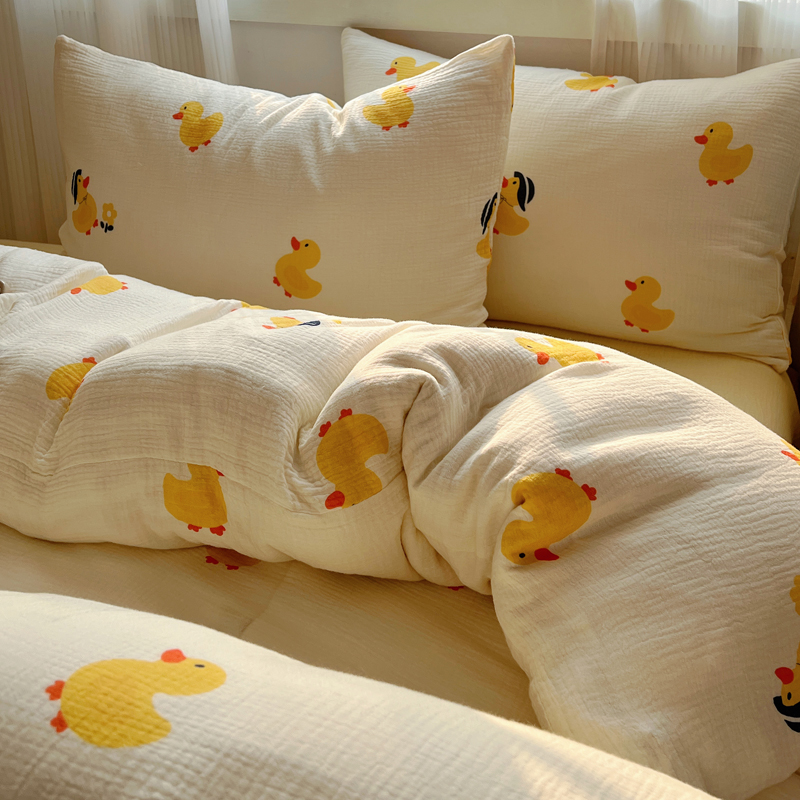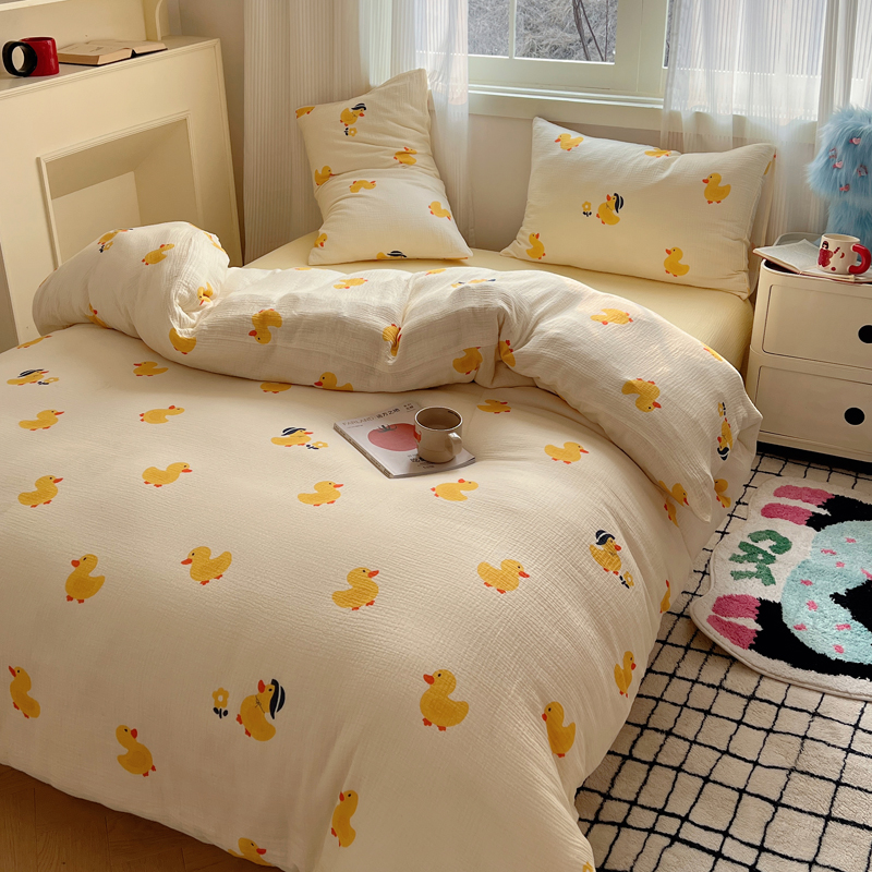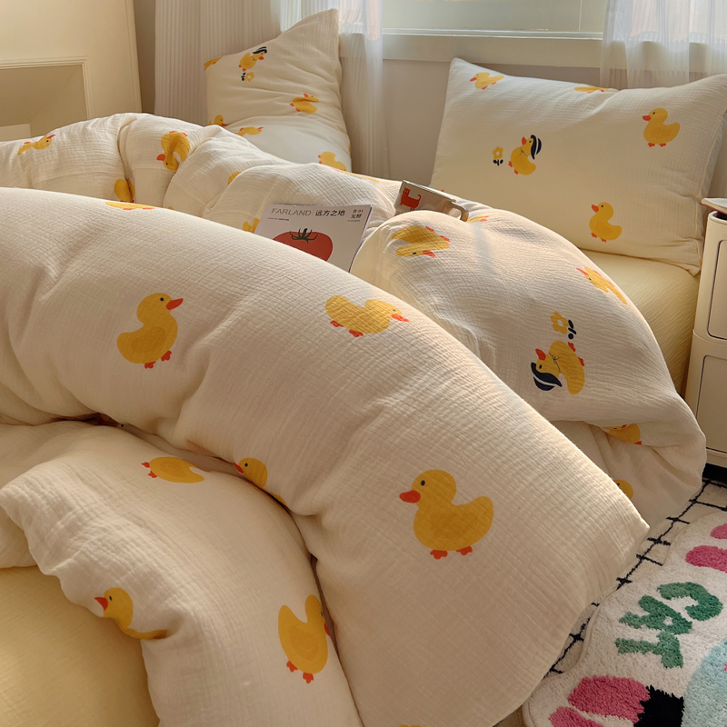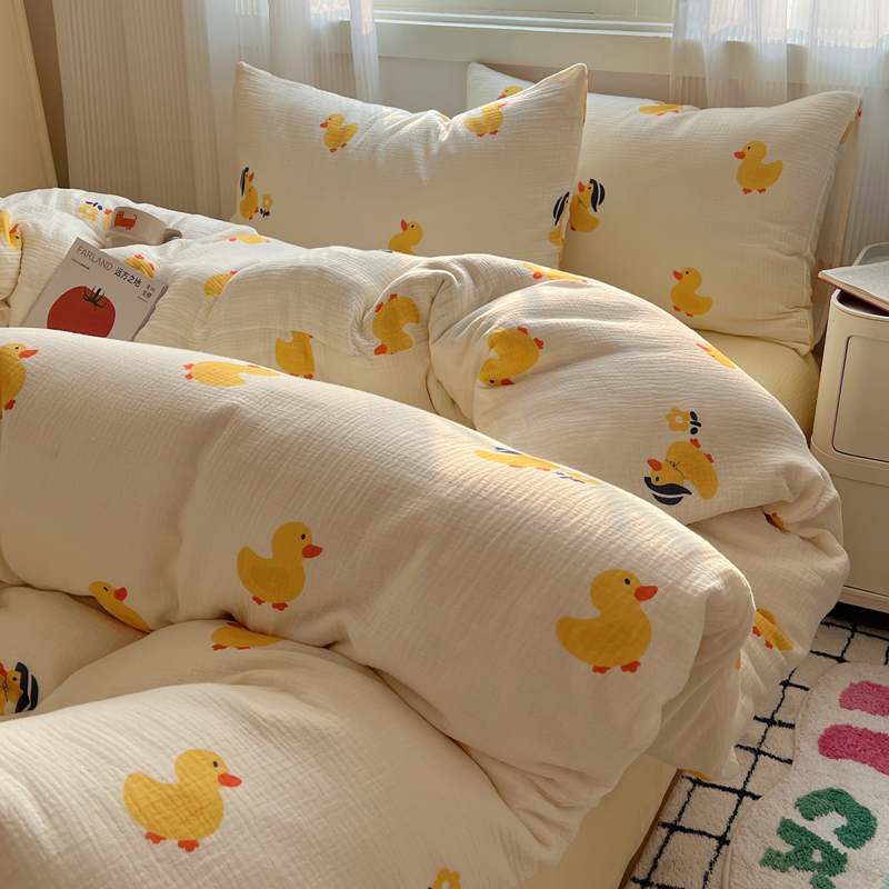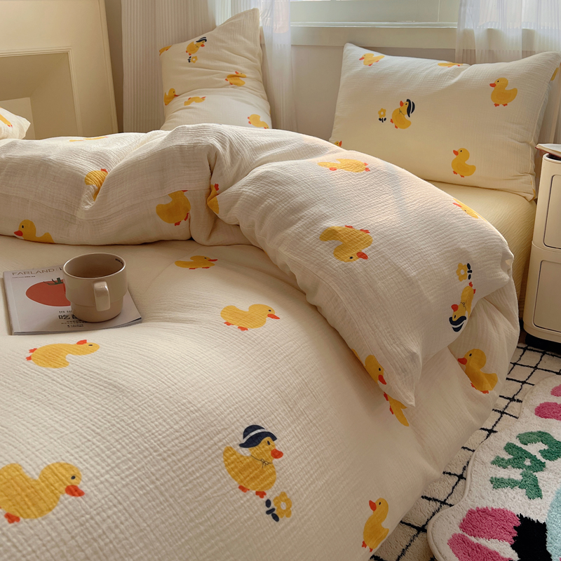 当前位置: 91家纺网 > 商品网购 > 床品套件 > 四件套 > 水洗棉四件套 > 盼季 2024新款A类母婴级水洗棉床上用品四件套卡通儿童床单被套宿舍三件套 快乐小鸭