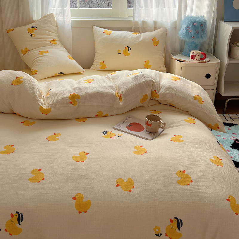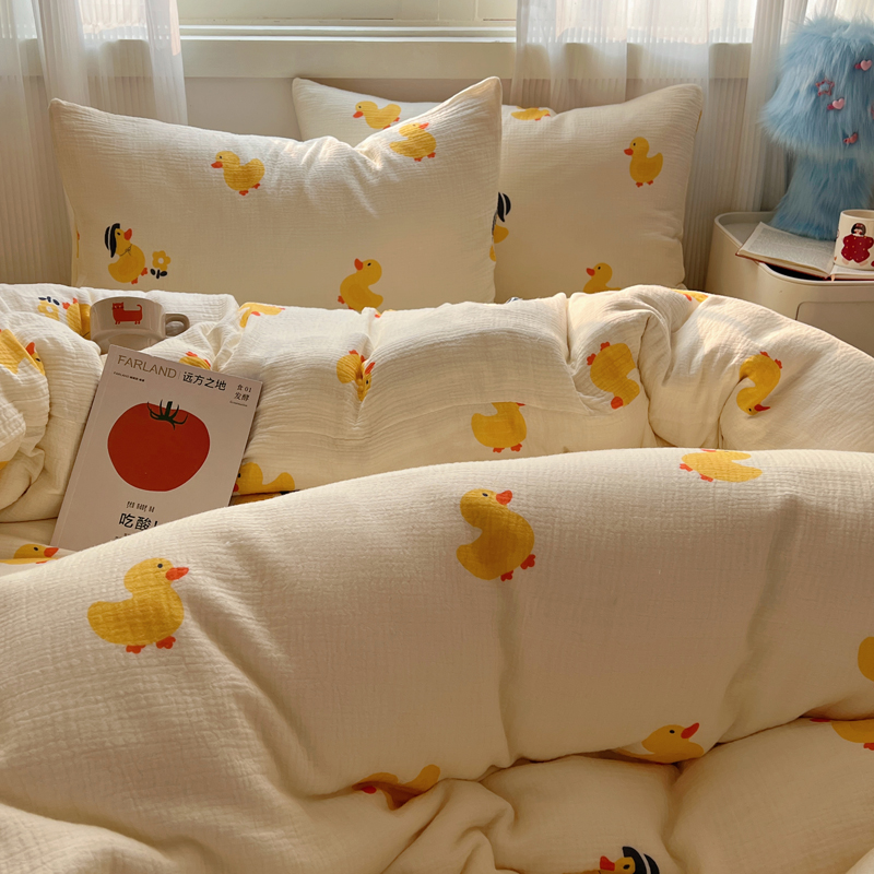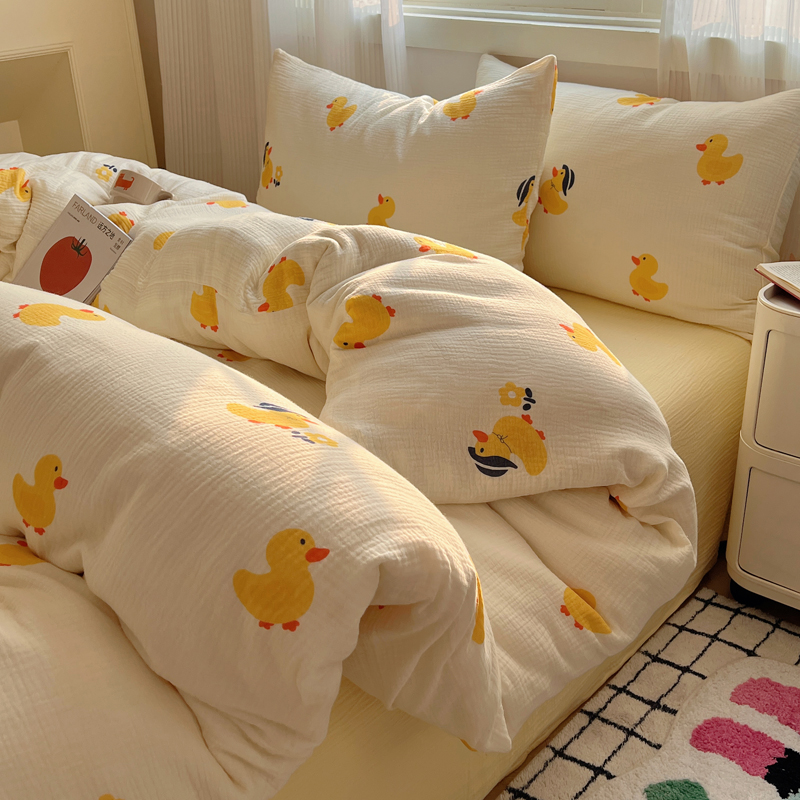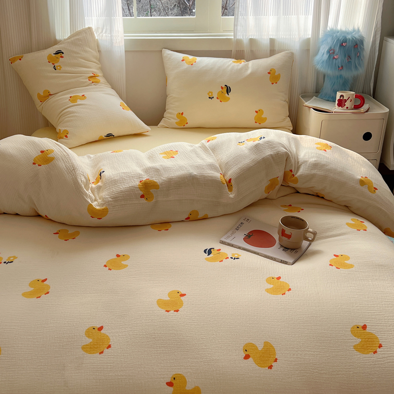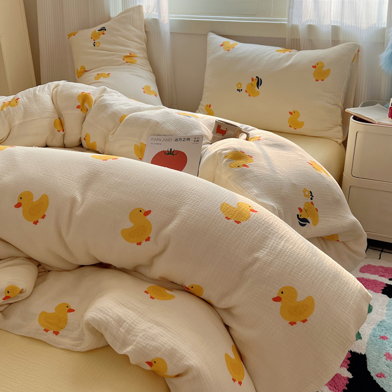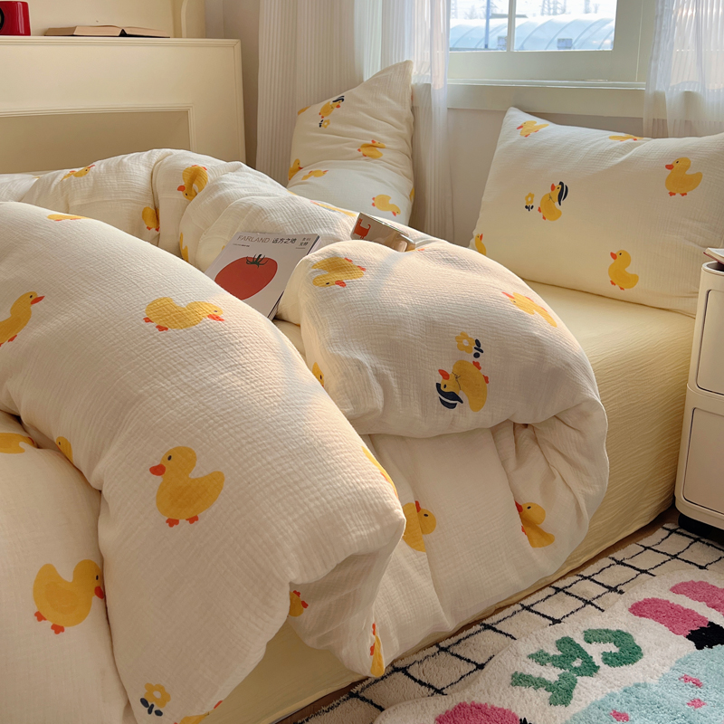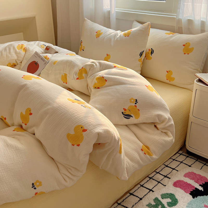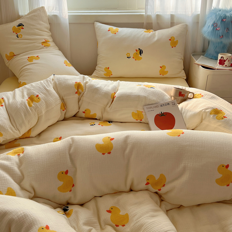 当前位置: 91家纺网 > 商品网购 > 床品套件 > 四件套 > 水洗棉四件套 > 盼季 2024新款A类母婴级水洗棉床上用品四件套卡通儿童床单被套宿舍三件套 快乐小鸭