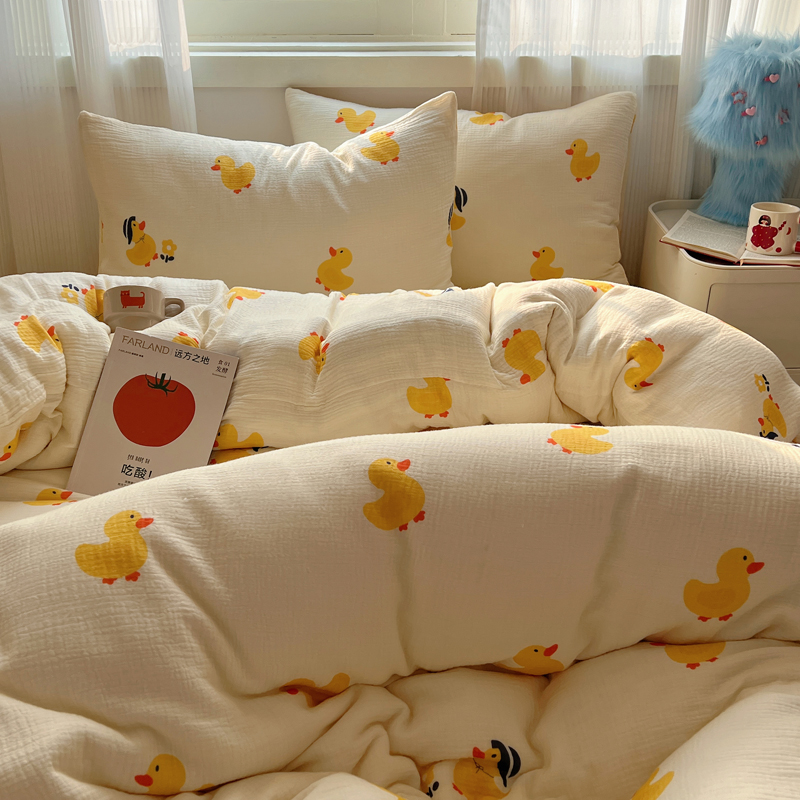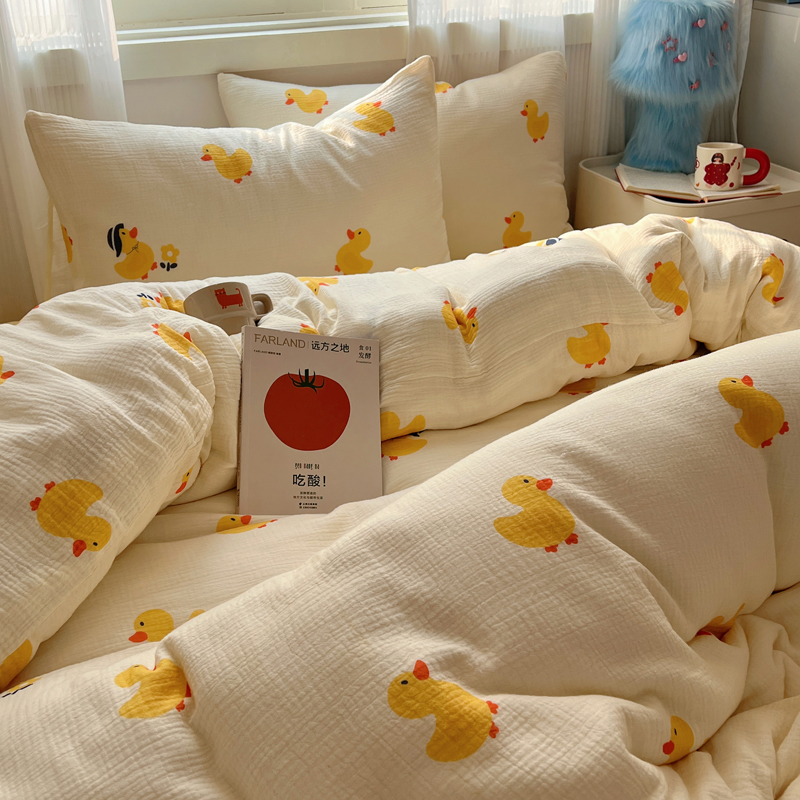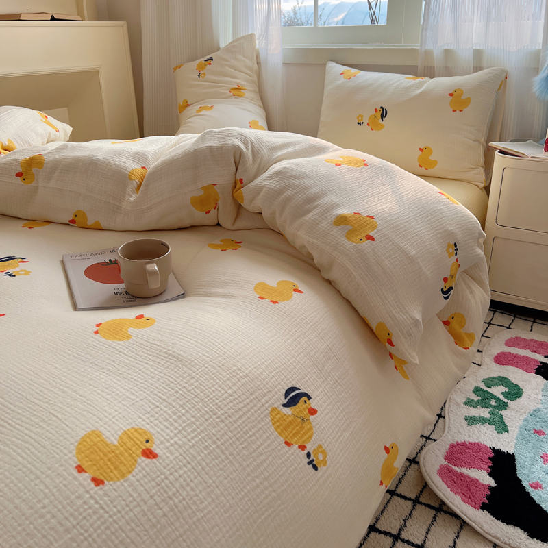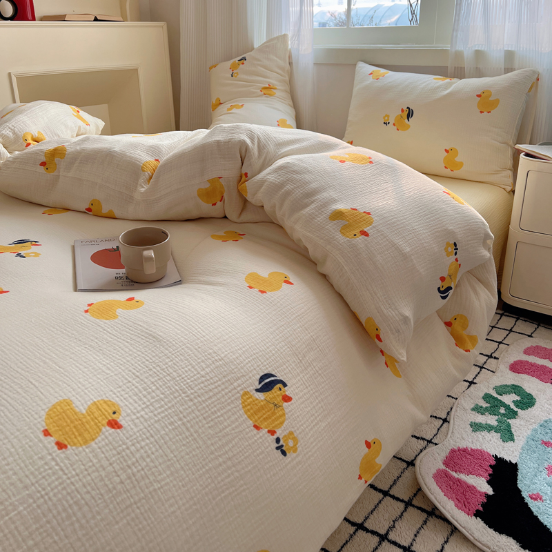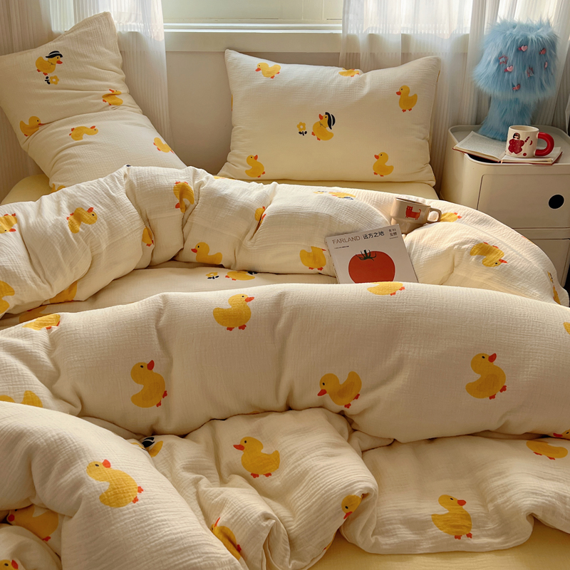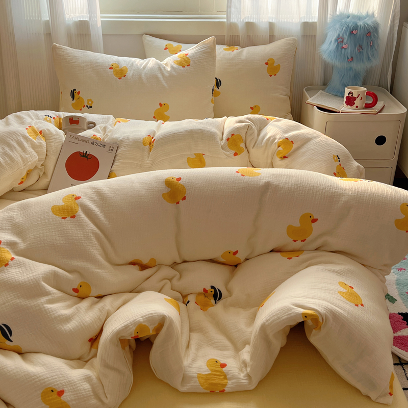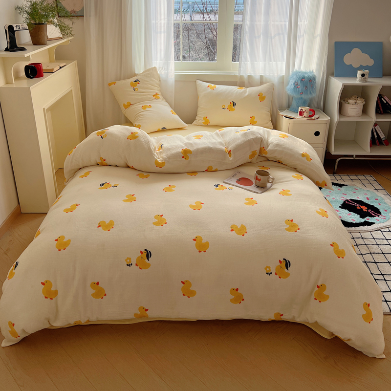 当前位置: 91家纺网 > 商品网购 > 床品套件 > 四件套 > 水洗棉四件套 > 盼季 2024新款A类母婴级水洗棉床上用品四件套卡通儿童床单被套宿舍三件套 快乐小鸭