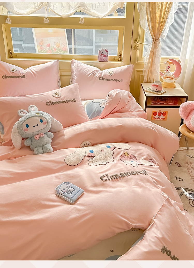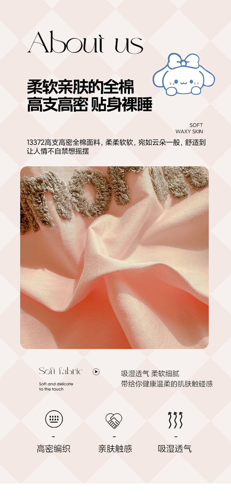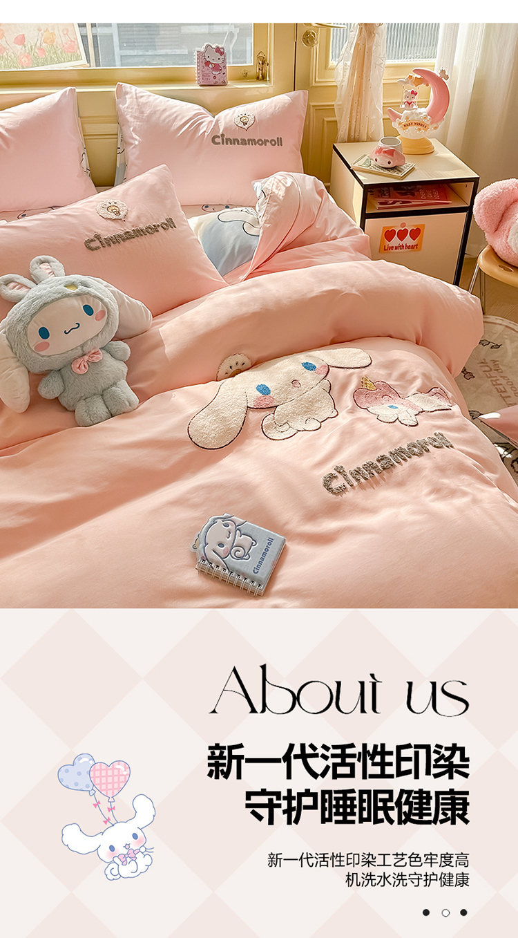 当前位置: 91家纺网 > 商品网购 > 床品套件 > 四件套 > 毛巾绣四件套 > 沐辰家居 2024新款毛巾绣正版授权三丽鸥系列 绣花款-快乐云朵狗-浅粉