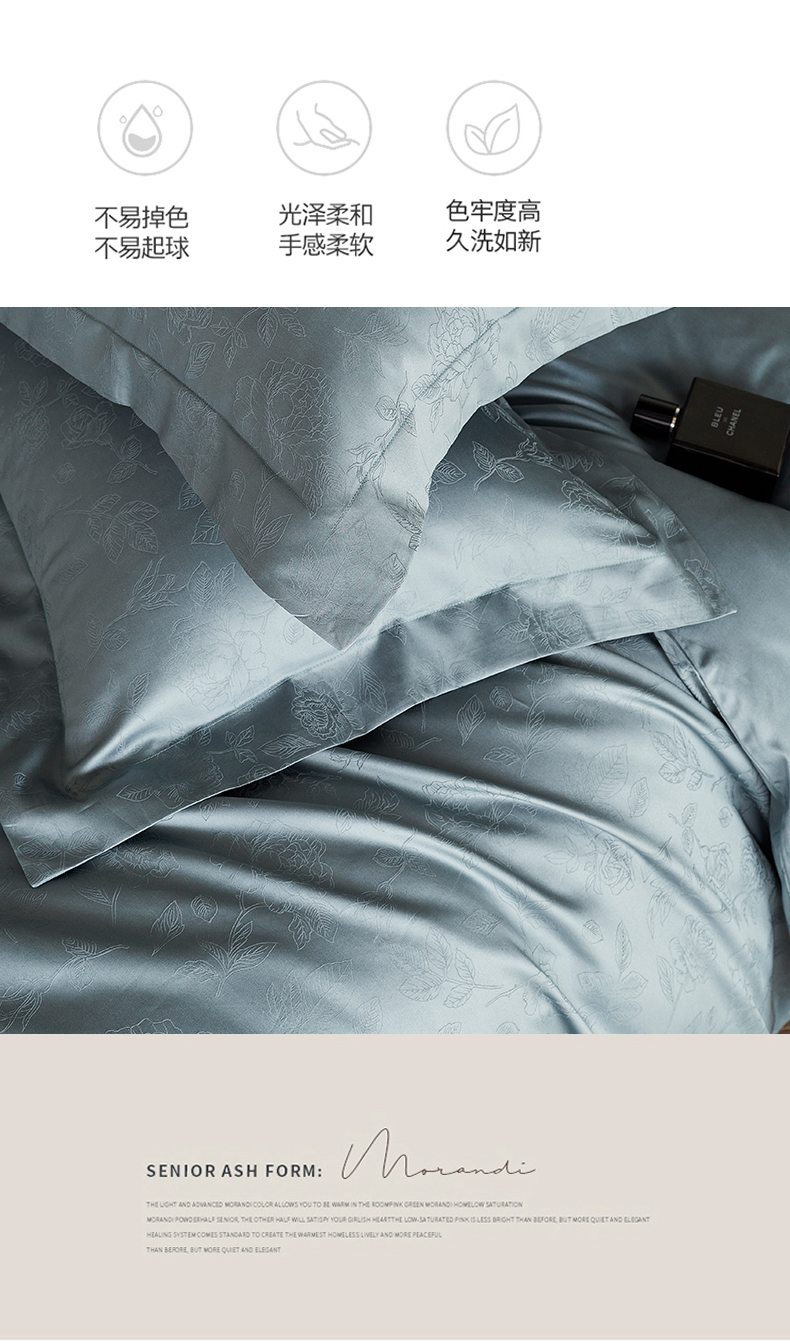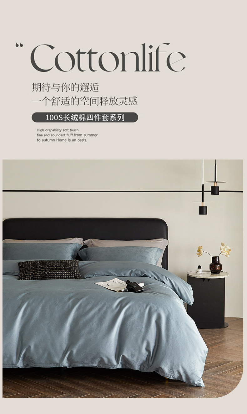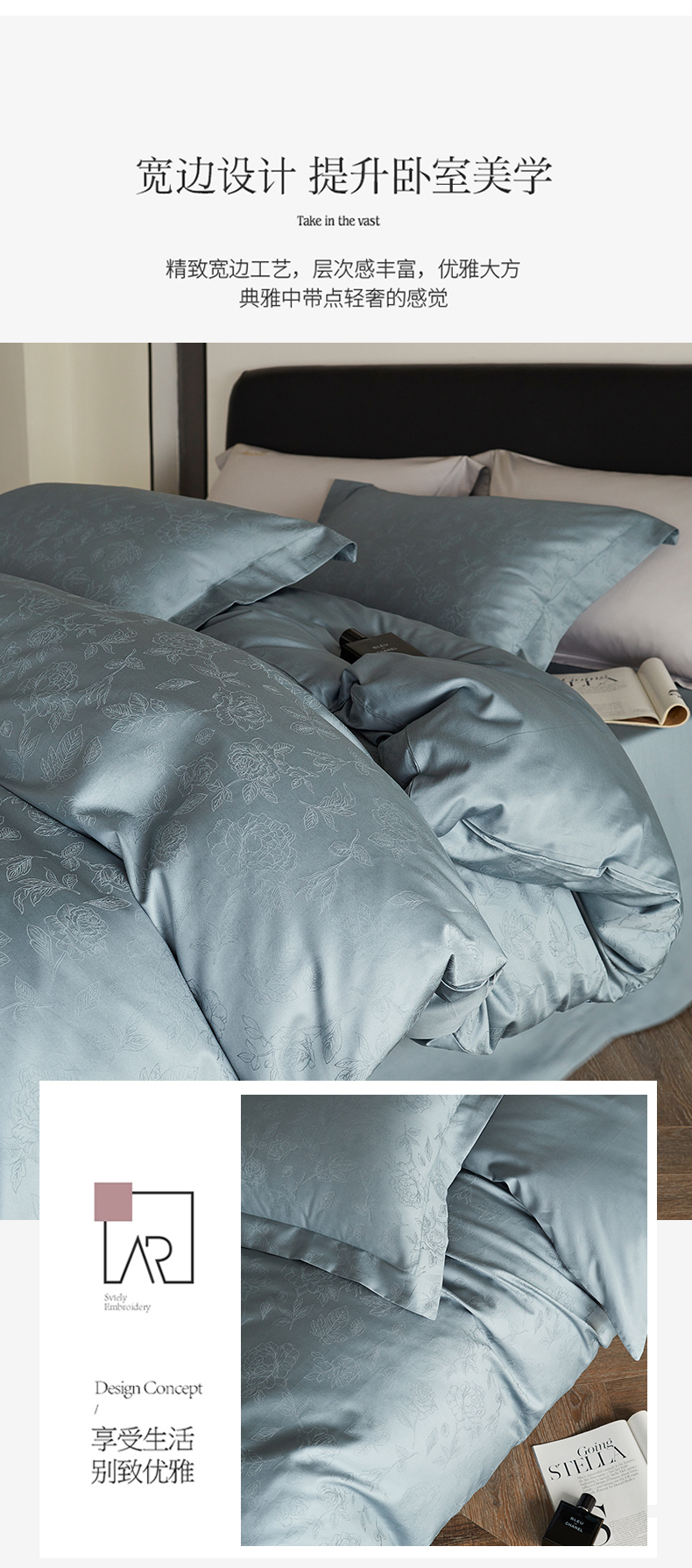 梦享生活家居 2024新款100支贡缎提花四件套 赛琳-蓝