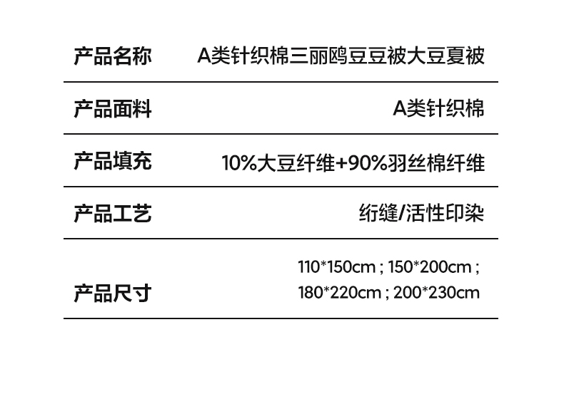 填充纤维种类: 大豆蛋白改性聚酯纤维