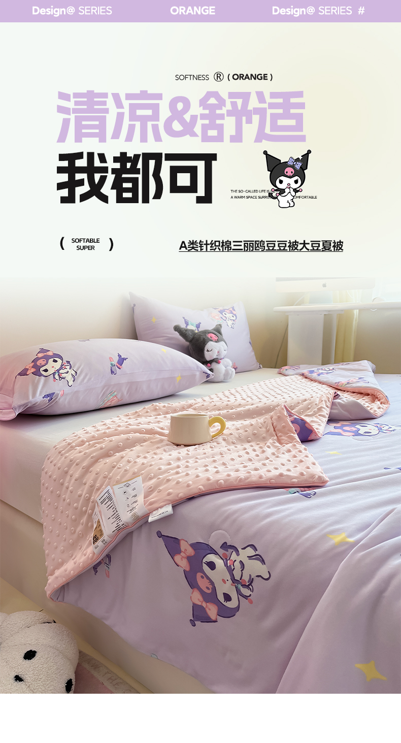 商品名称:莱登卡奴 2025春夏款A类针织棉三丽鸥豆豆被大豆夏被 库洛米的礼物
