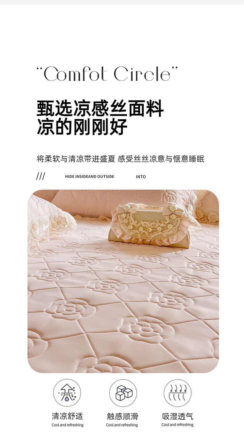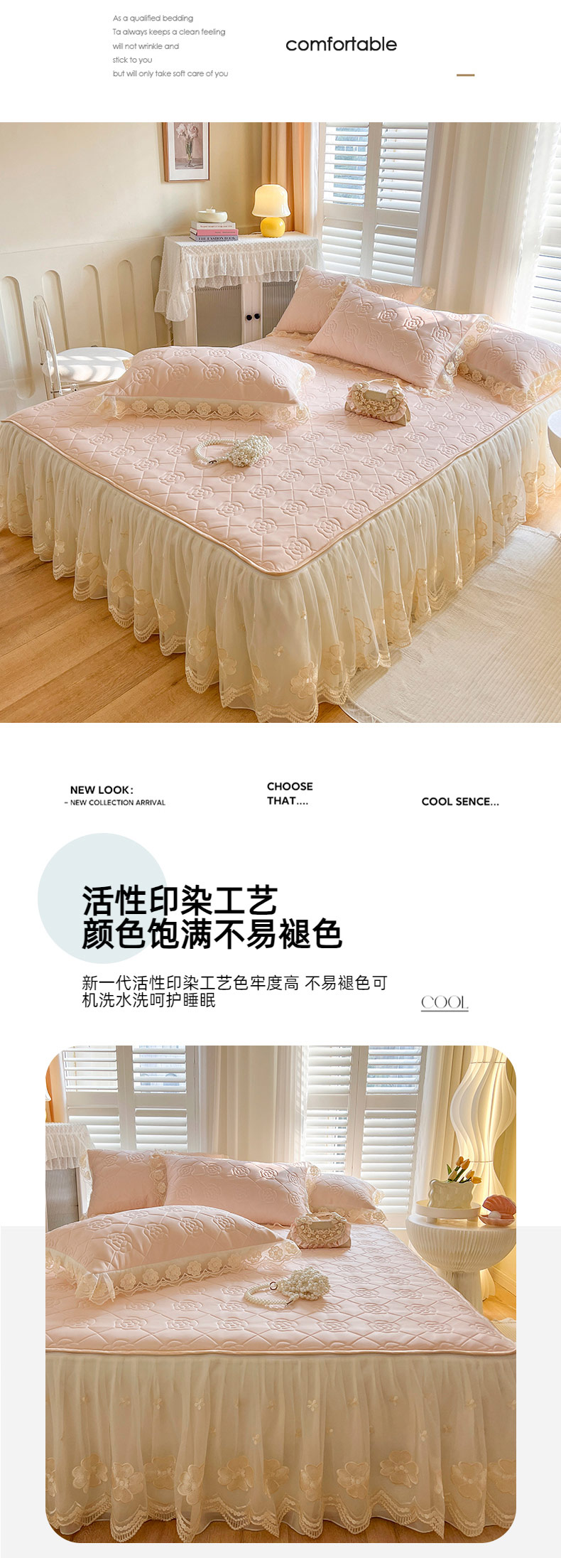 商品名称:网红馆 2025新款凉感丝乳胶凉席夏被四件套床裙款 蜜瓜粉