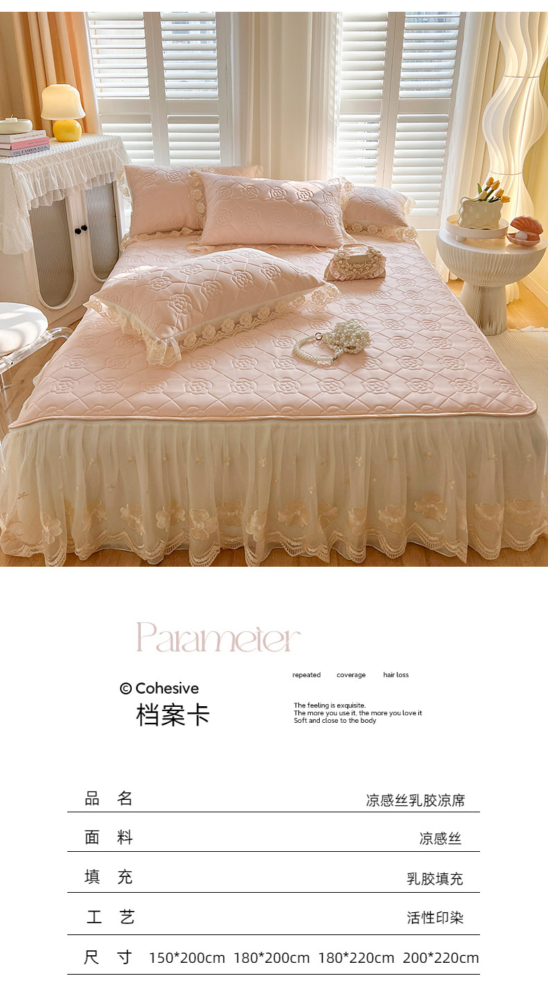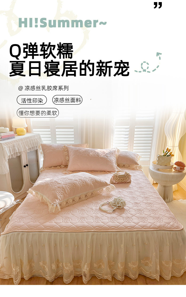 网红馆 2025新款凉感丝乳胶凉席夏被四件套床裙款 蜜瓜粉