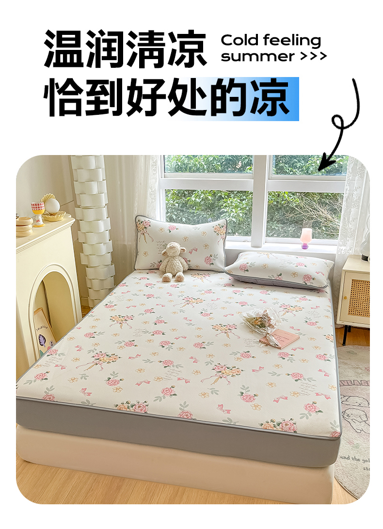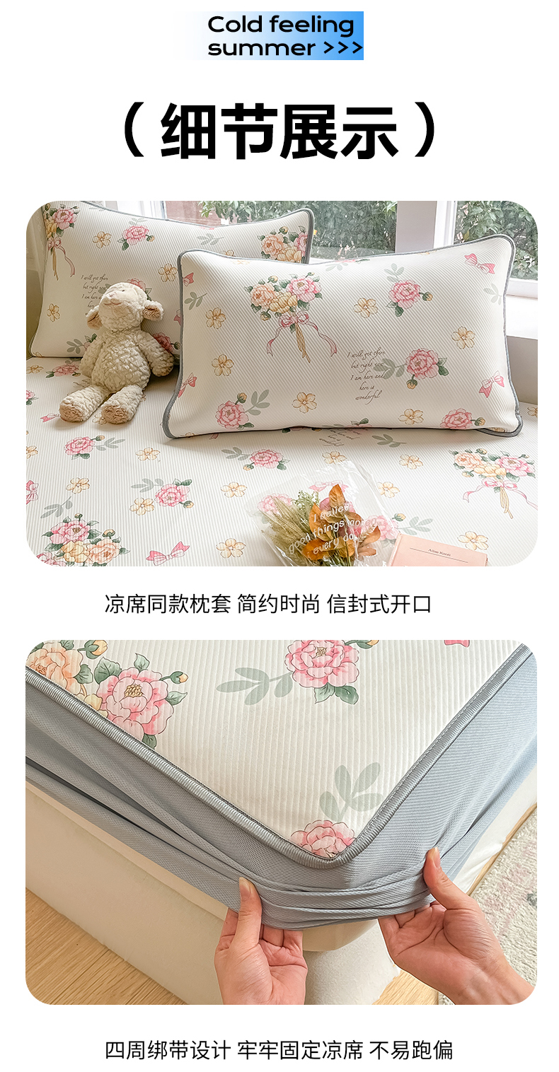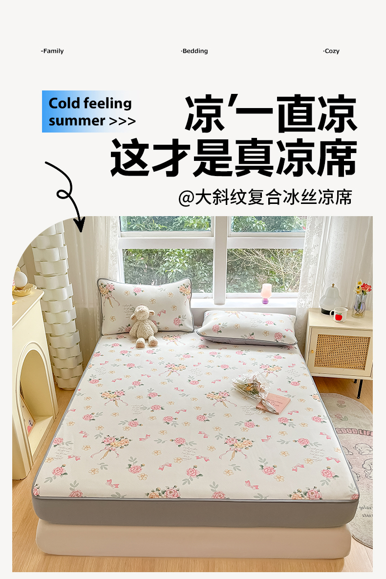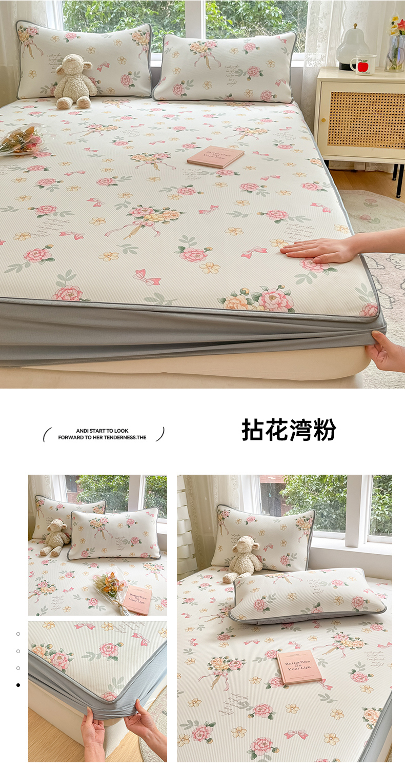 商品名称:星座 2025大斜纹复合冰丝凉席床笠款 拈花湾粉-床笠款