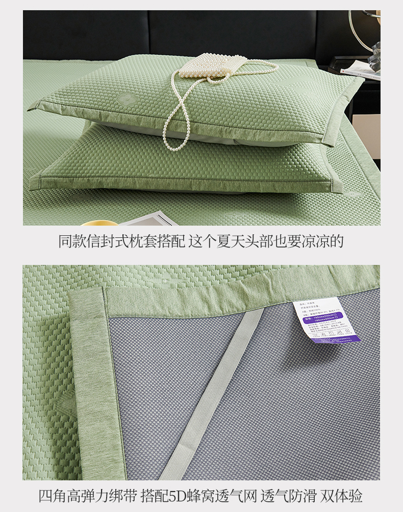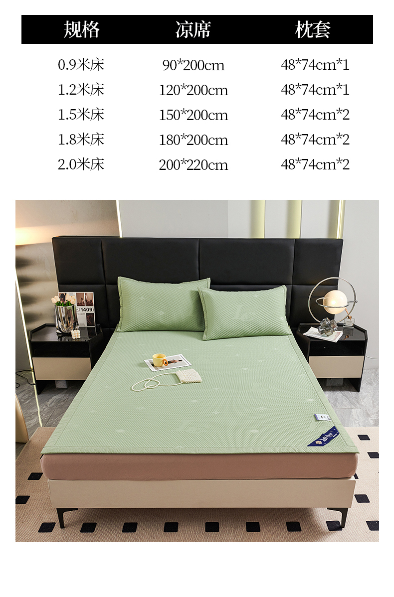 商品名称:宜派家纺 2024新款凉感丝刺绣凉席三件套 LC-绿-床笠