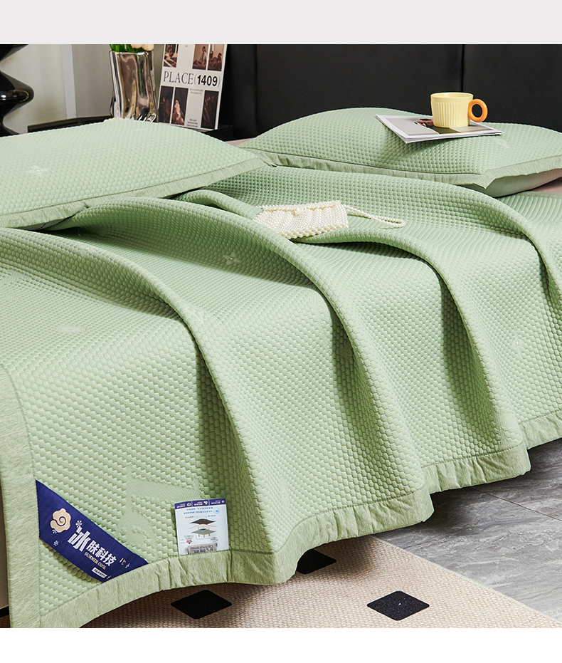 宜派家纺 2024新款凉感丝刺绣凉席三件套 LC-绿-床笠
