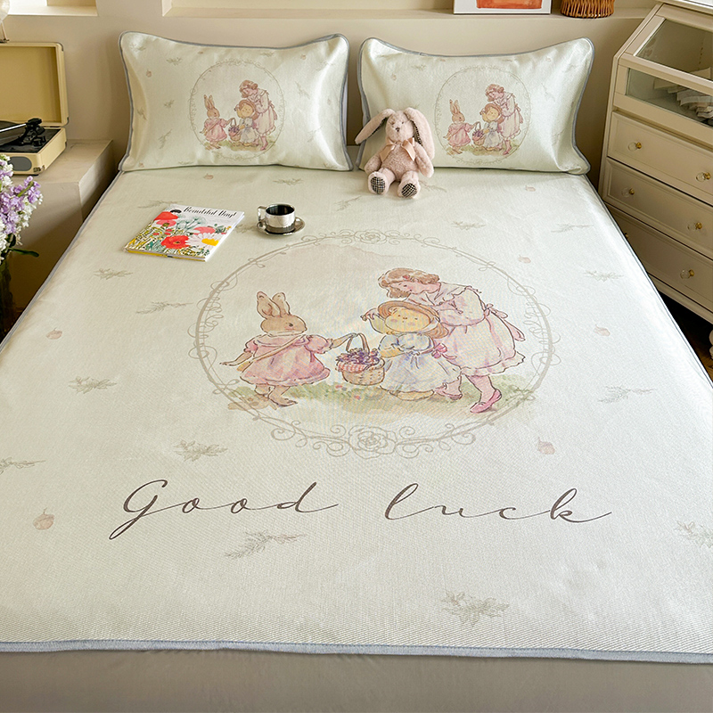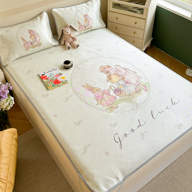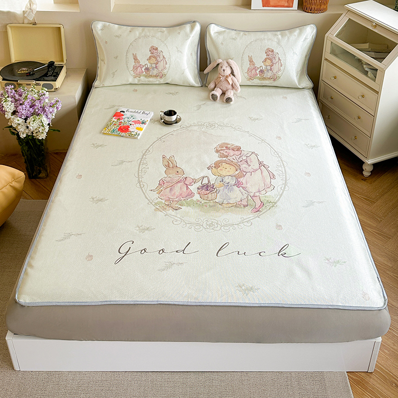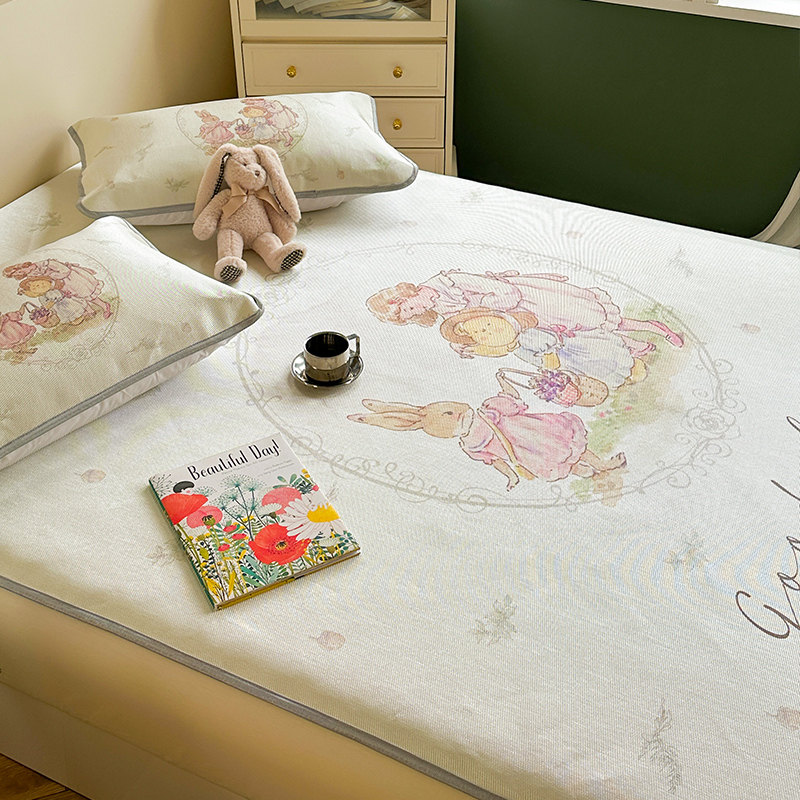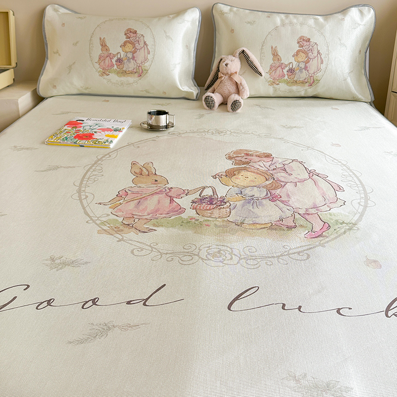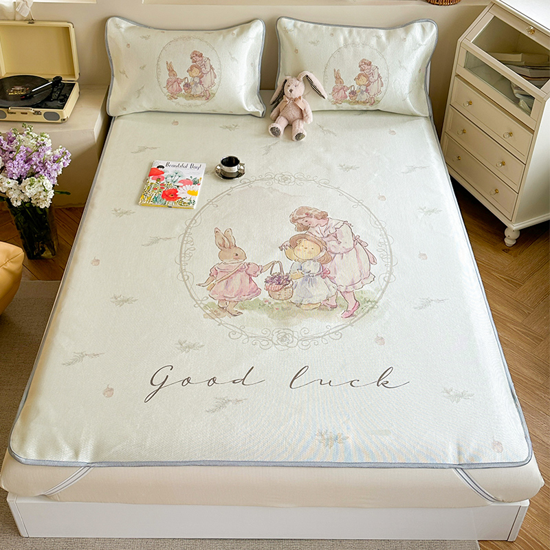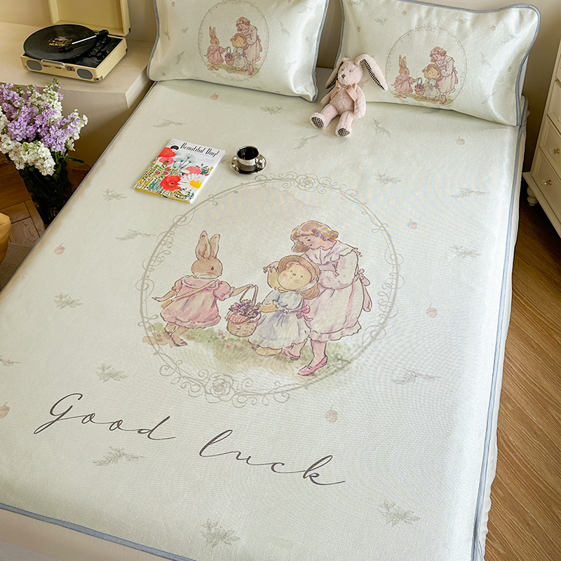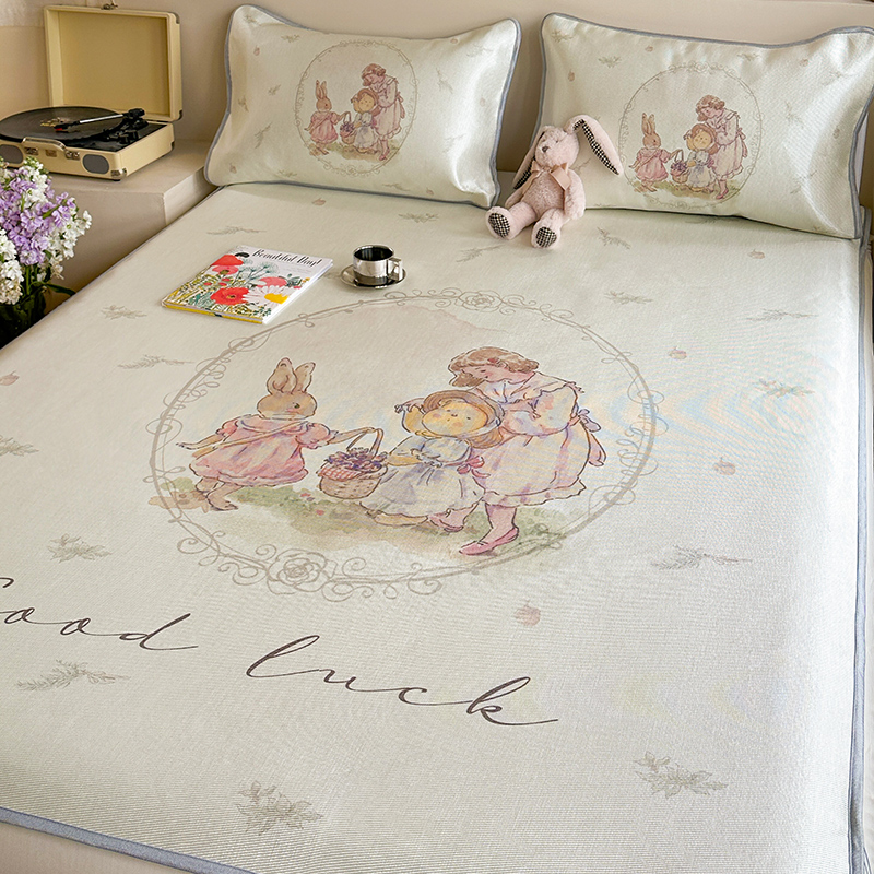 萝莉家纺 2024新款大版印花冰丝凉席床席床笠款 去摘蓝莓吧-床笠款