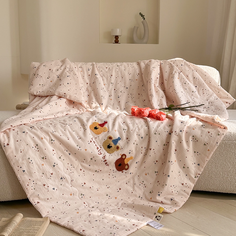 (总)洋铭区 2023新款全棉皱皱双层纱夏被,粉色郁金香,甜萝卜,旺旺熊,微笑,香甜草莓,小花仙,小鸭鸭